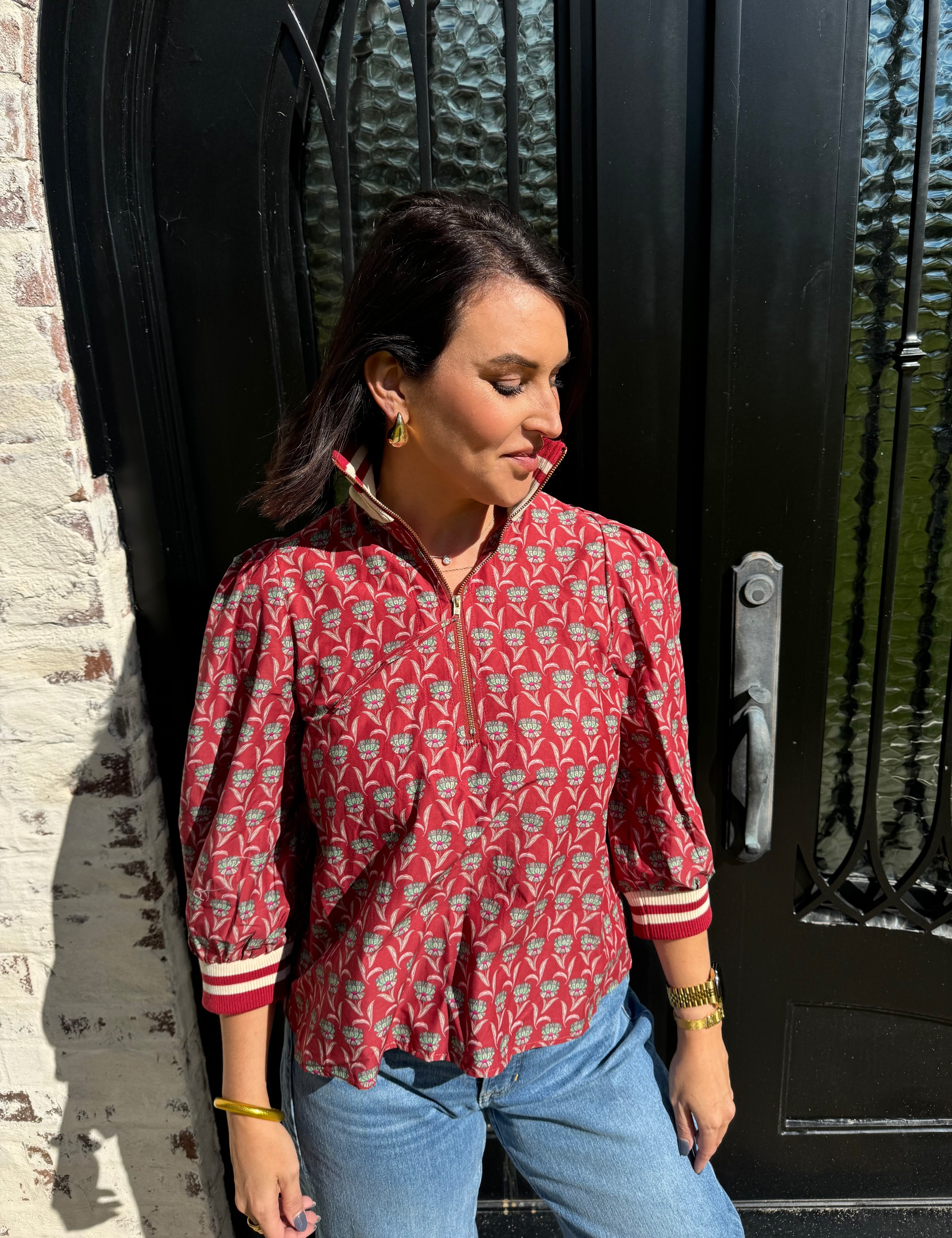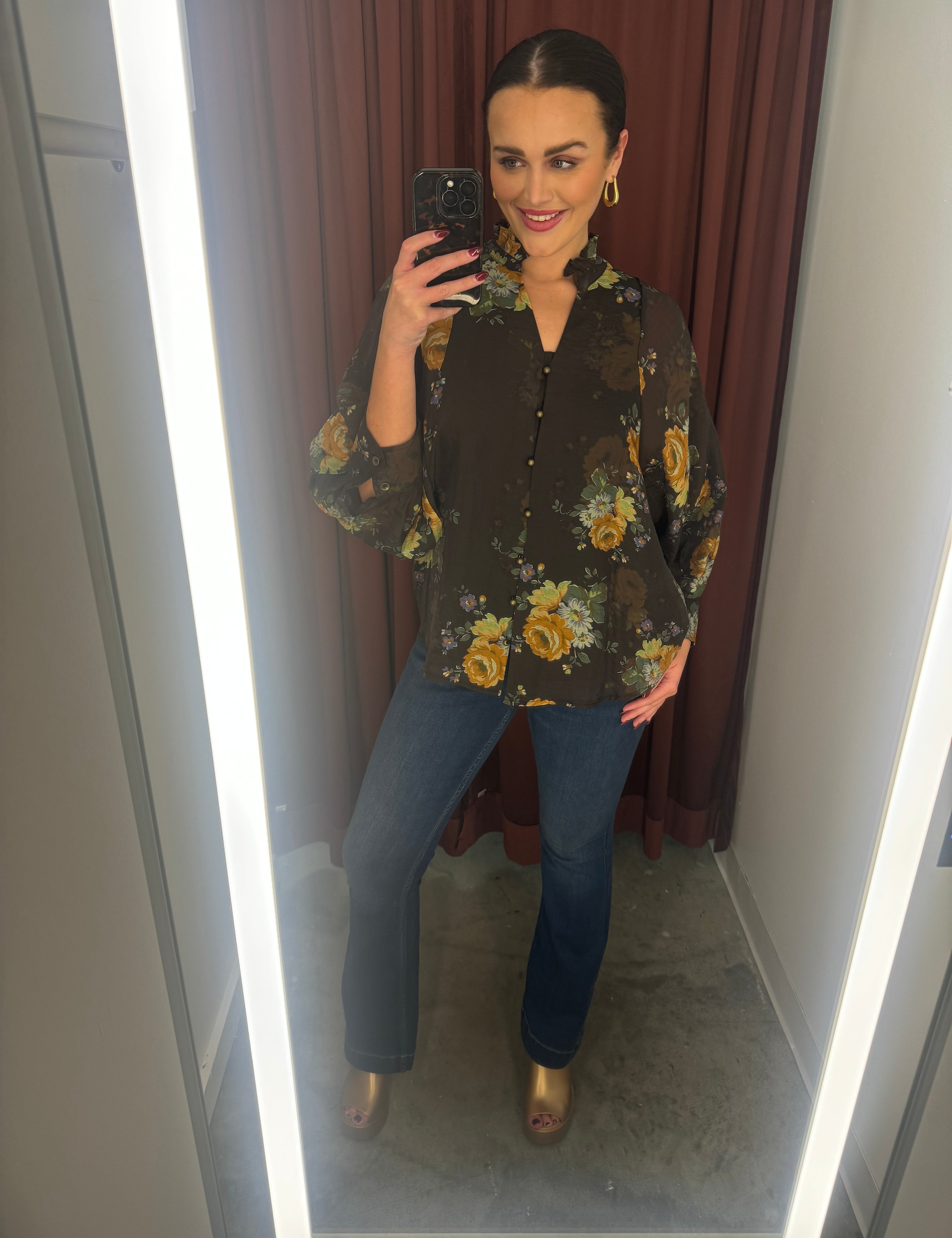 Lyndsey Floral Top in Chocolate (S-2X)