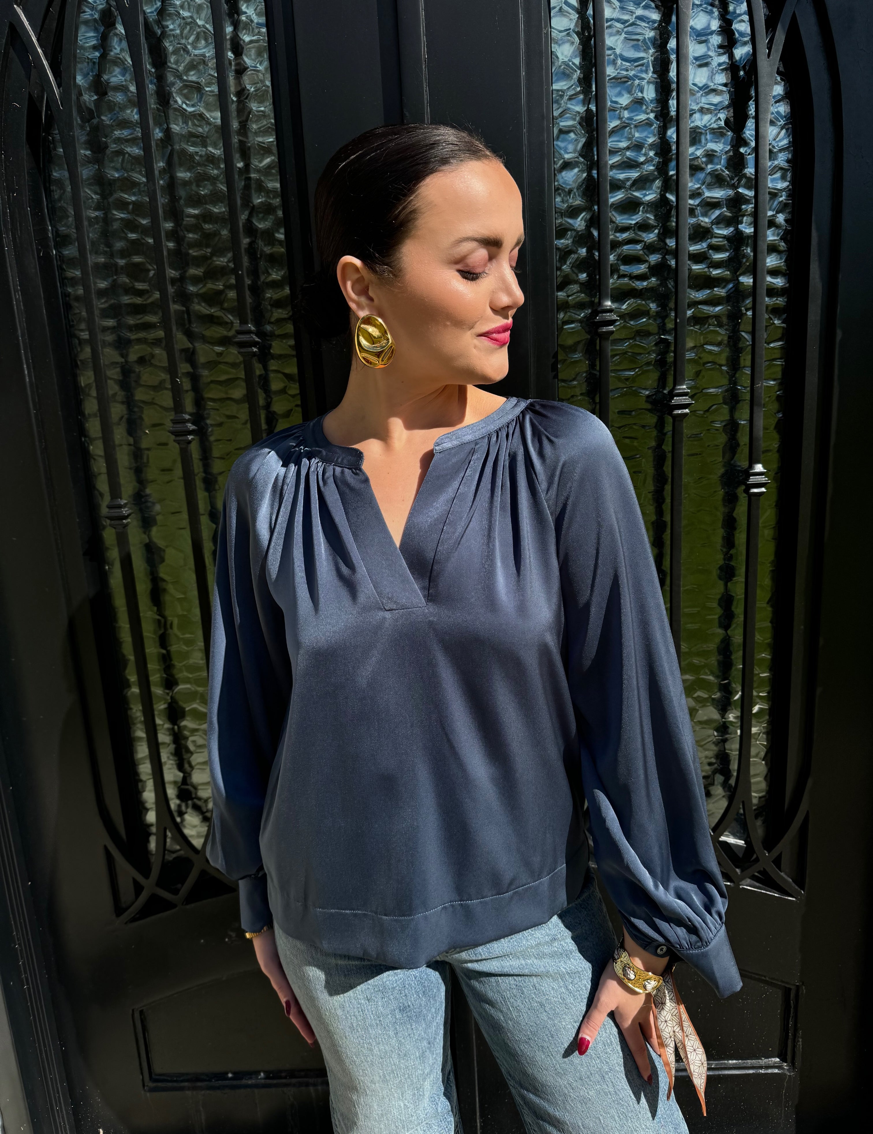 Sabrina V-Neck Blouse in Deep Navy