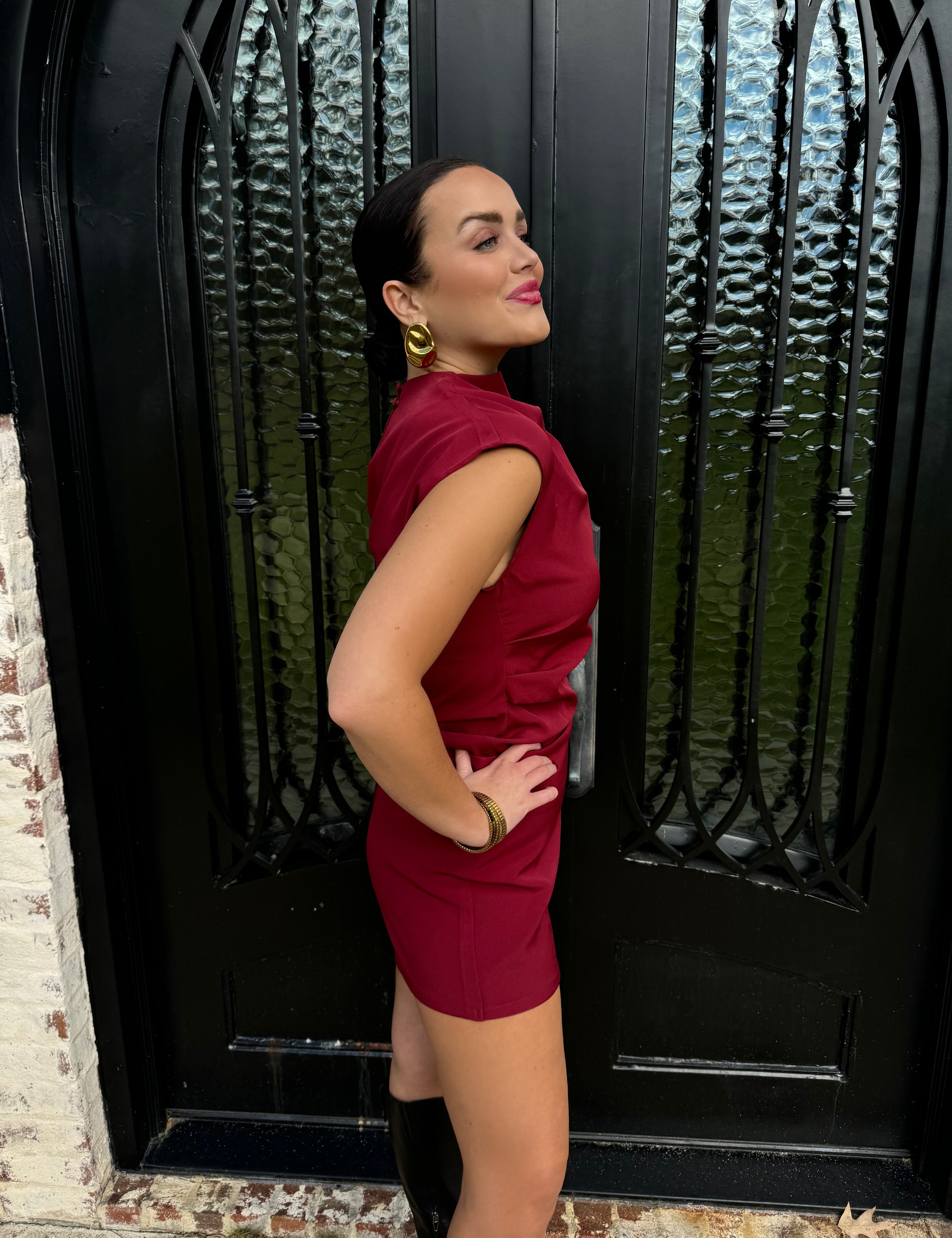Napa Mock Neck Cowl Top in Burgundy