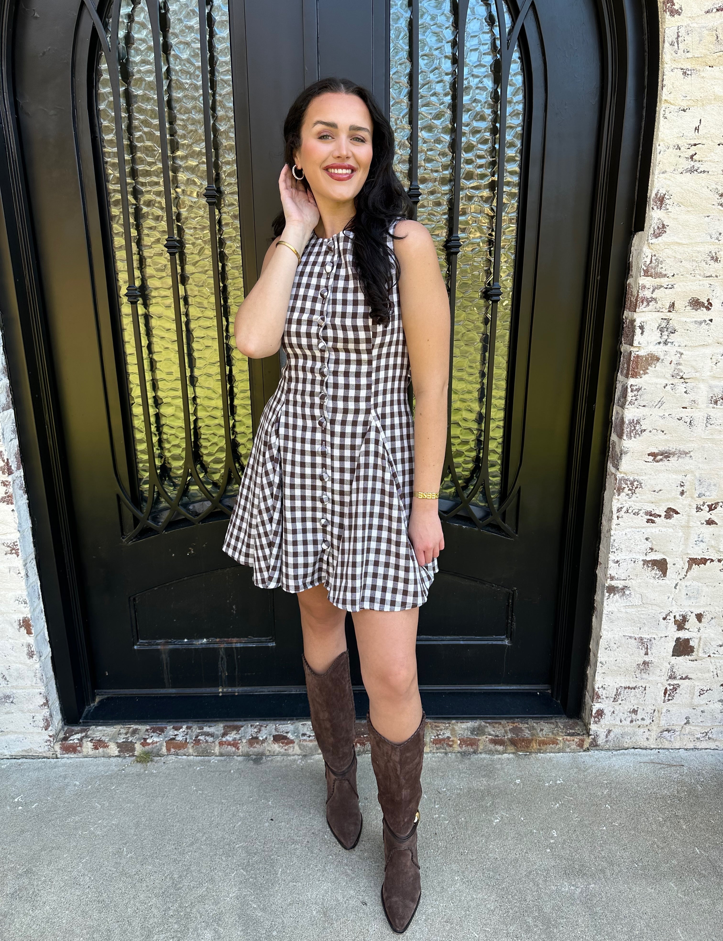 Pia Gingham Swing Dress in Brown