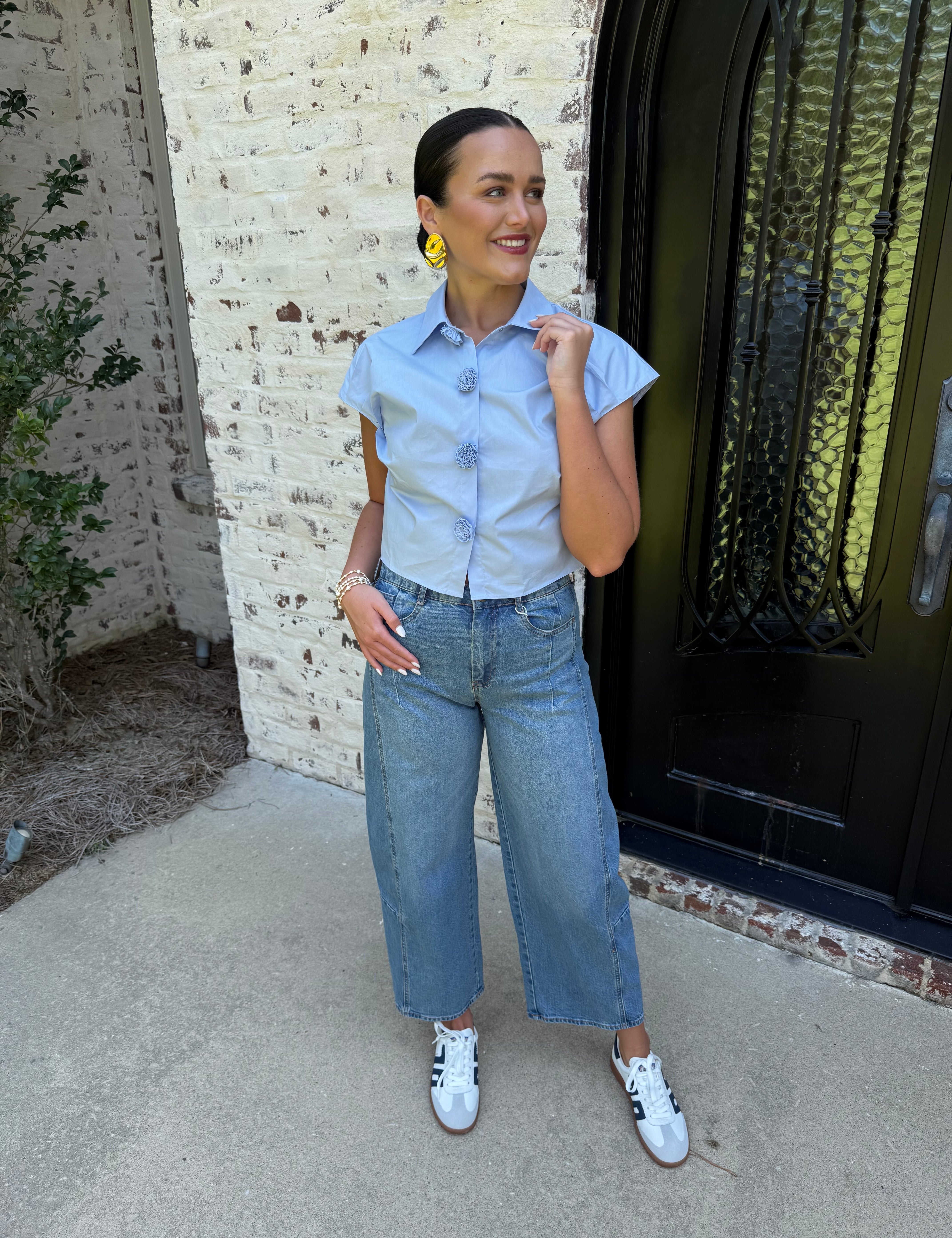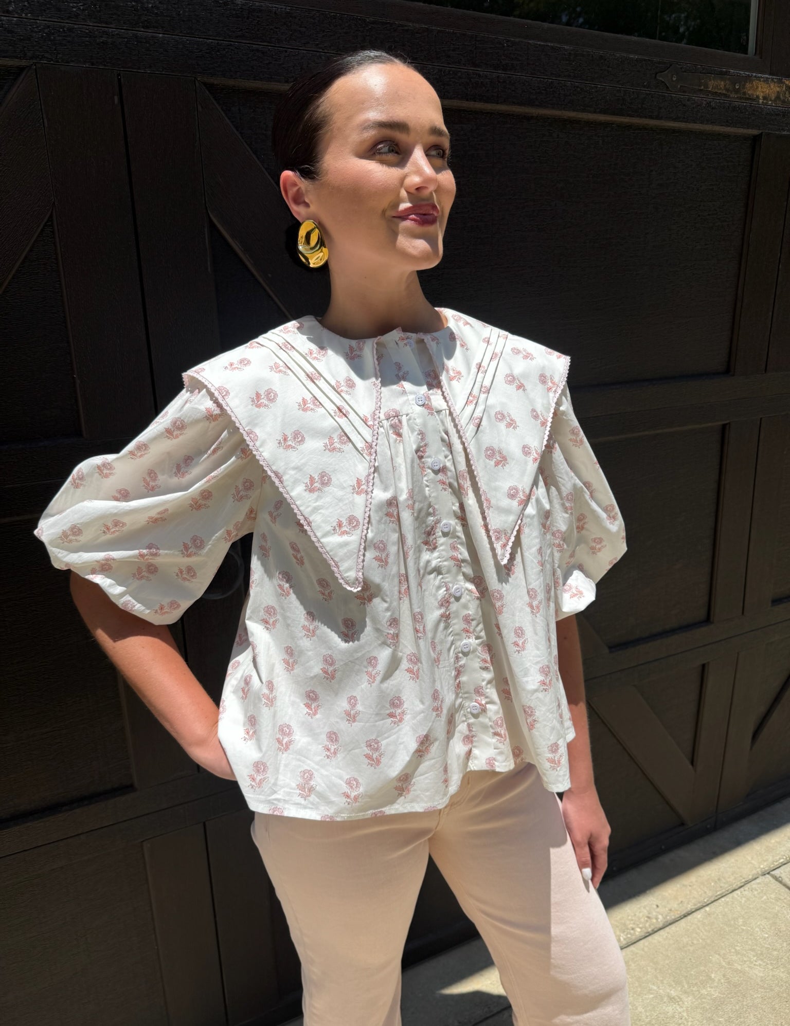 Oversized Collar Floral Blouse in Ivory