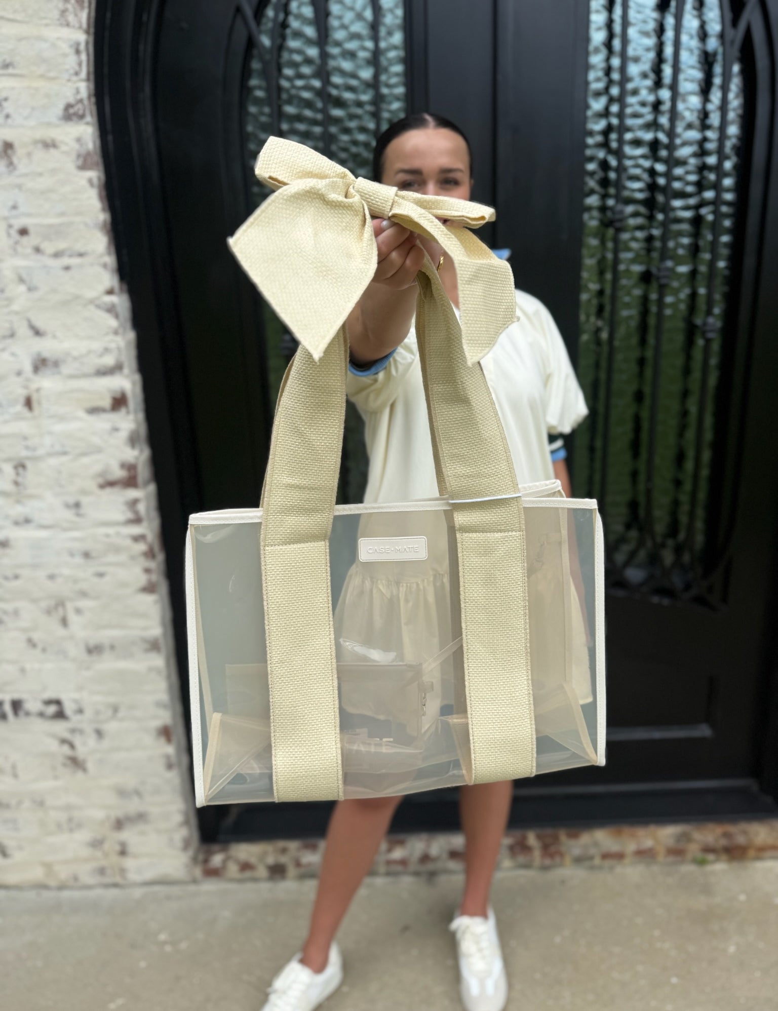 Bow Beach Tote in Ecru Raffia