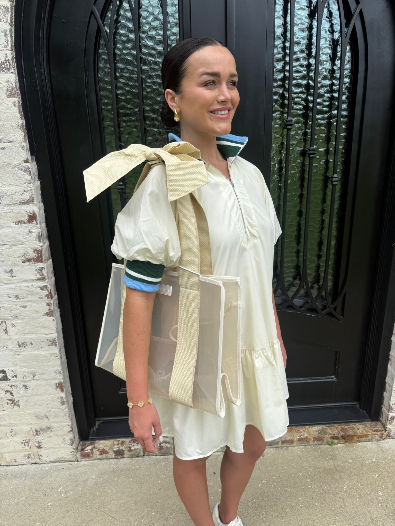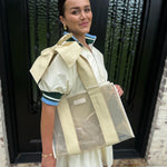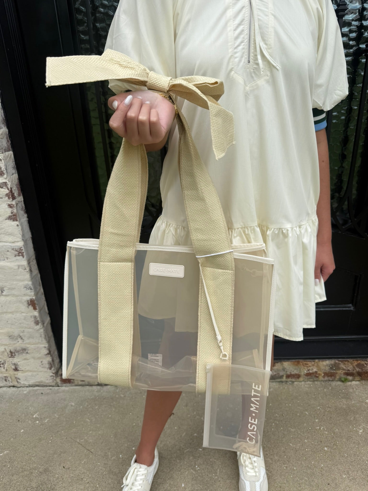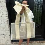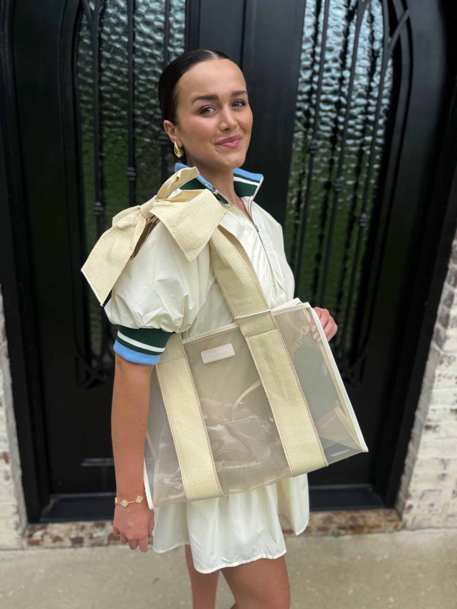 Introducing the Bow Beach Tote in Ecru Raffia. This spacious beach tote is perfect for your next seaside adventure. Made with durable ecru raffia, it is both stylish and functional. With plenty of space for all your essentials, you can enjoy your time at the beach without worrying about carrying multiple bags.