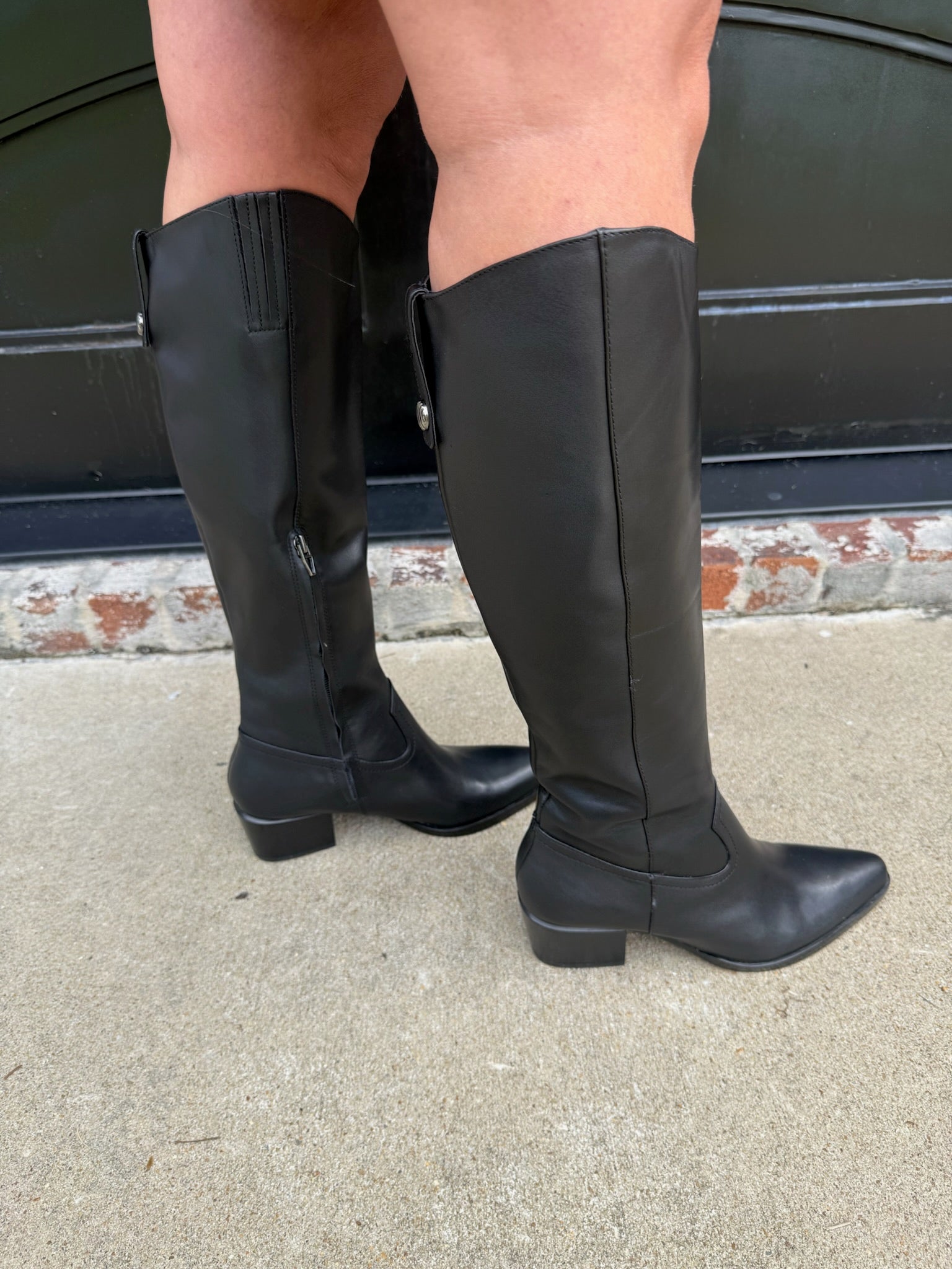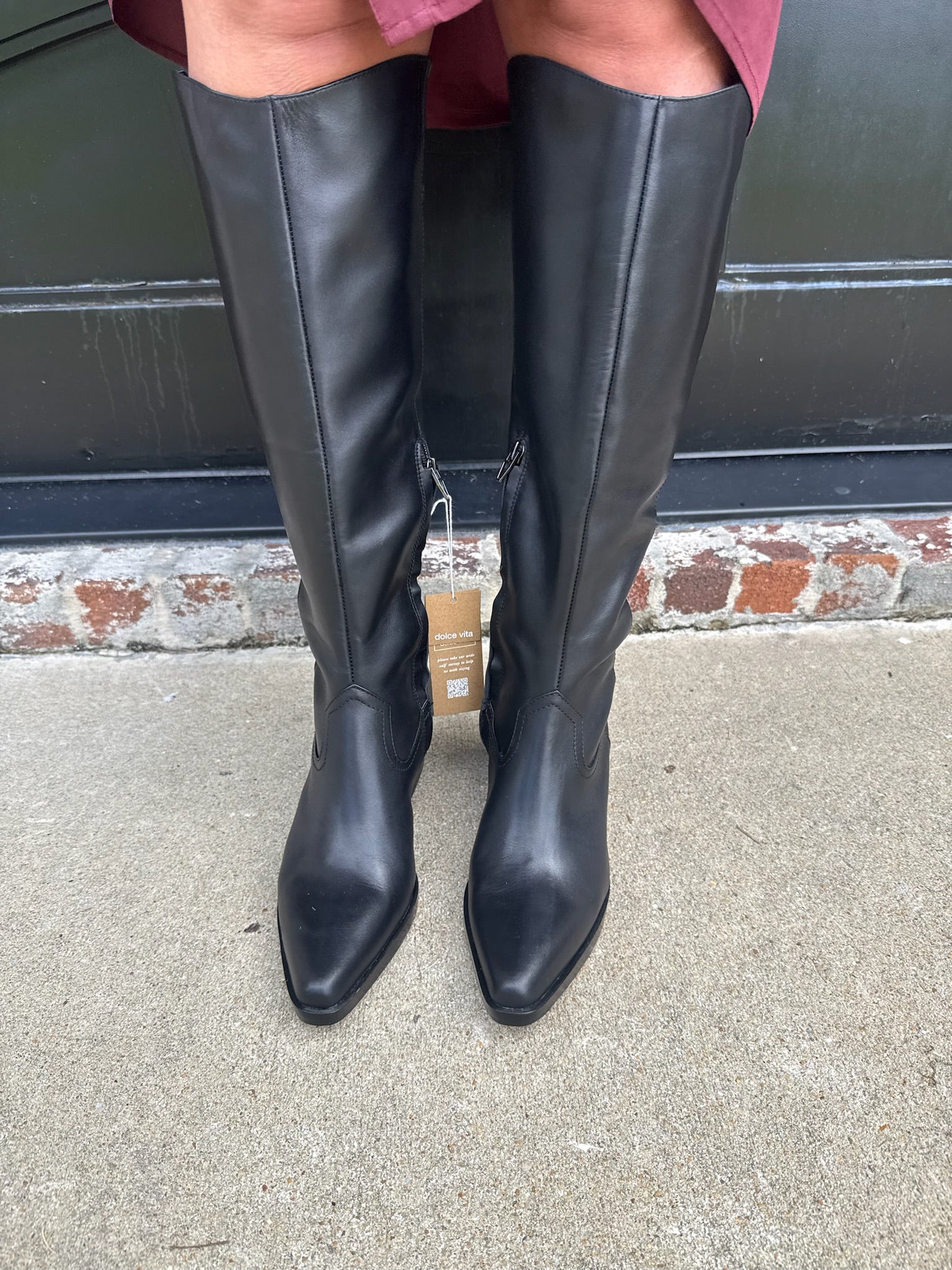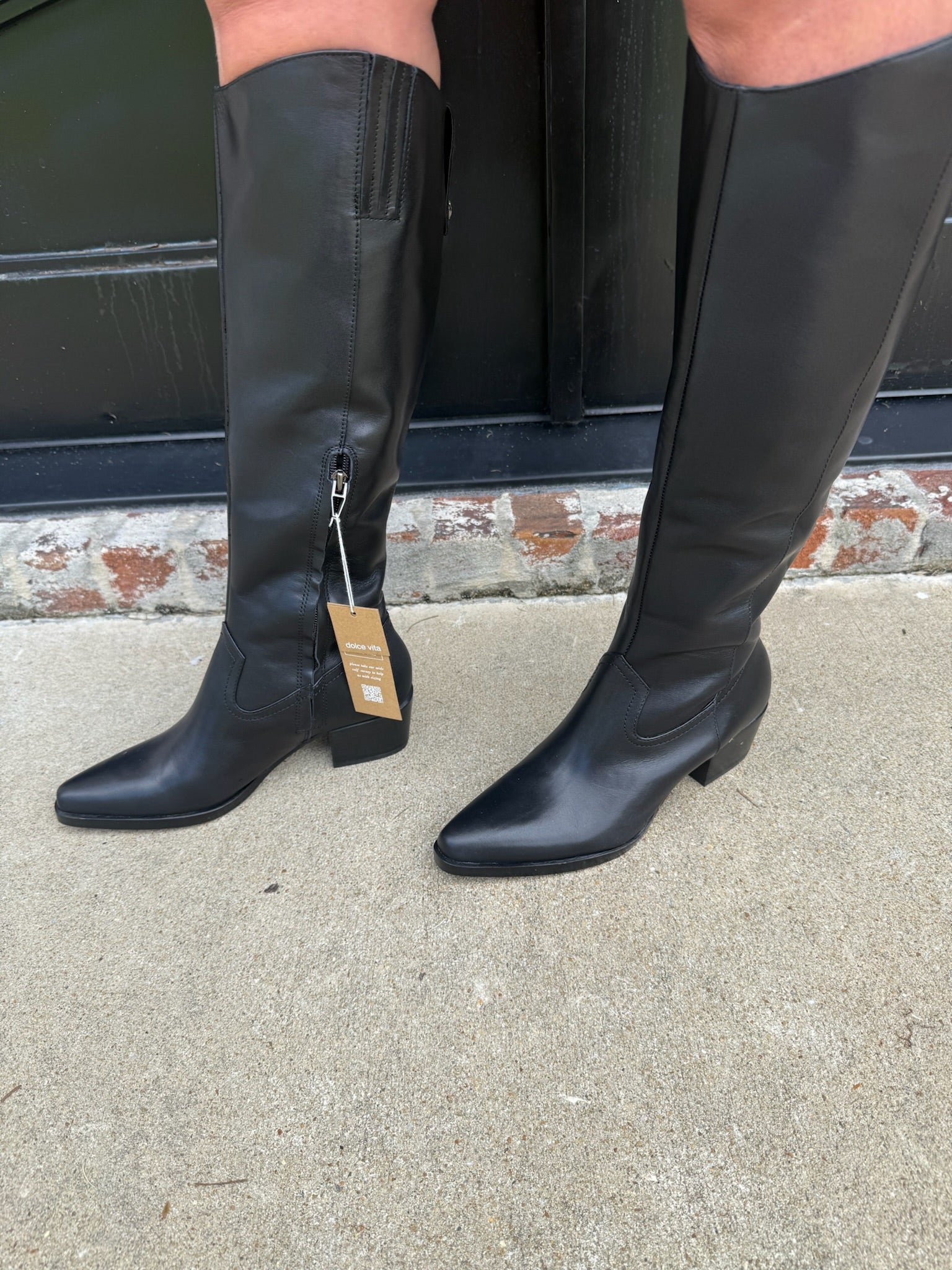 Wear VIRONA H2O’s timeless and flattering design this year and next. Crafted using recycled materials, this tall waterproof boot’s stacked block heel and curved top add a chic upgrade to denim and dresses