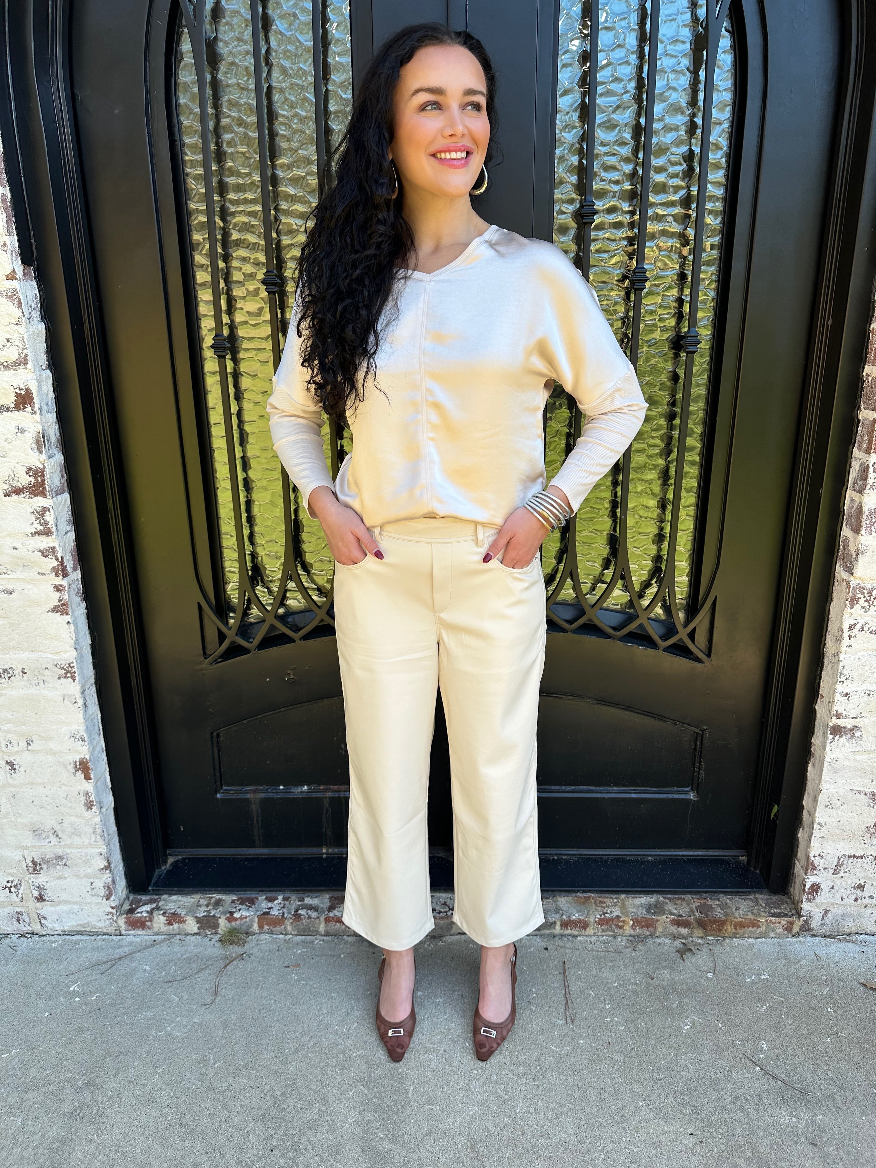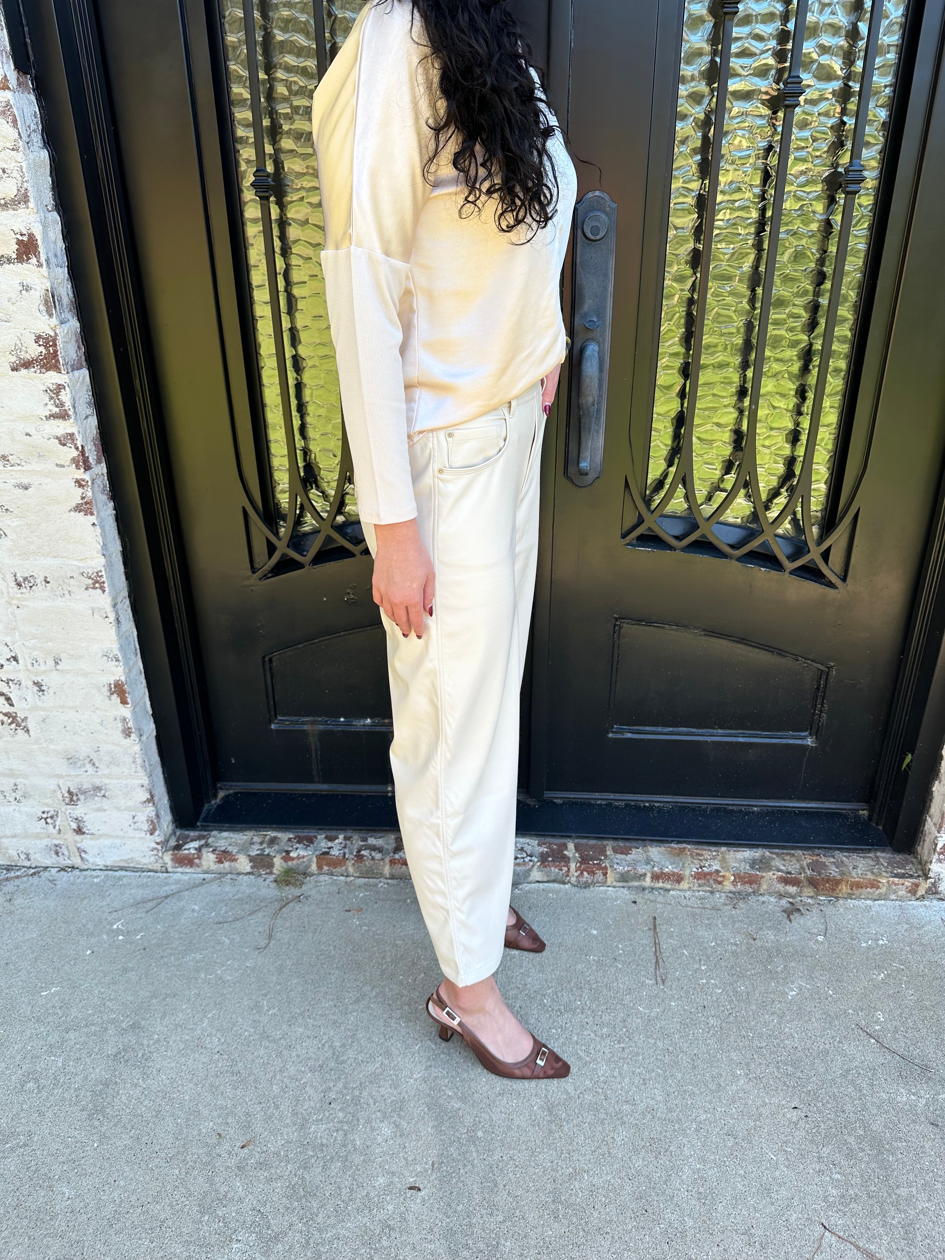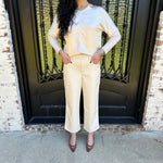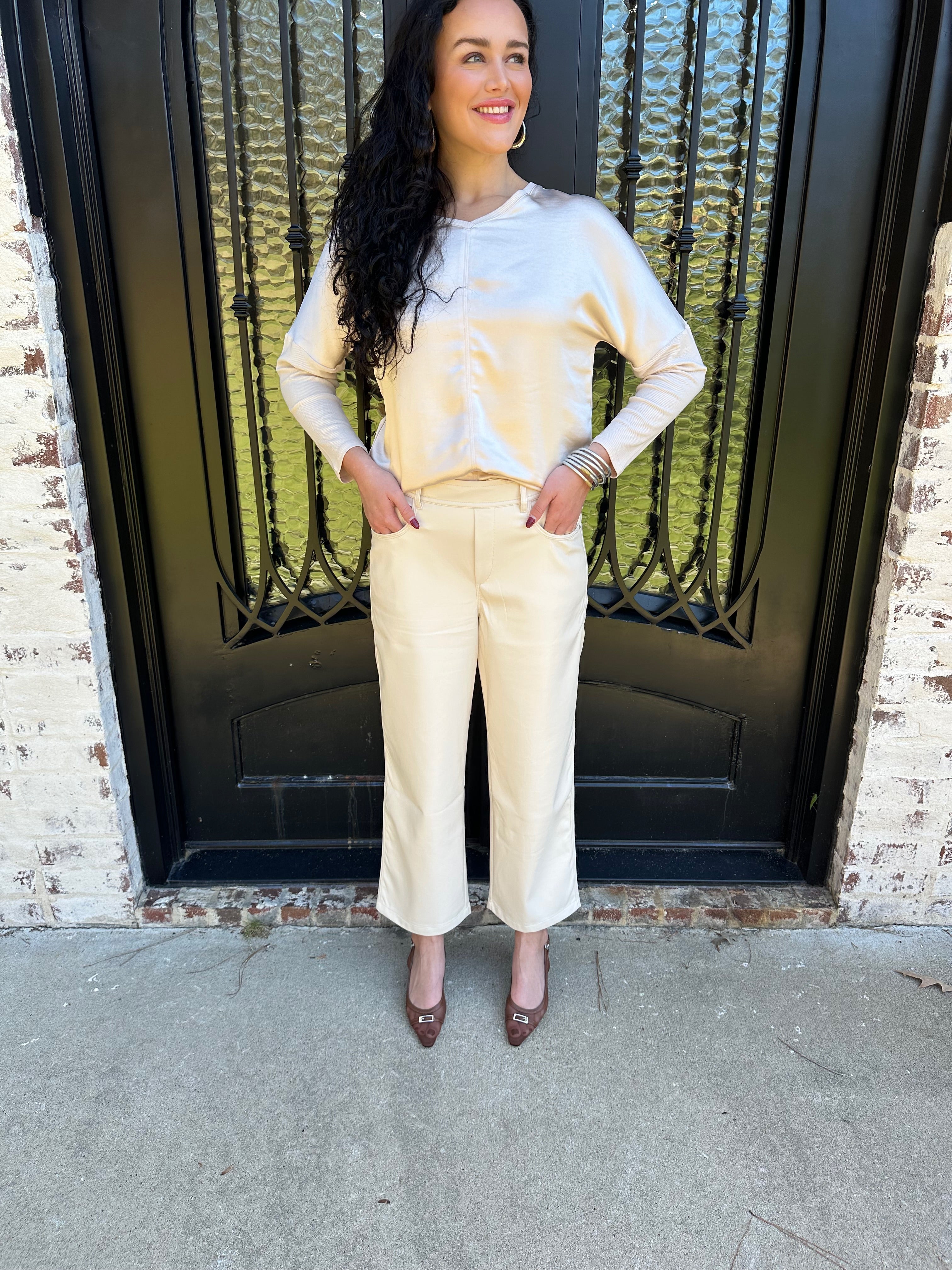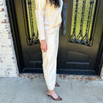 Embrace refined sophistication with the Melissa Nepton Morela Pant in Cream—a dressy essential that elevates any occasion. The luxurious cream tone and impeccable tailoring create an air of understated elegance, perfect for those who appreciate timeless class. Pair it with our Cindy Top to achieve a polished, coordinated look that commands attention without trying too hard. Whether you're attending a special event or simply want to feel your best, this pant delivers the grace and poise you're seeking.