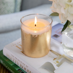 Our bestselling gold-leaf candle is now available in a one-wick version! The glass containers are gold-leafed by hand, so each one is slightly different. Burn time is approximately 50 hours, depending on how often you trim your wicks. We recommend keeping the wicks between 1/8-1/4 inch.