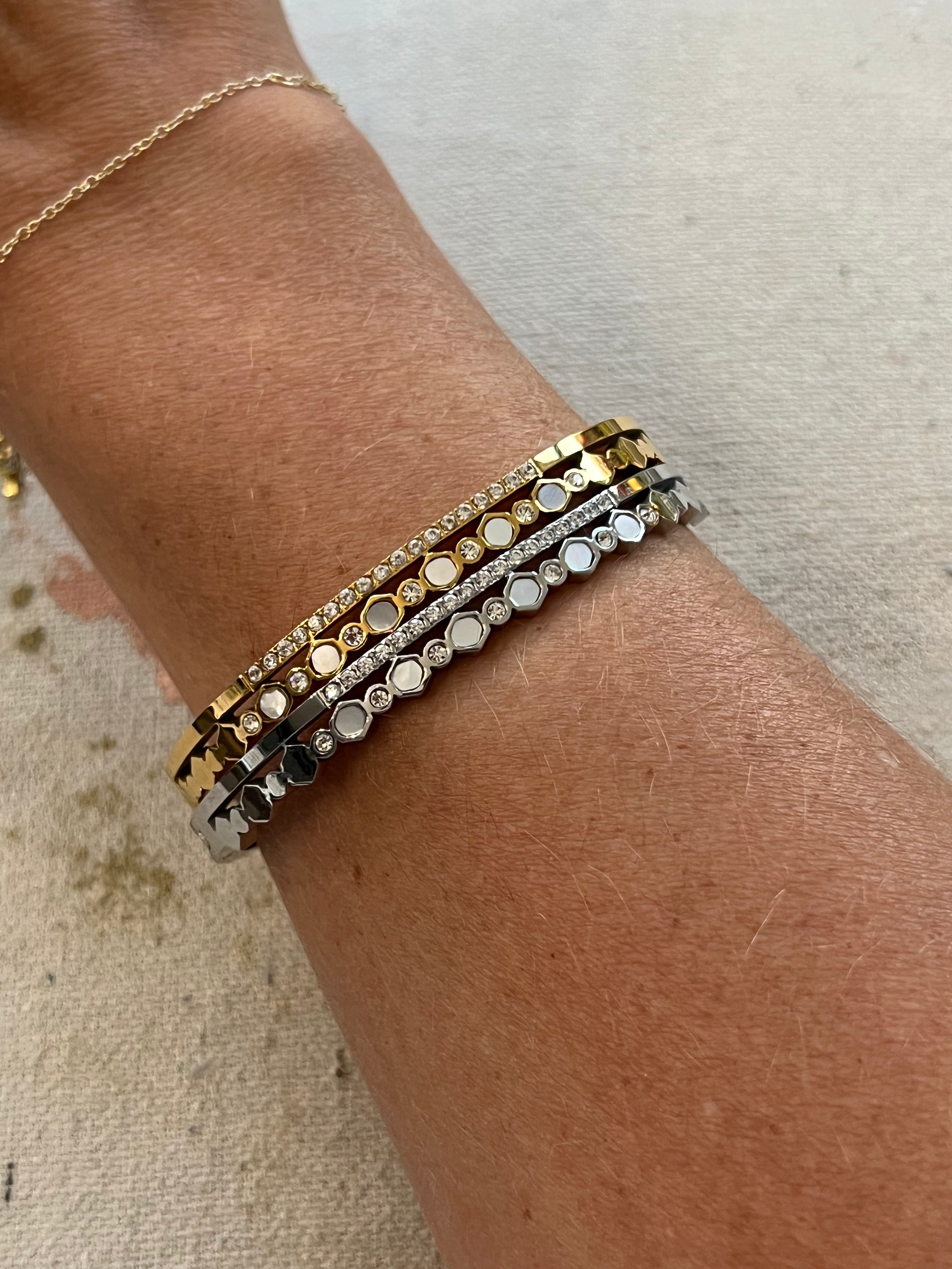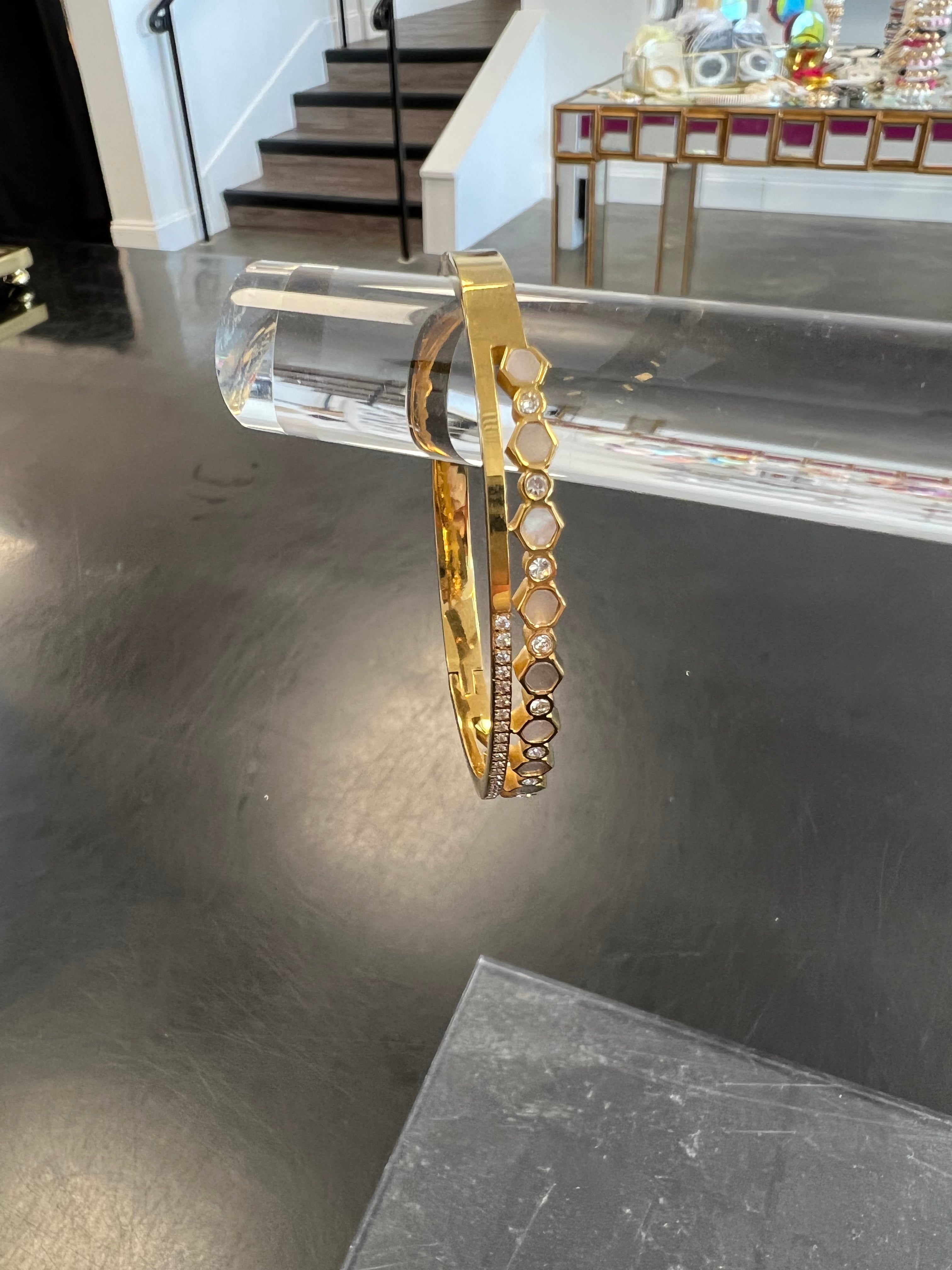 Mother of Pearl & Diamonds Cuff in Gold and Silver