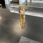 This stunning gold cuff adds a classic touch of elegance to any wardrobe. This  beautiful bracelet is crafted with a diamond style and mother of pearl stones to offer a subtle shimmer. Water resistant