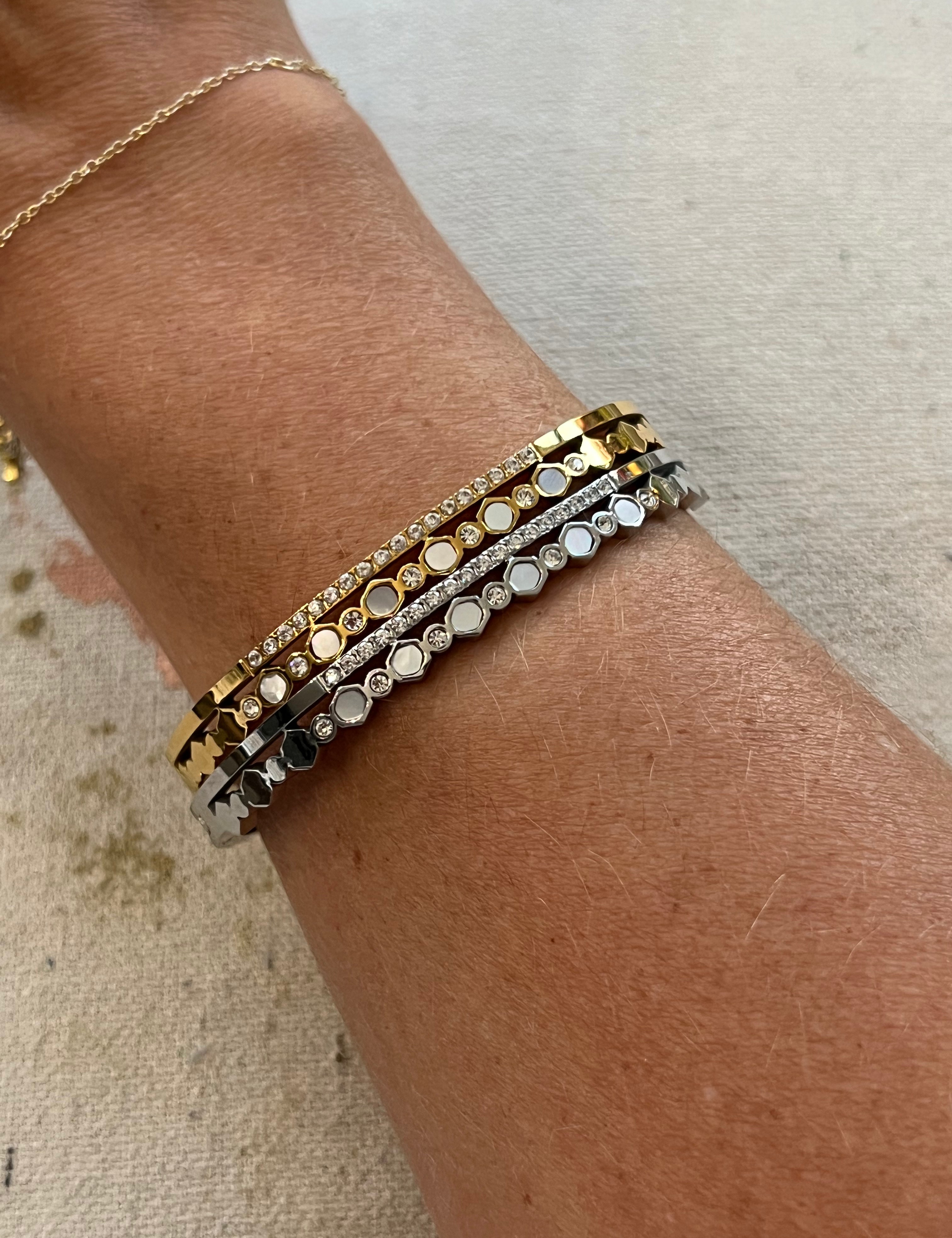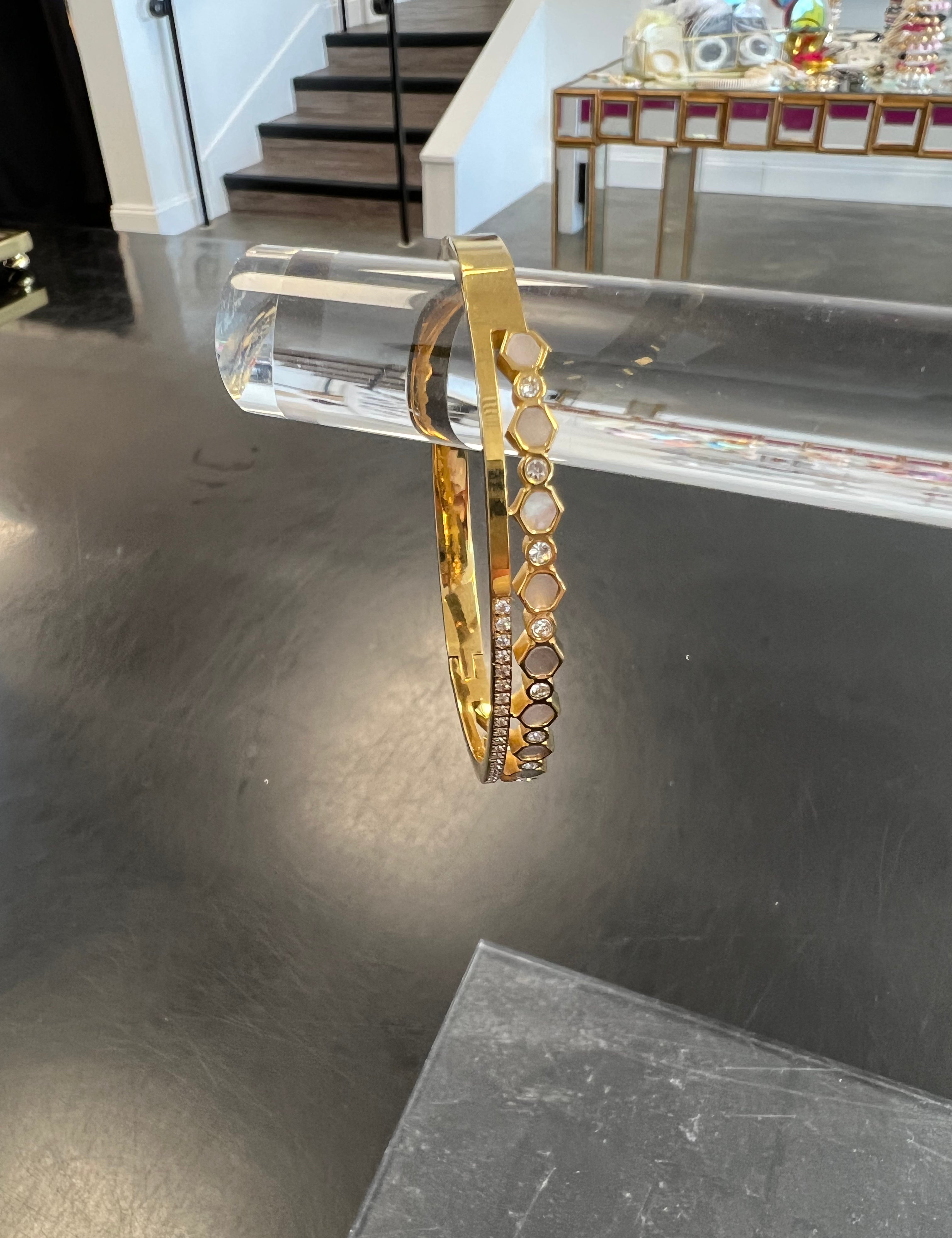 Mother of Pearl & Diamonds Cuff in Gold and Silver