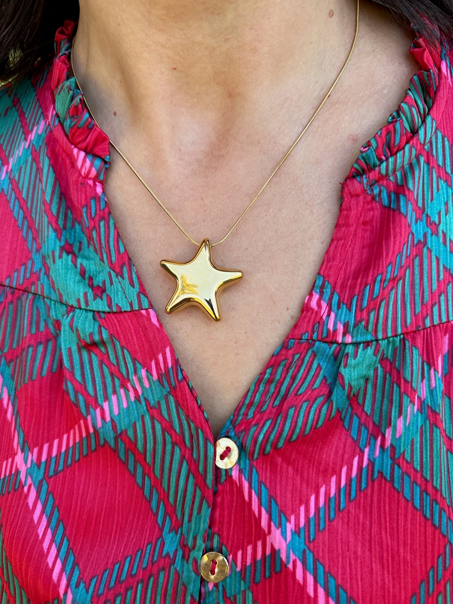 The Bubble Star Necklace in Gold combines charming design with lasting quality. Its water-resistant finish protects against everyday wear, while the lifetime warranty ensures your necklace remains a treasured piece for years to come. Perfect for adding sparkle and confidence to any look, this necklace is a smart and stylish investment.