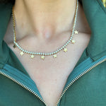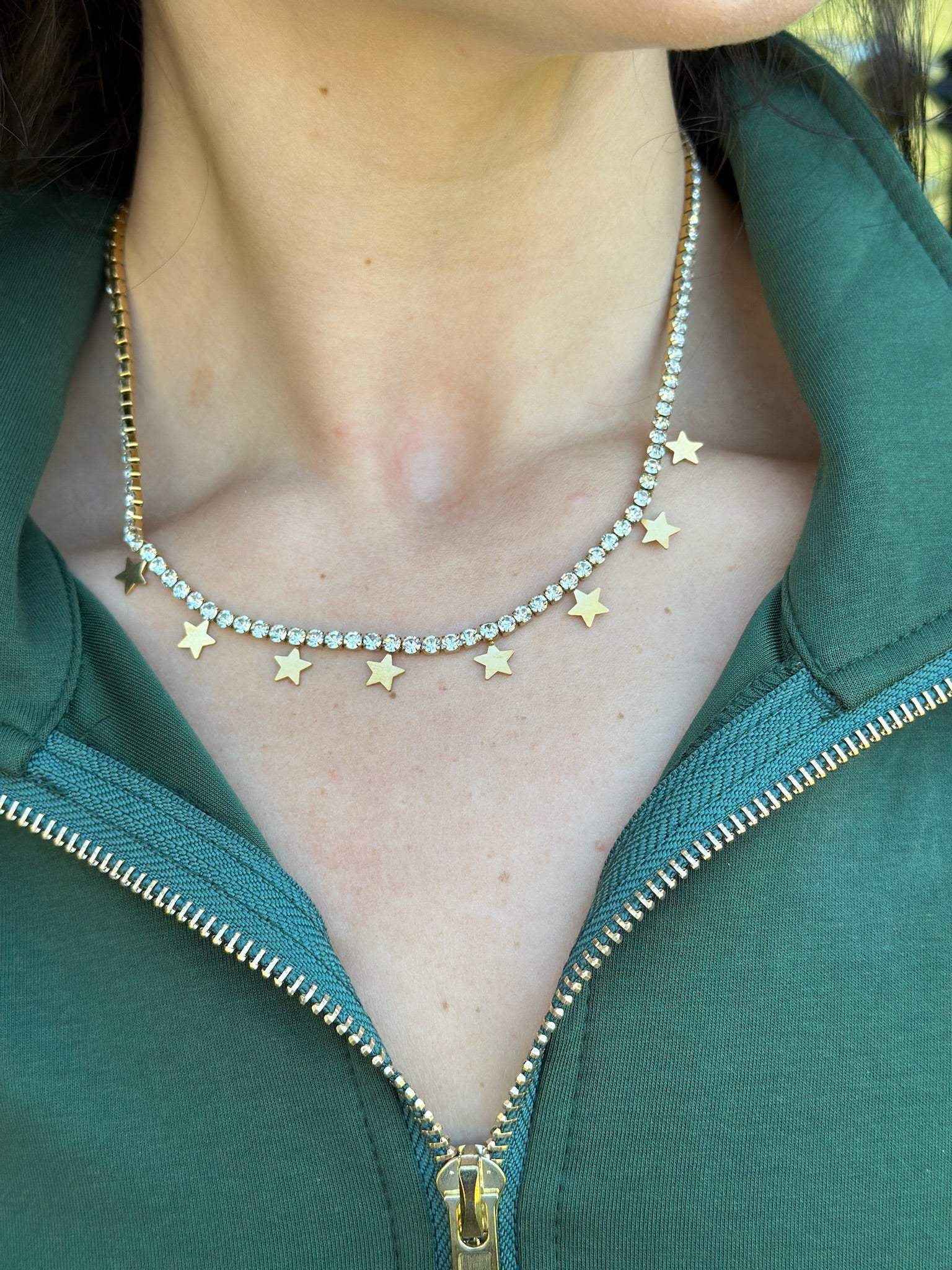 Discover timeless elegance with the Diamond CZ Necklace adorned with sparkling stars, combining silver and gold. Designed to withstand daily wear, this water-resistant necklace offers lasting beauty and comes backed by a lifetime warranty. Perfect for adding a celestial touch to any outfit, it’s a shining symbol of your unique style and lasting sophistication.
