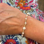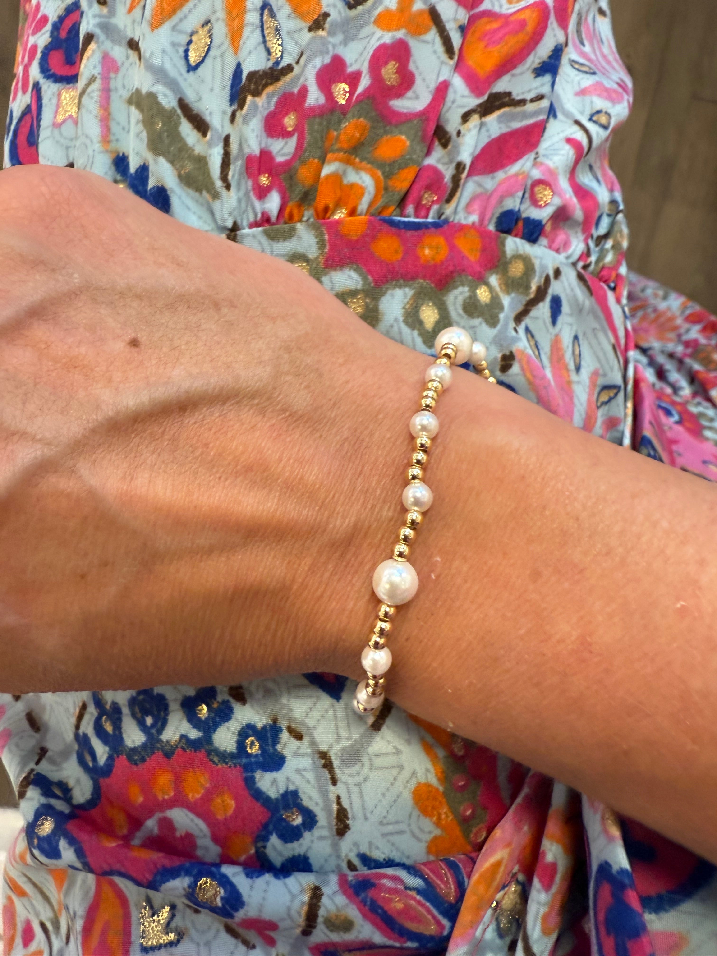 Gold Bead & Large Pearl/Small Pearl Stretch Beaded Bracelet in gold and white