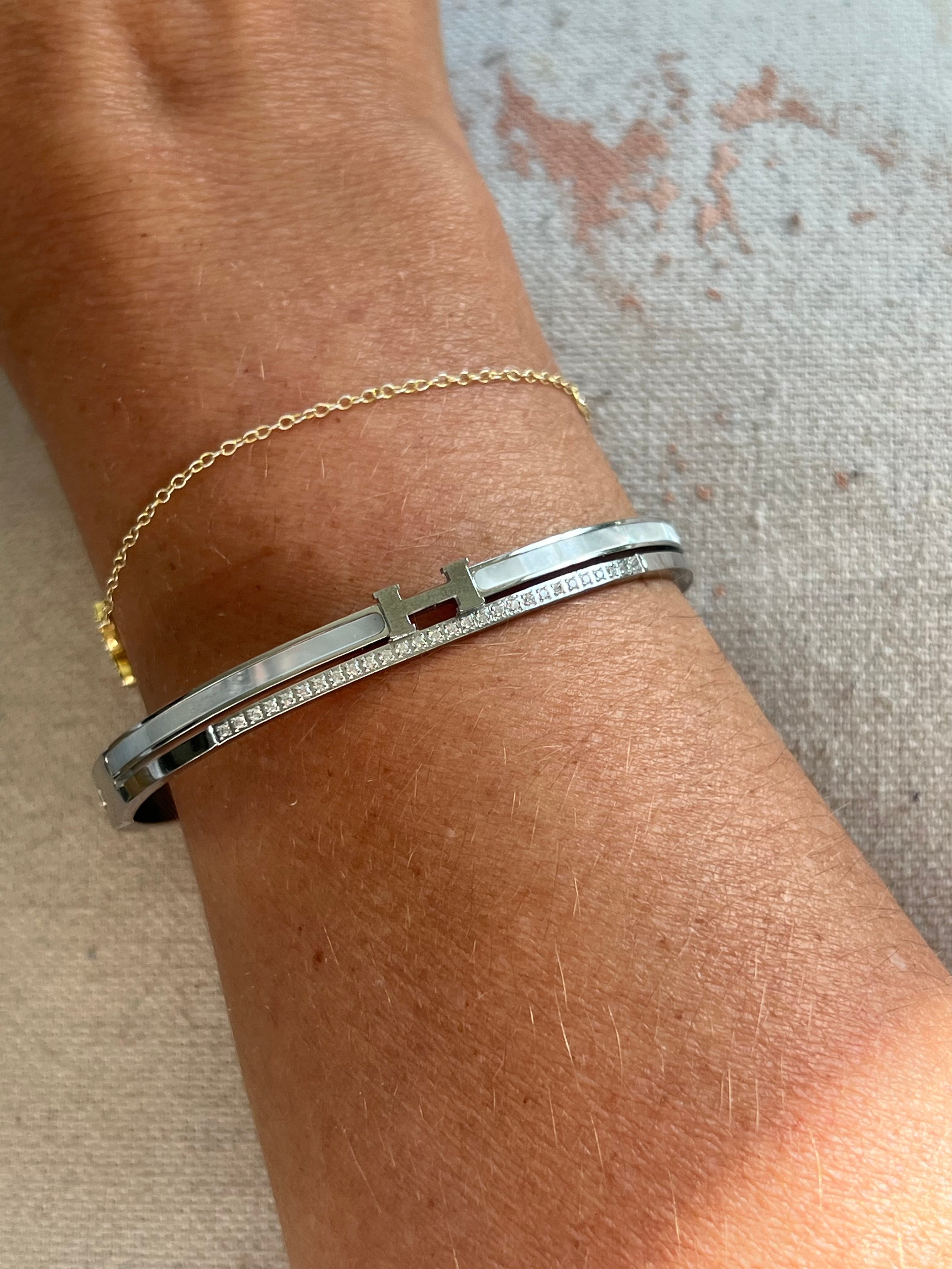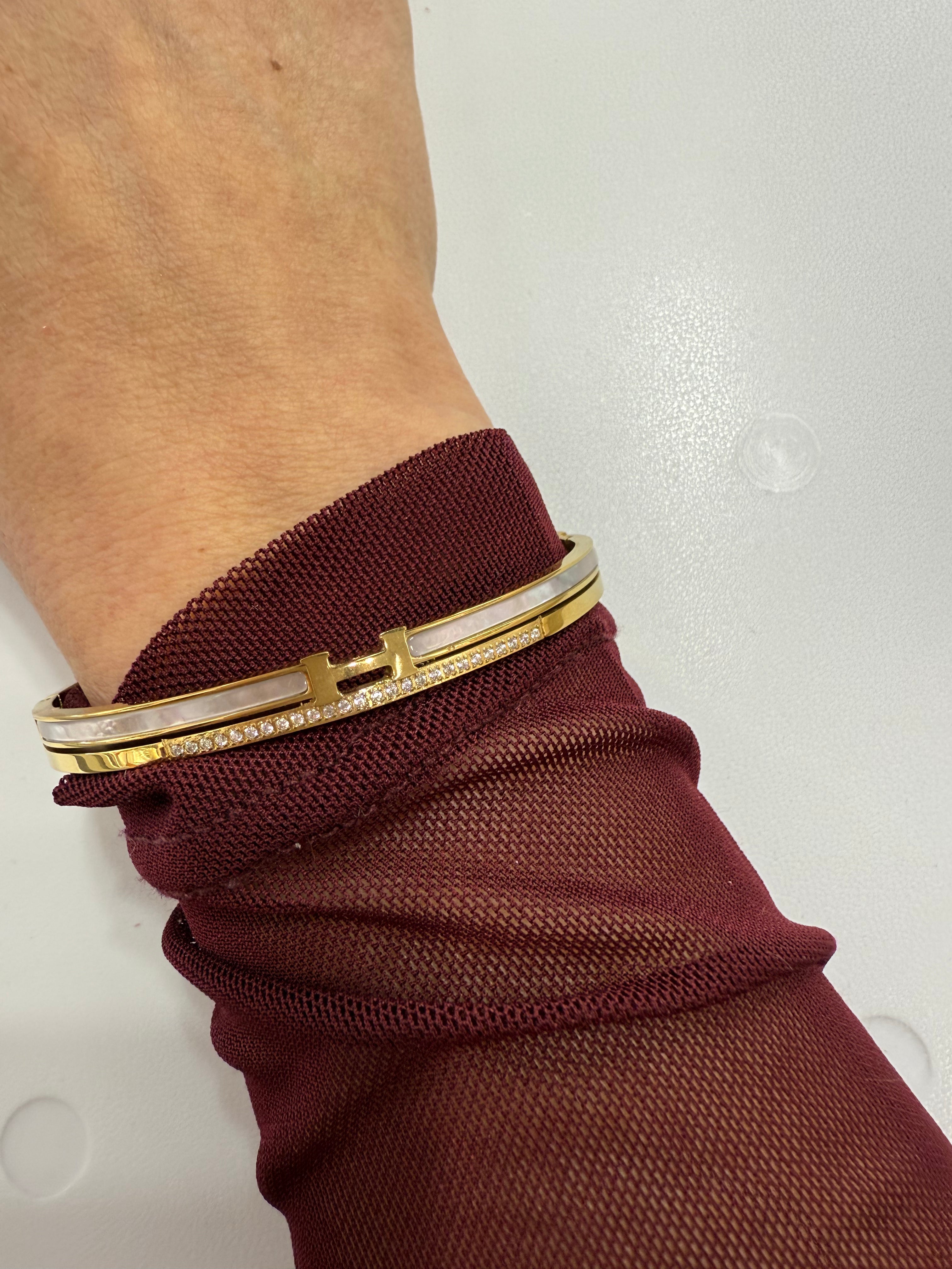 Mother of Pearl & Diamond H Bracelet Cuff in Gold and Silver
