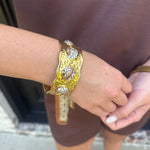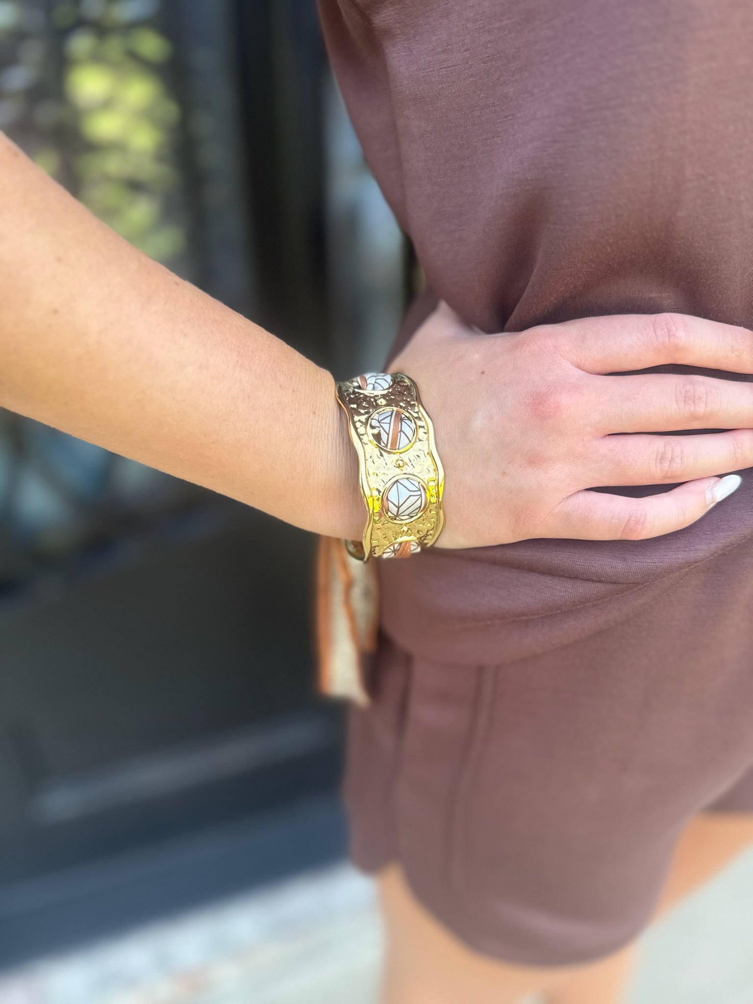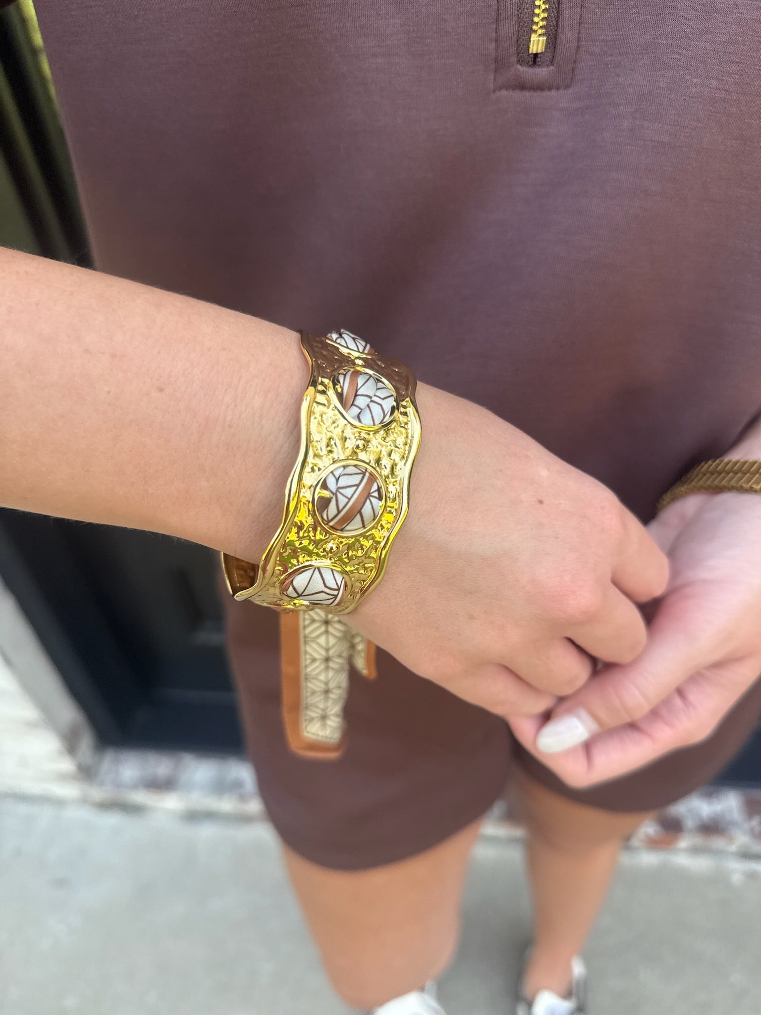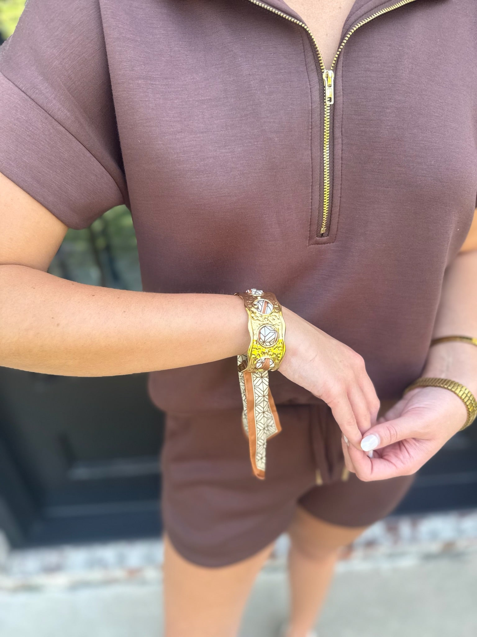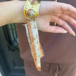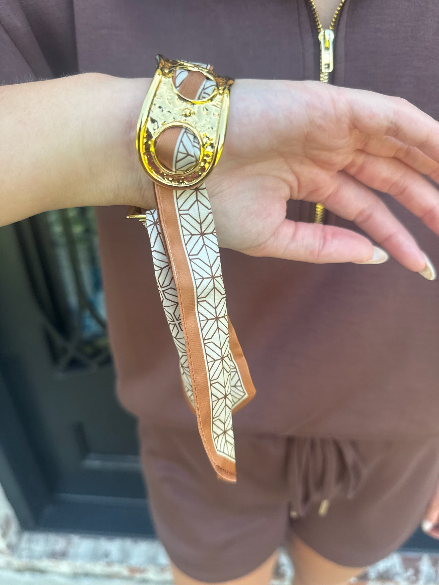 The Scarf Cuff Bracelet is a fashion-forward accessory that expertly combines the softness of scarf fabric with the bold structure of a cuff. This innovative design provides a comfortable, lightweight fit while adding a sophisticated, textured element to your ensemble. Ideal for elevating both casual and formal looks, it reflects a refined approach to modern trends and meticulous craftsmanship.