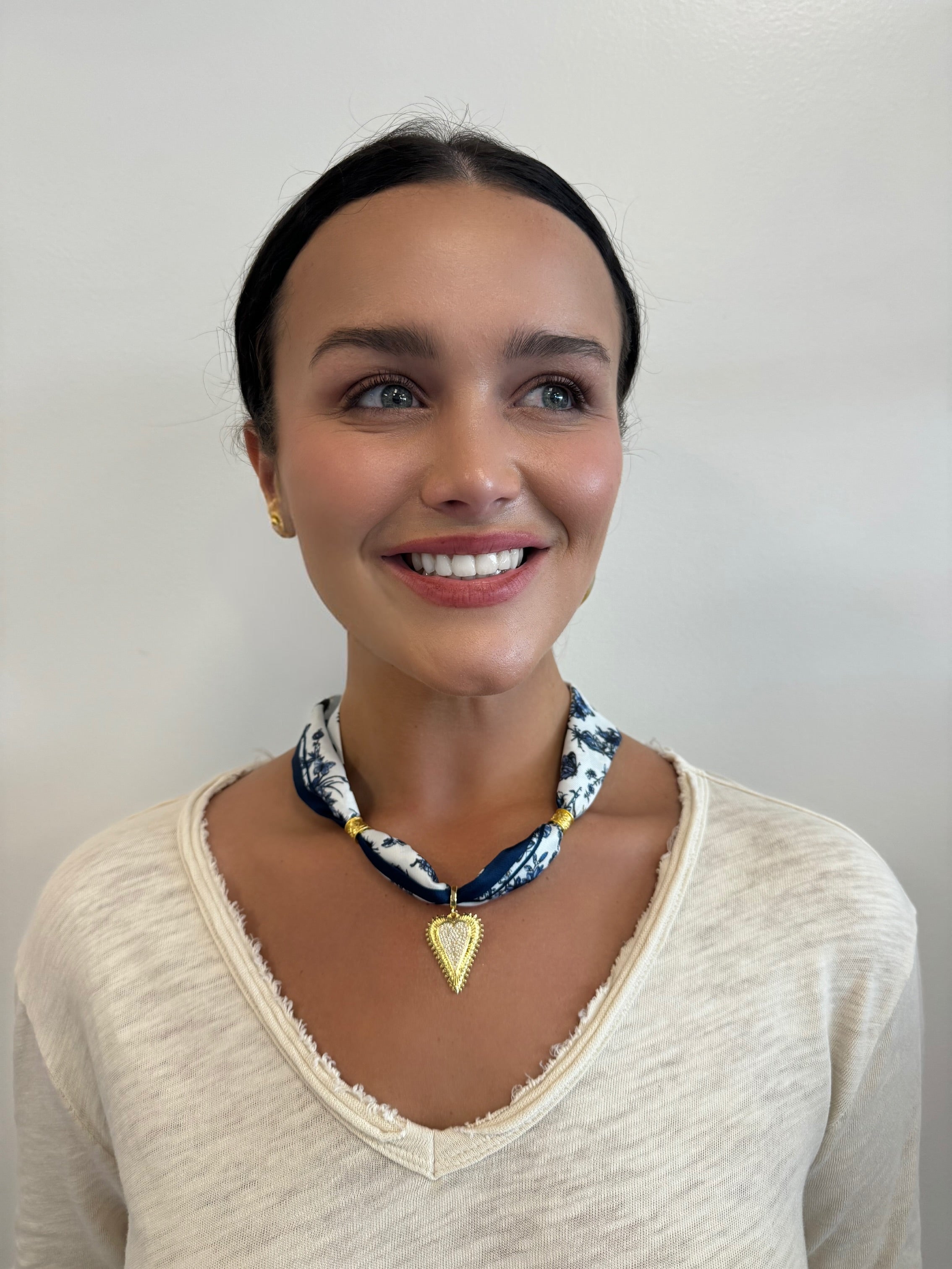Scarf Necklace Heart Pendant with Pave Diamond Center