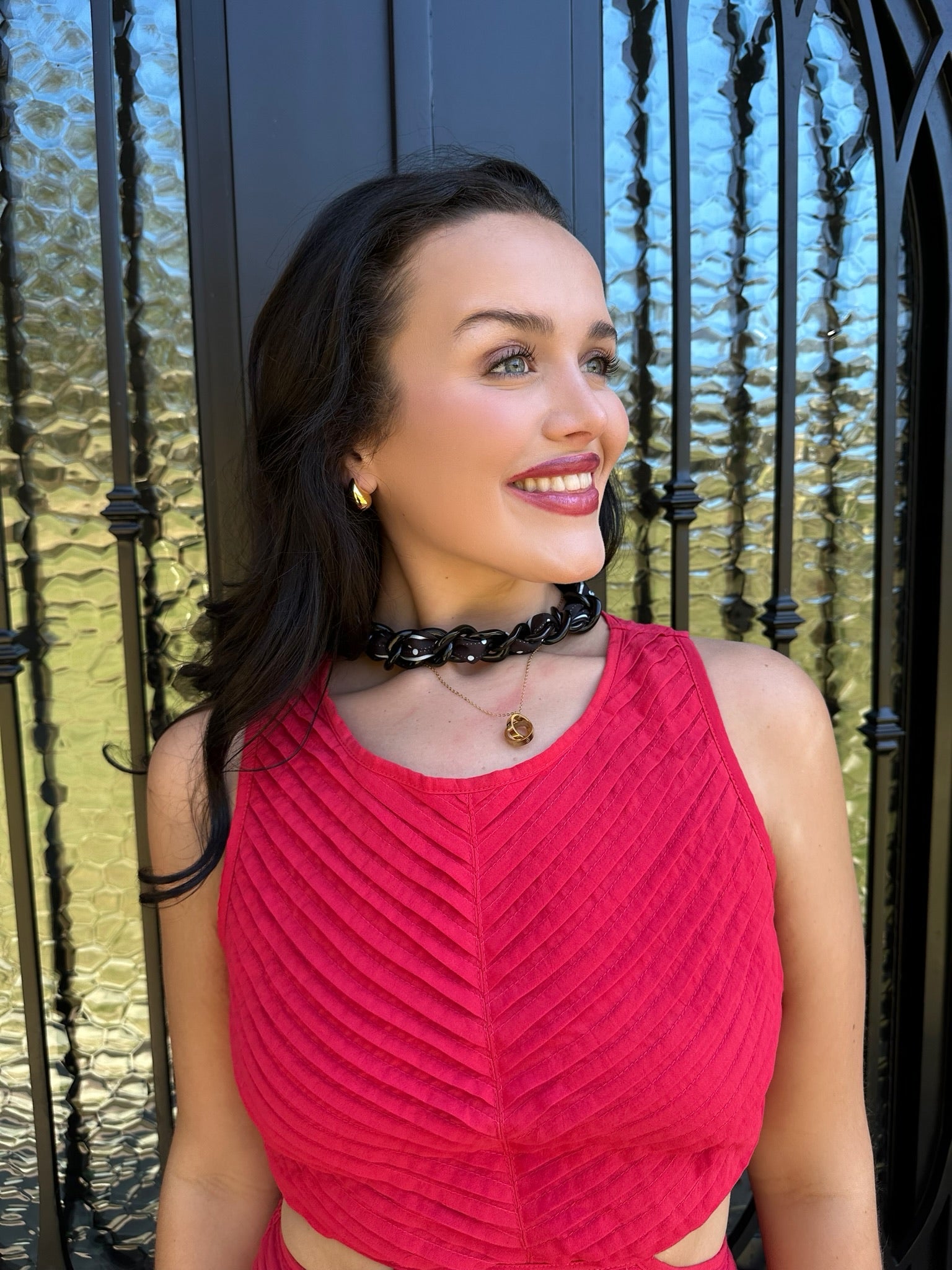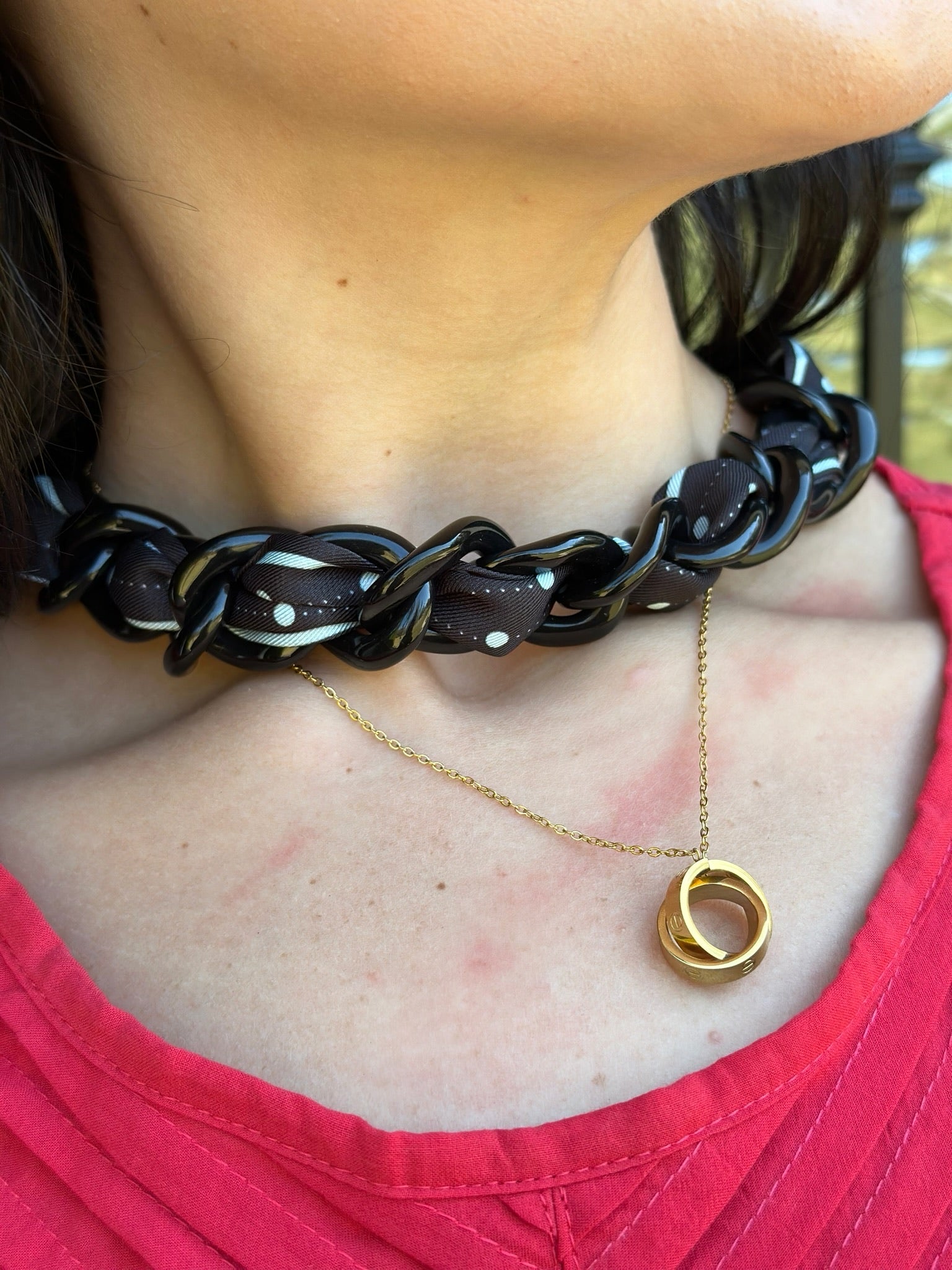 Make a bold statement with the Scarf Necklace featuring a chunky black enamel chain. Water-resistant and built to last, this accessory offers enduring style backed by a lifetime warranty—perfect for adding effortless sophistication to any outfit.