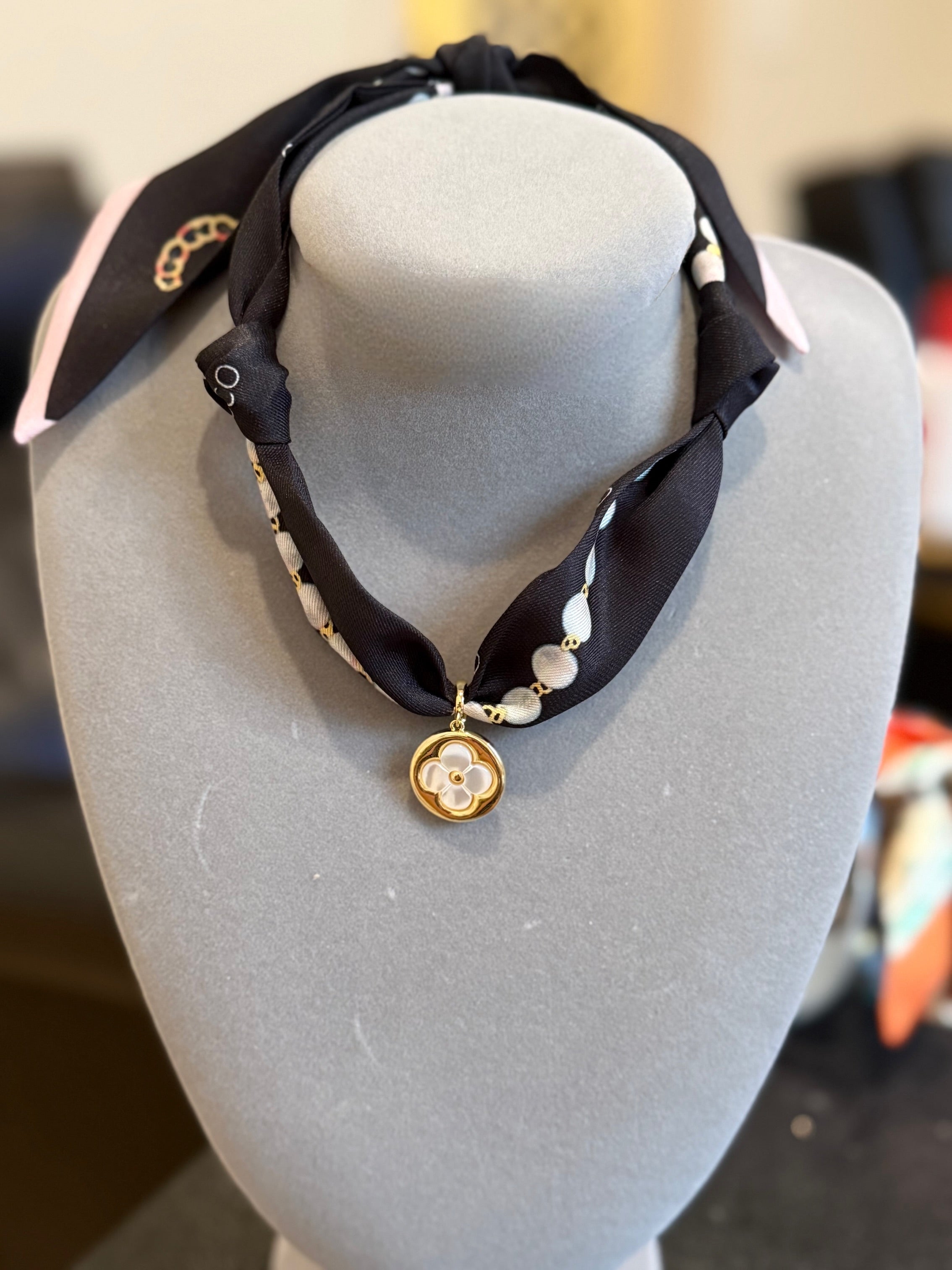 Scarf Necklace with Clover Charm