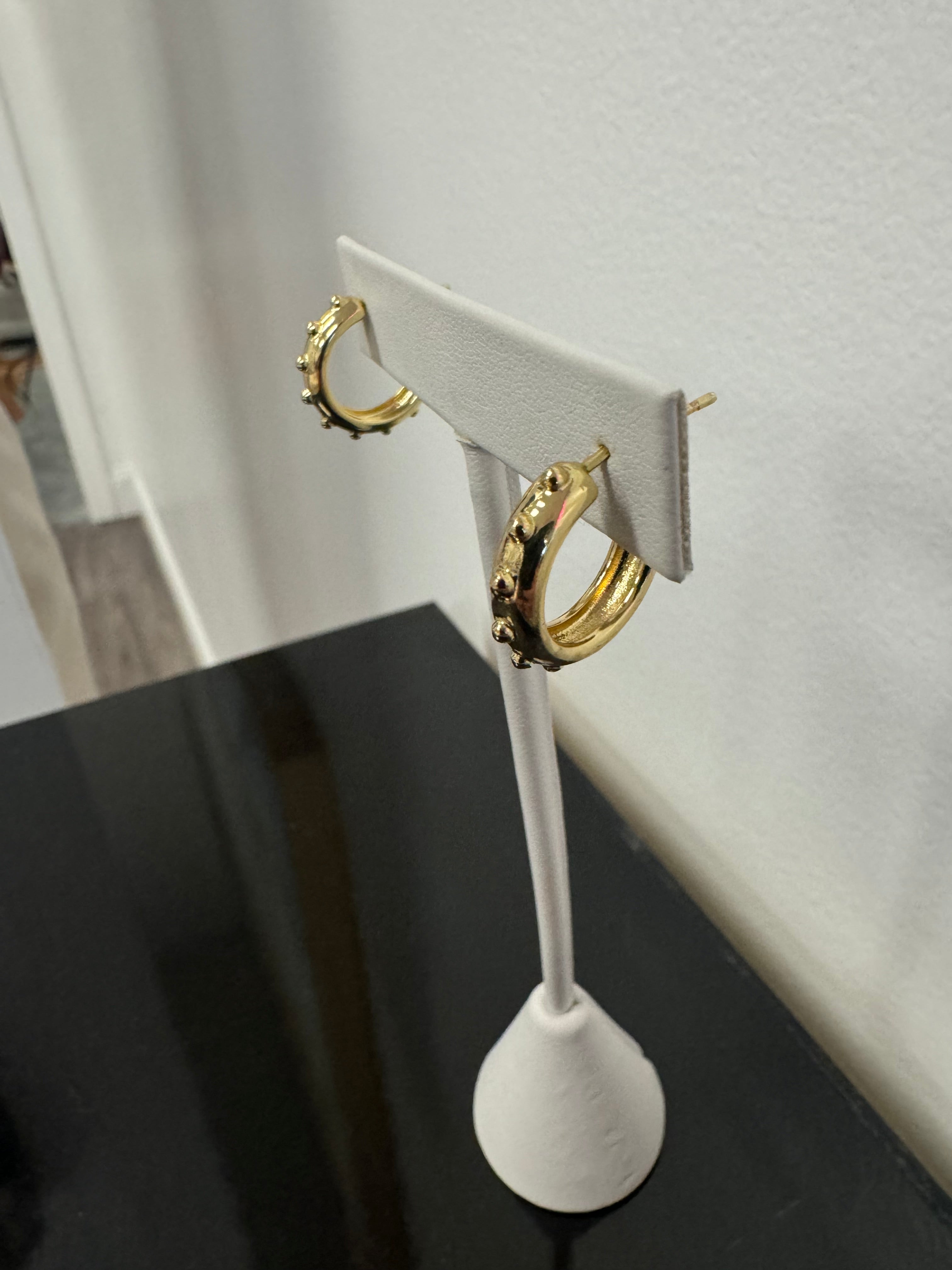 Make a statement with the Studded Huggies in Gold—crafted to resist water and backed by a lifetime warranty. These earrings blend bold studded detail with lasting durability, ensuring your accessory remains as striking as the day you first wear it. Perfect for confident, everyday elegance that stands the test of time.