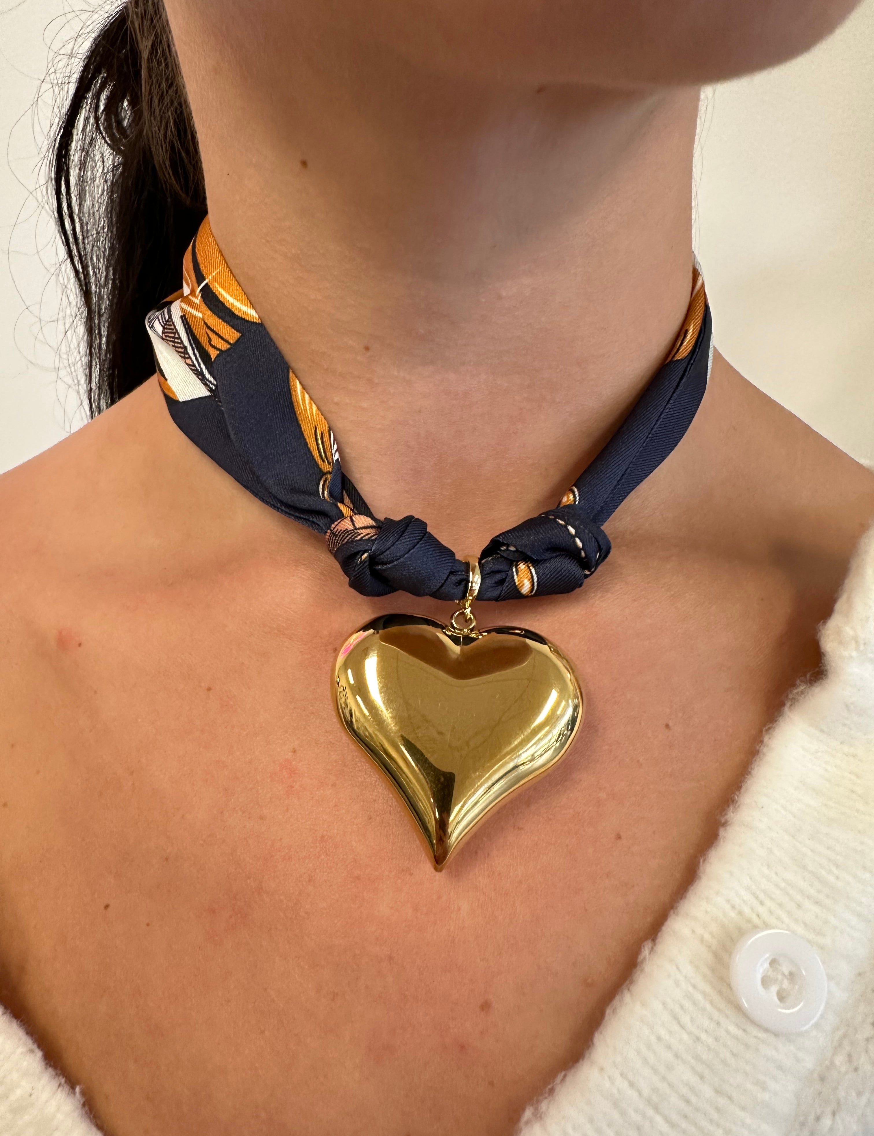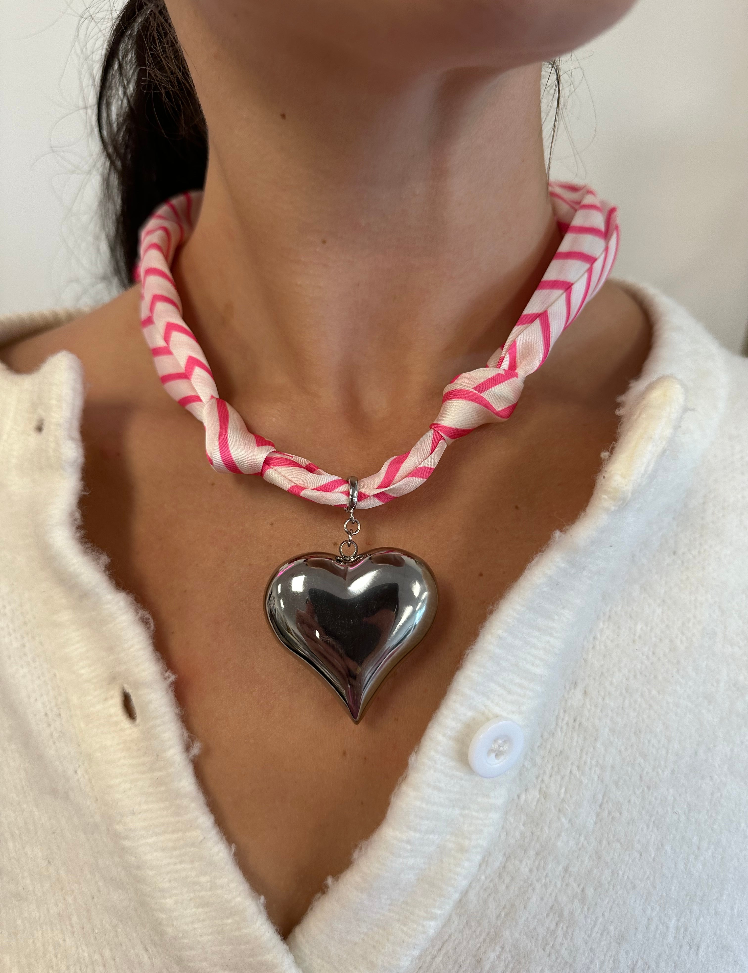 Scarf Necklace with Large Bubble Heart Pendant