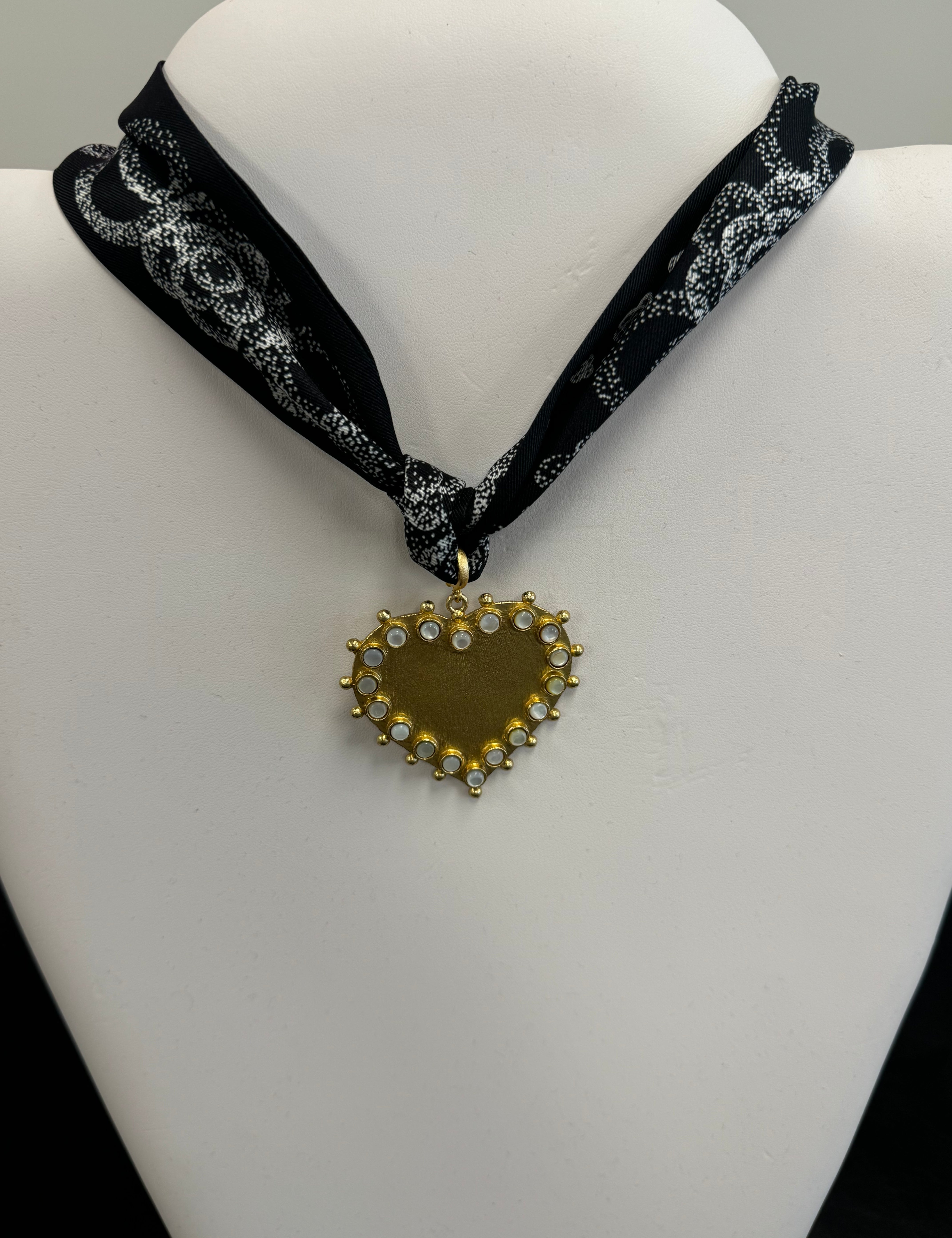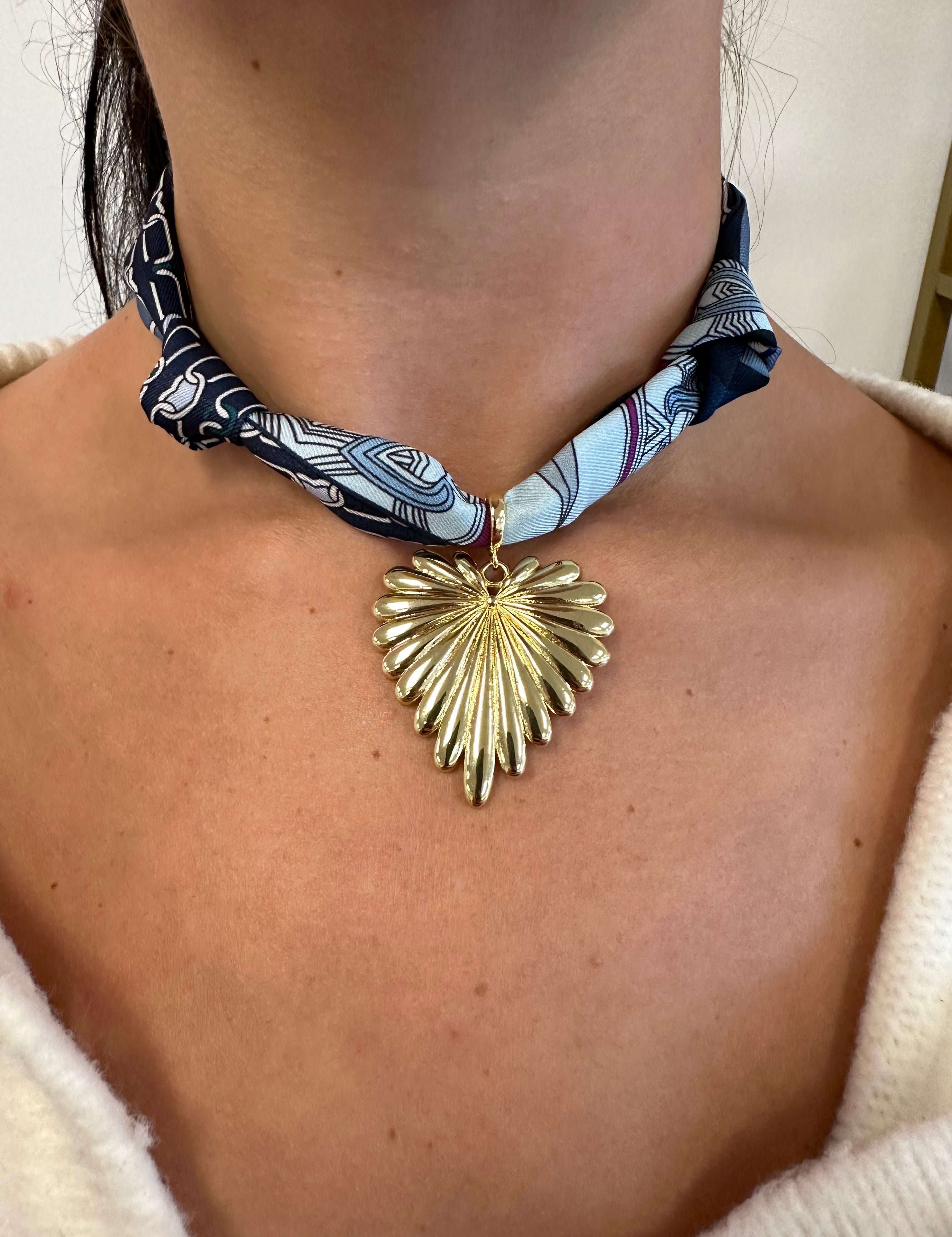 Scarf Necklace with large flat textured heart pendant