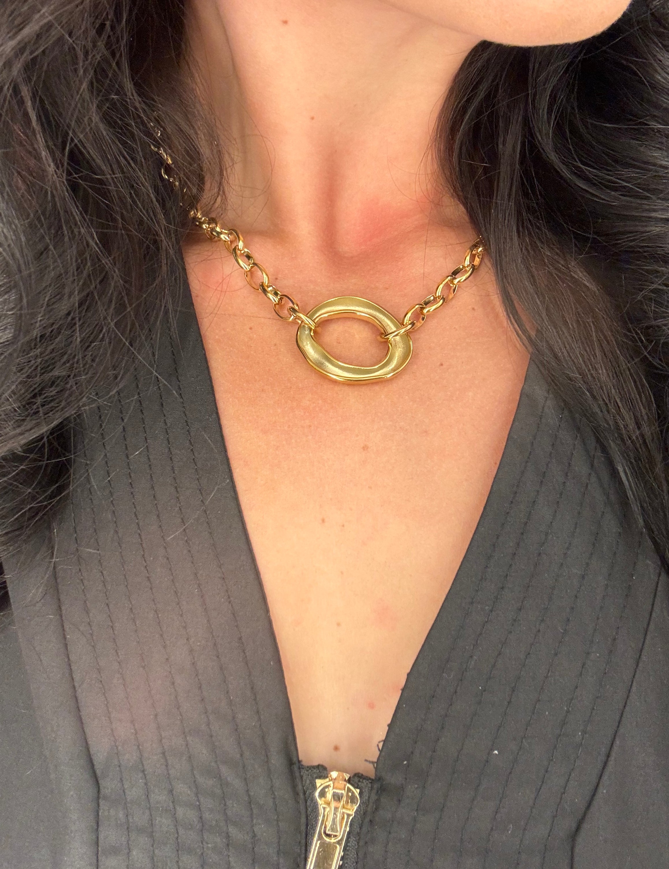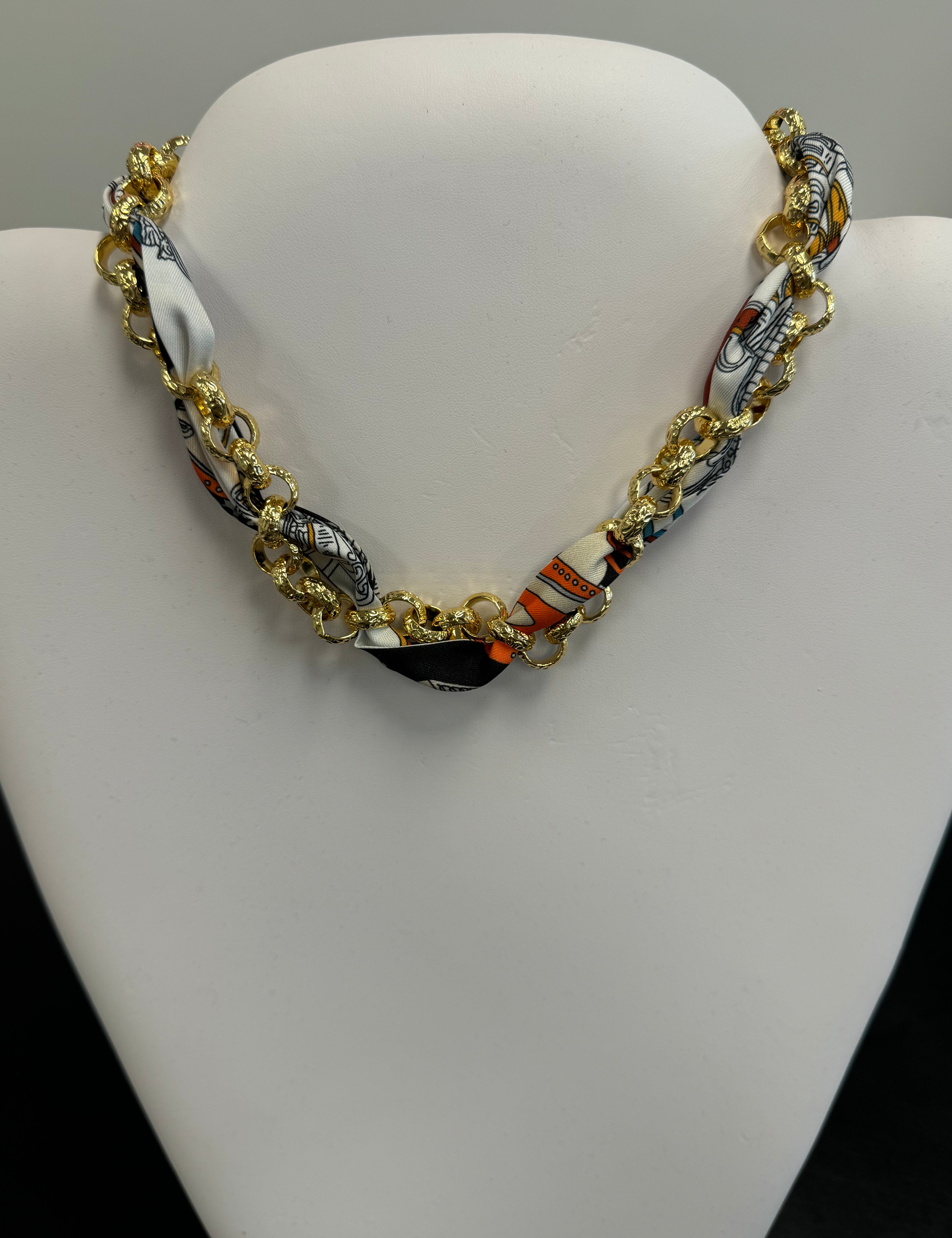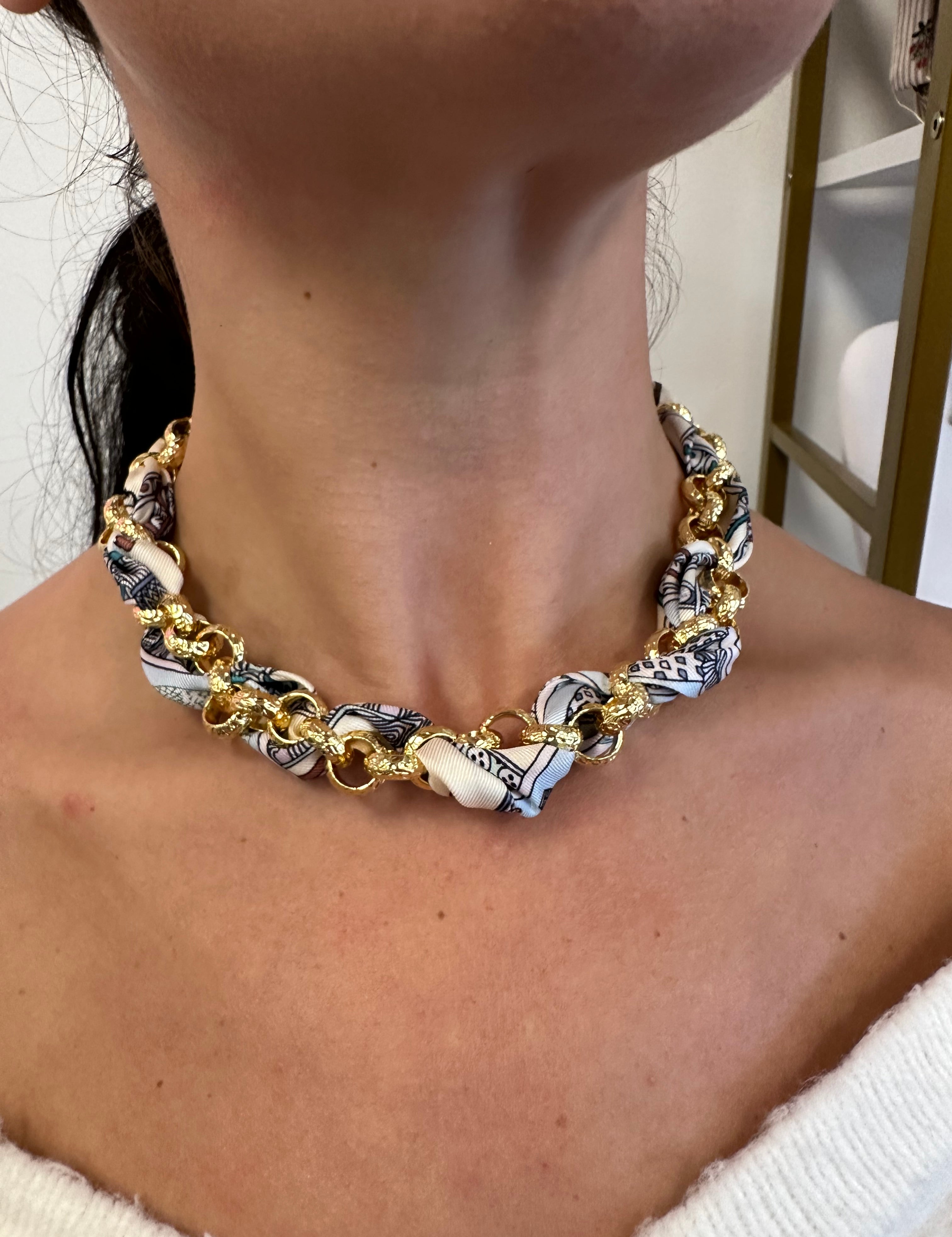 Scarf Necklace with Intertwined Gold chain