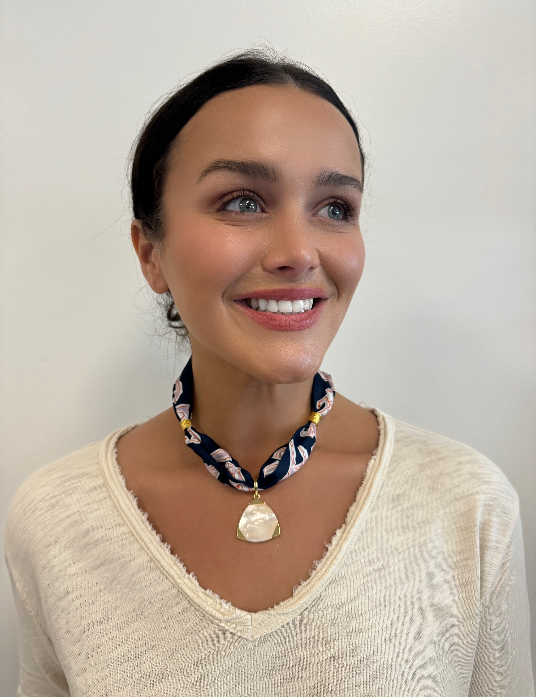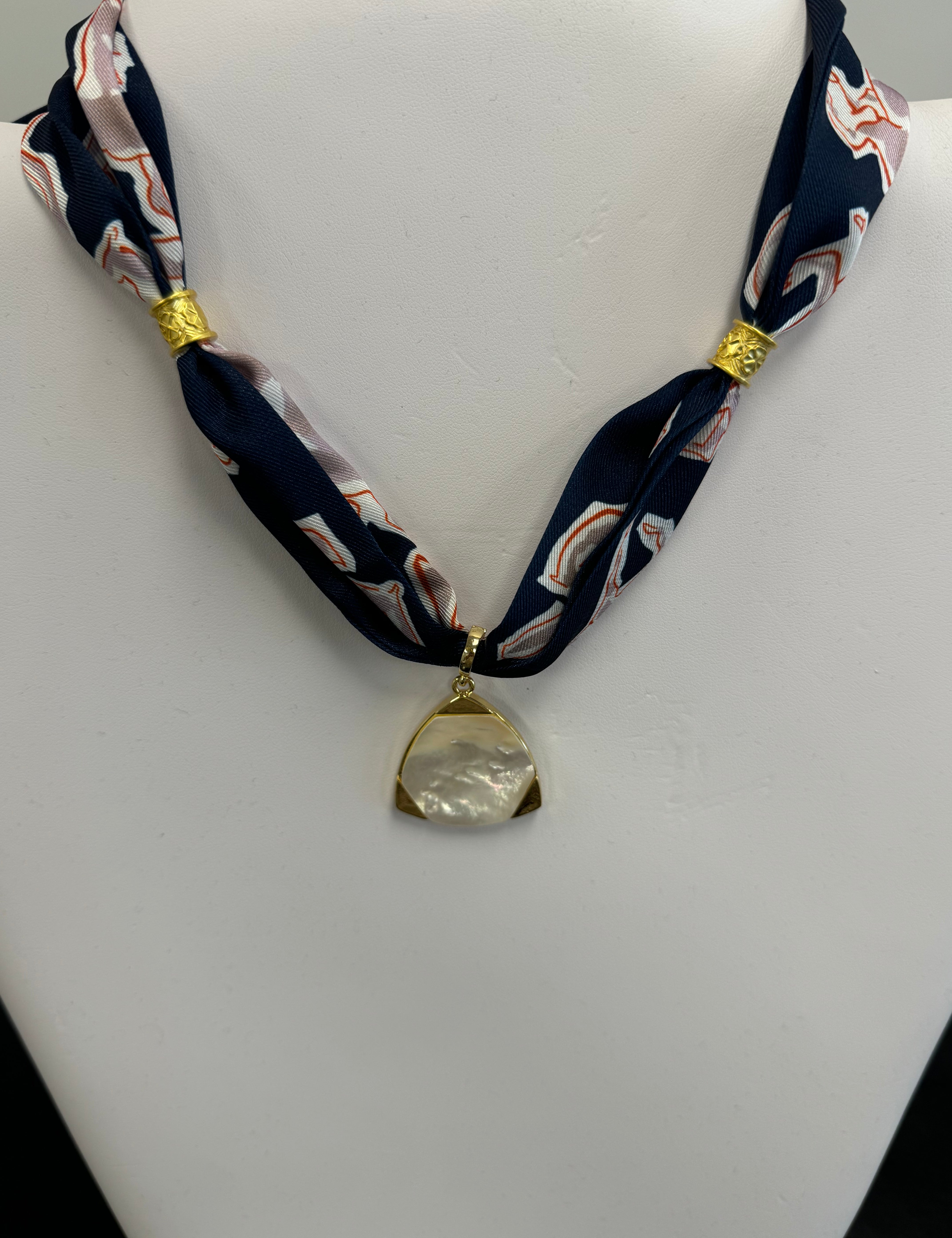 Scarf Necklace with Gold and Opal Triangle Pendant