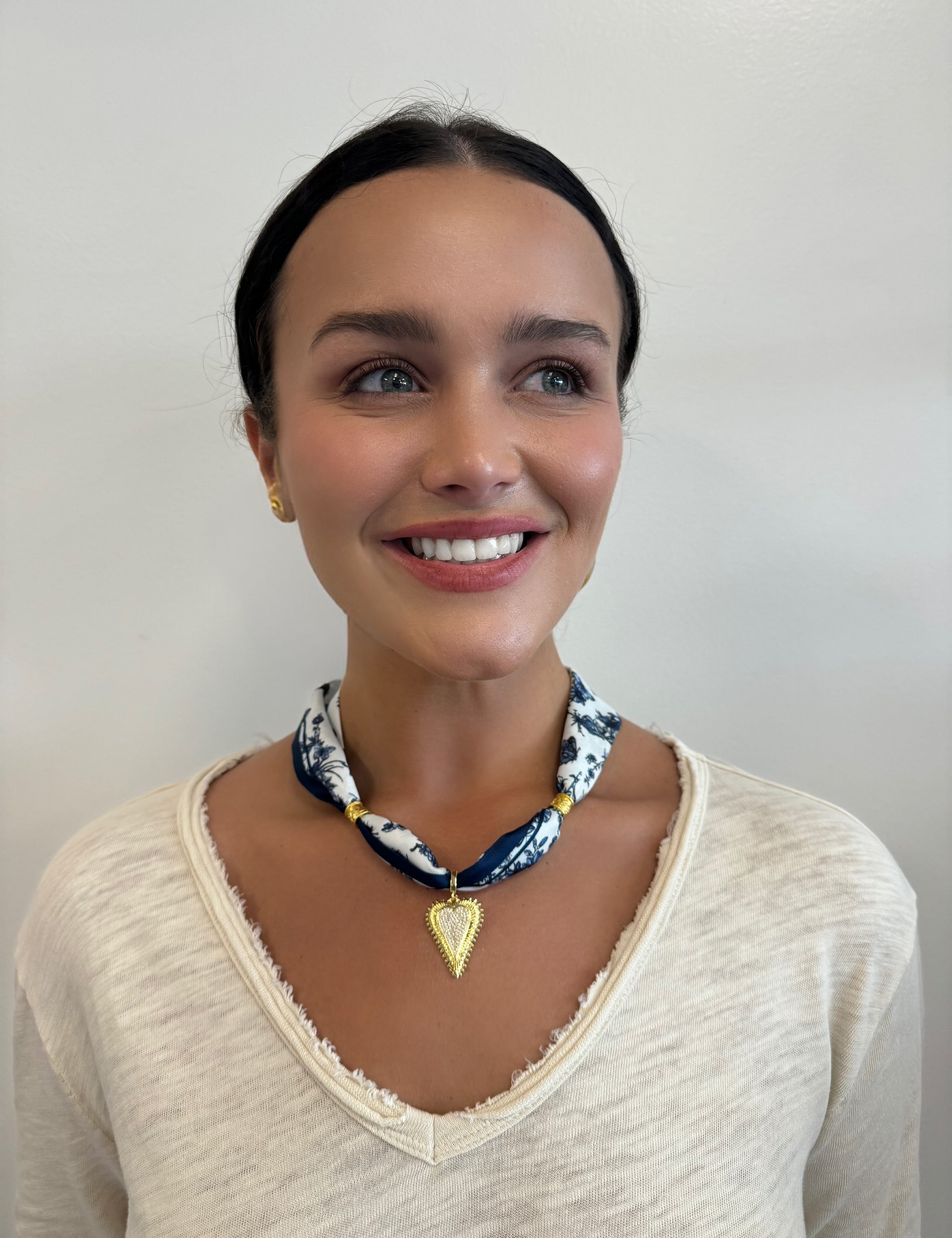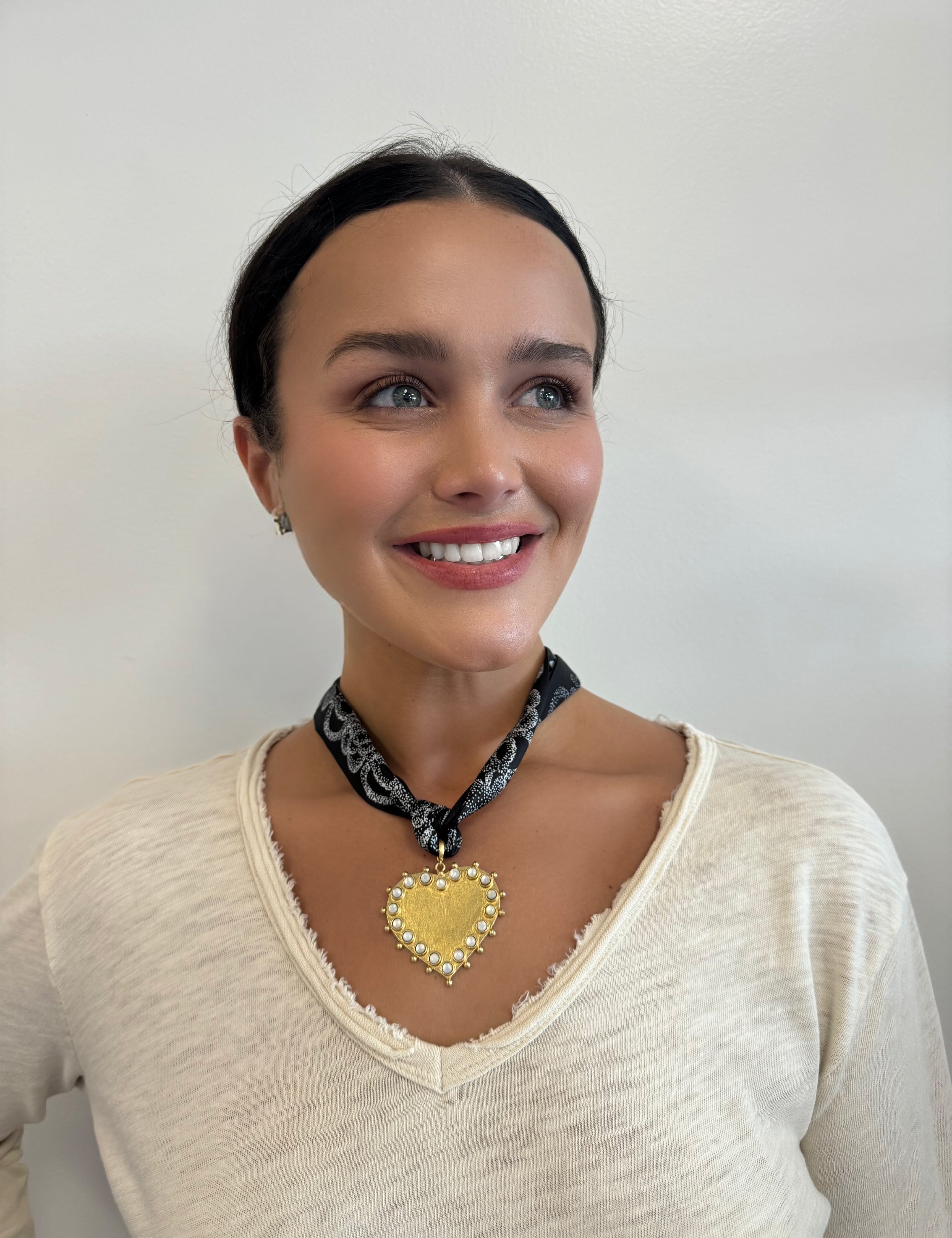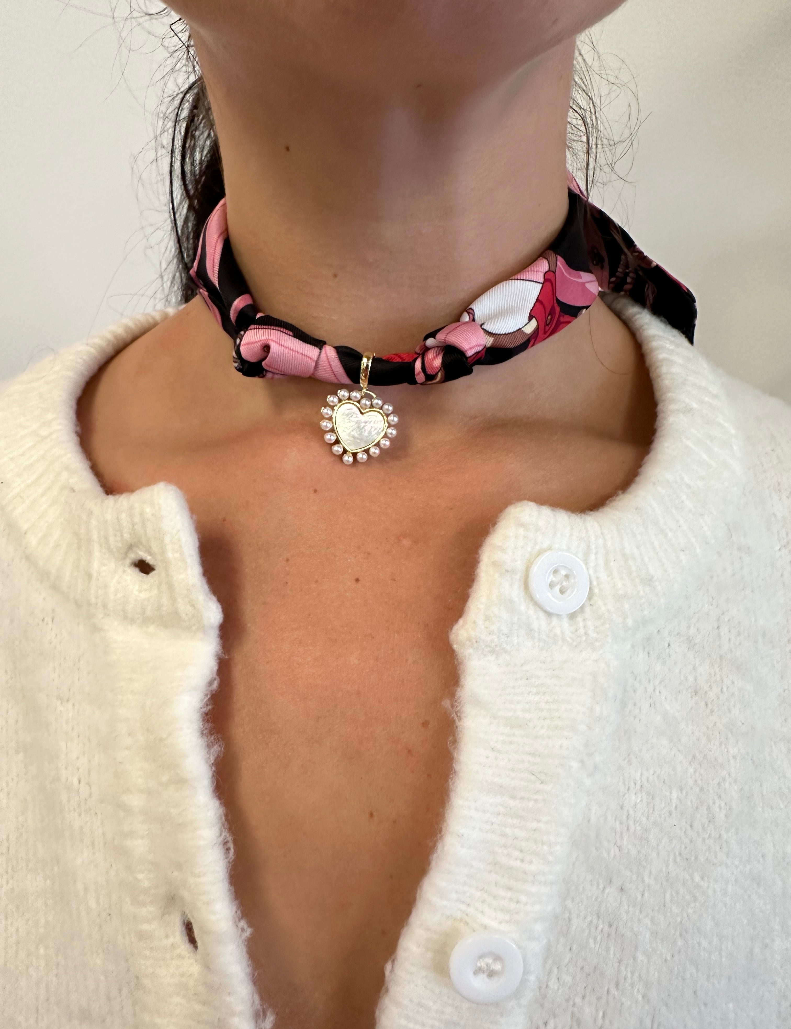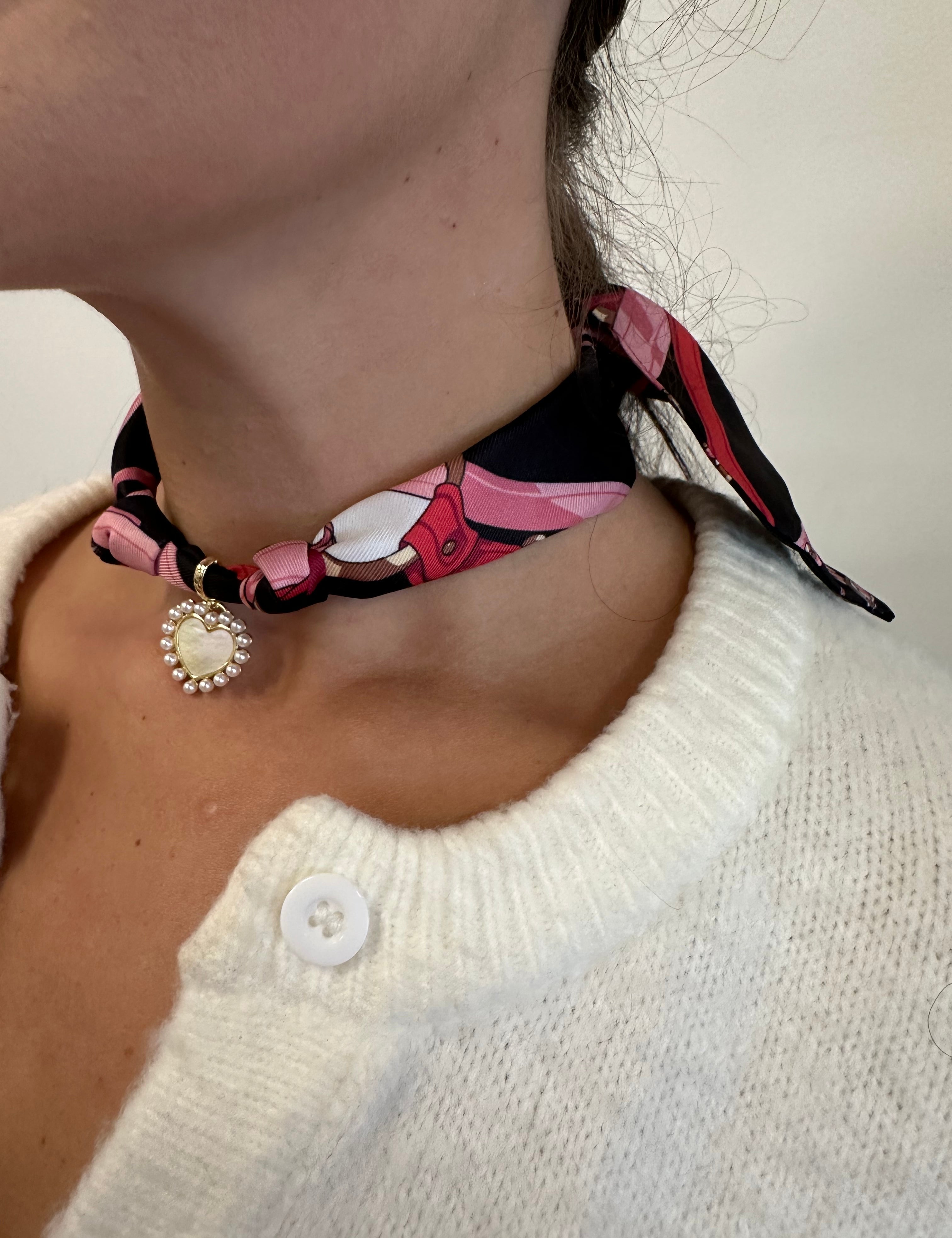 Scarf Necklace Large Heart with Opal Dots