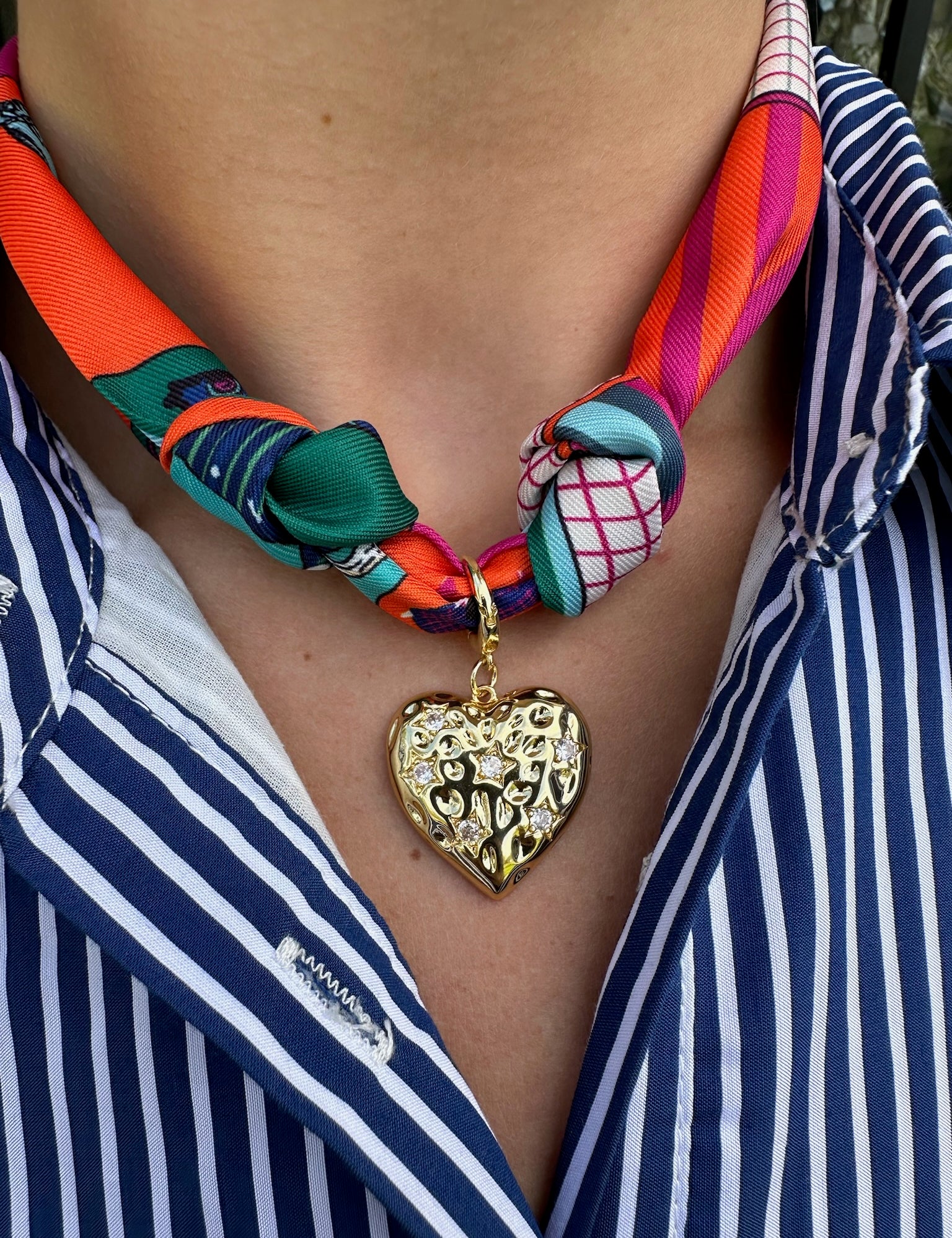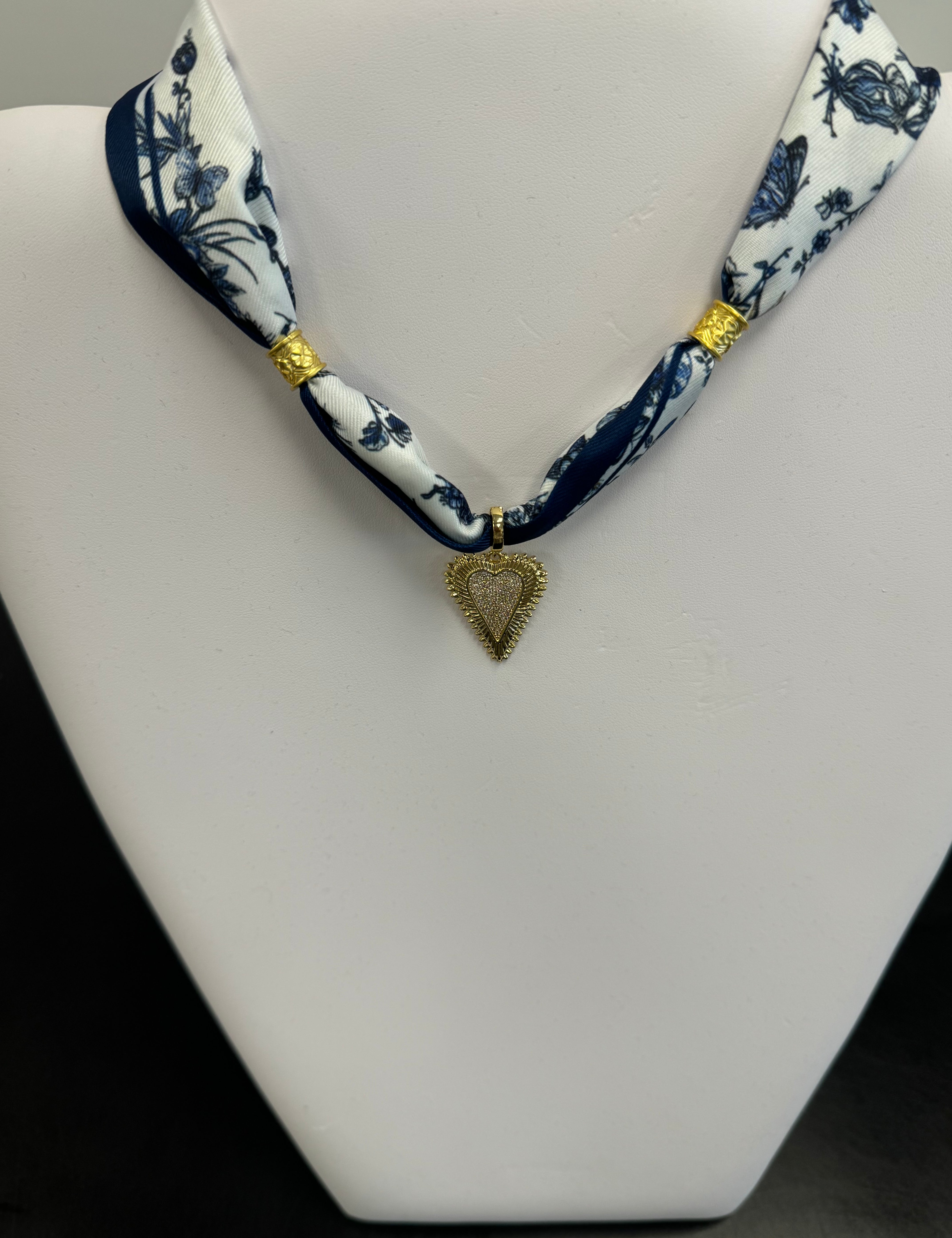 Scarf Necklace with Heart Starburst Charm