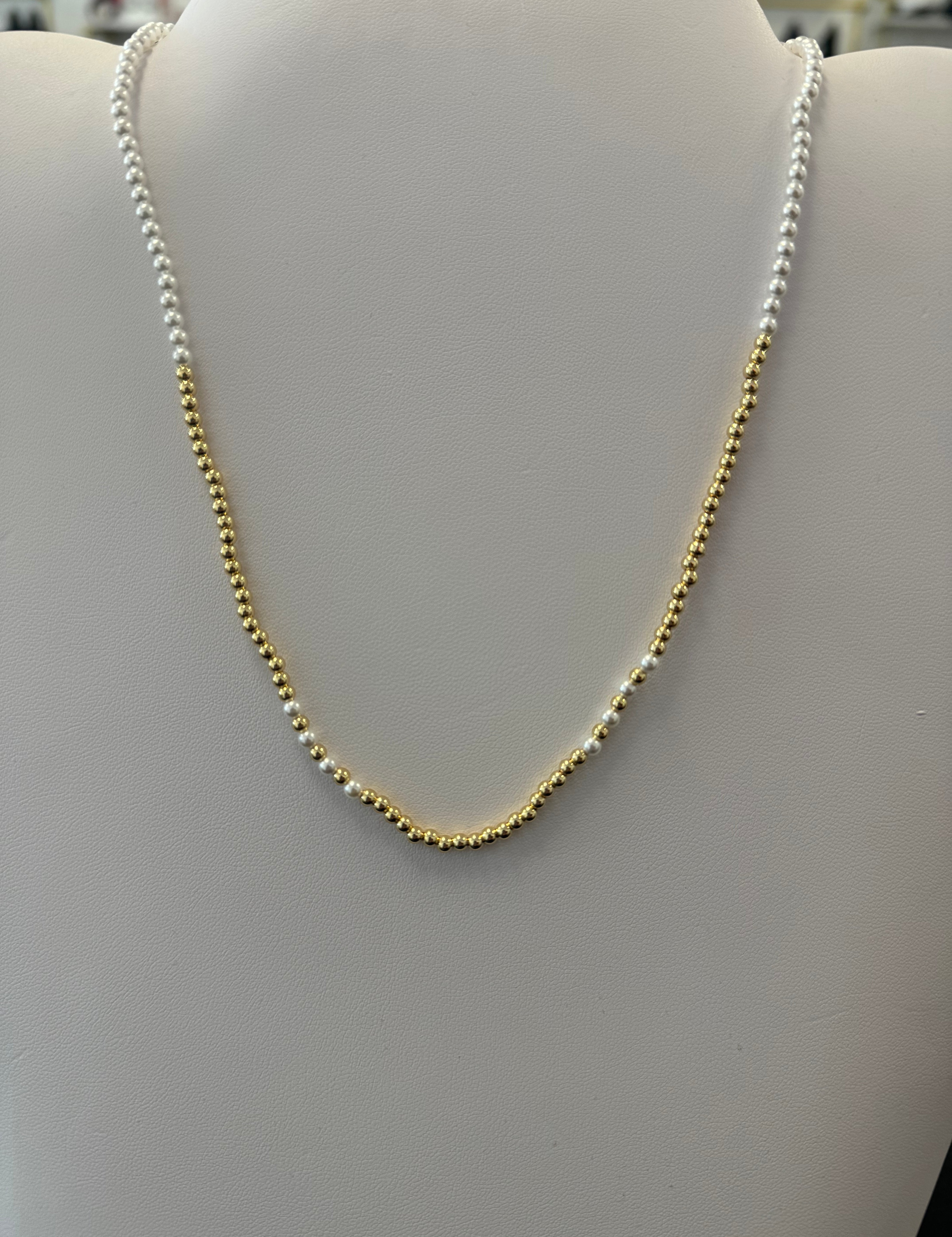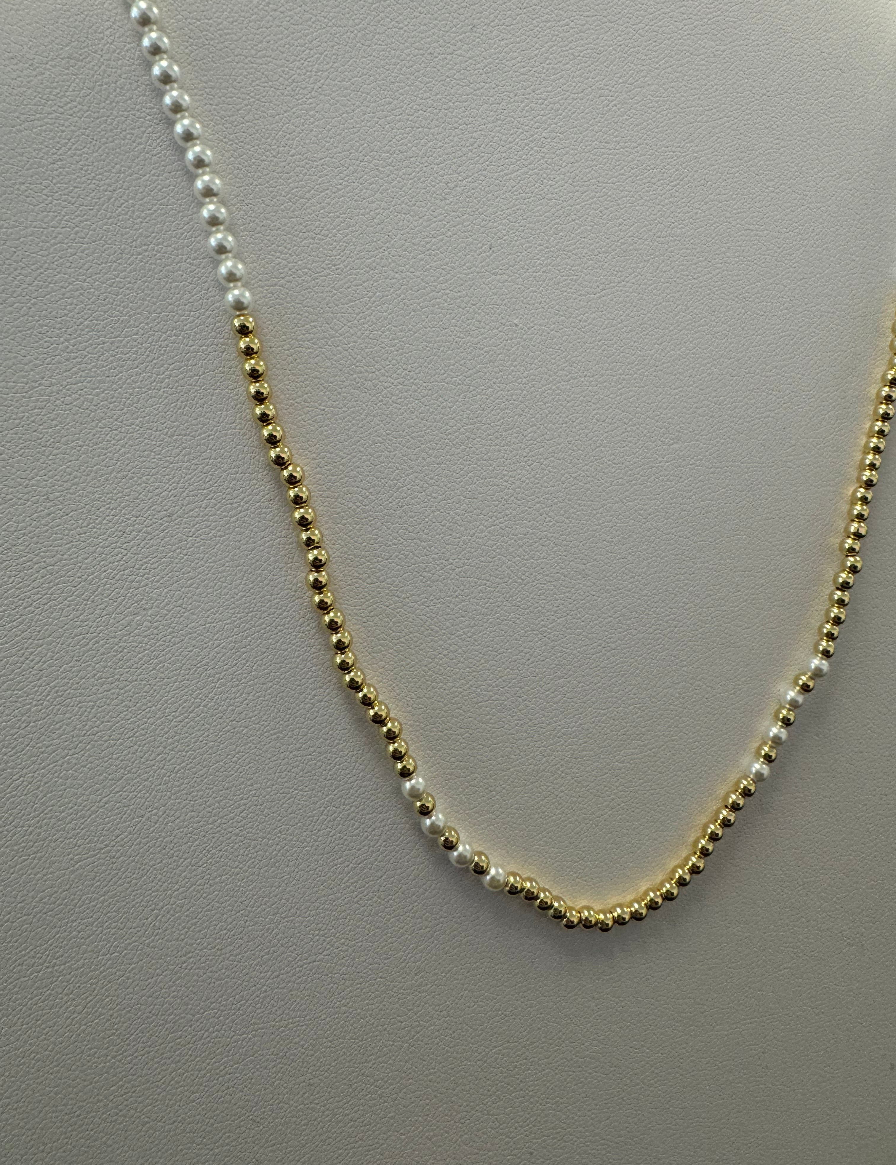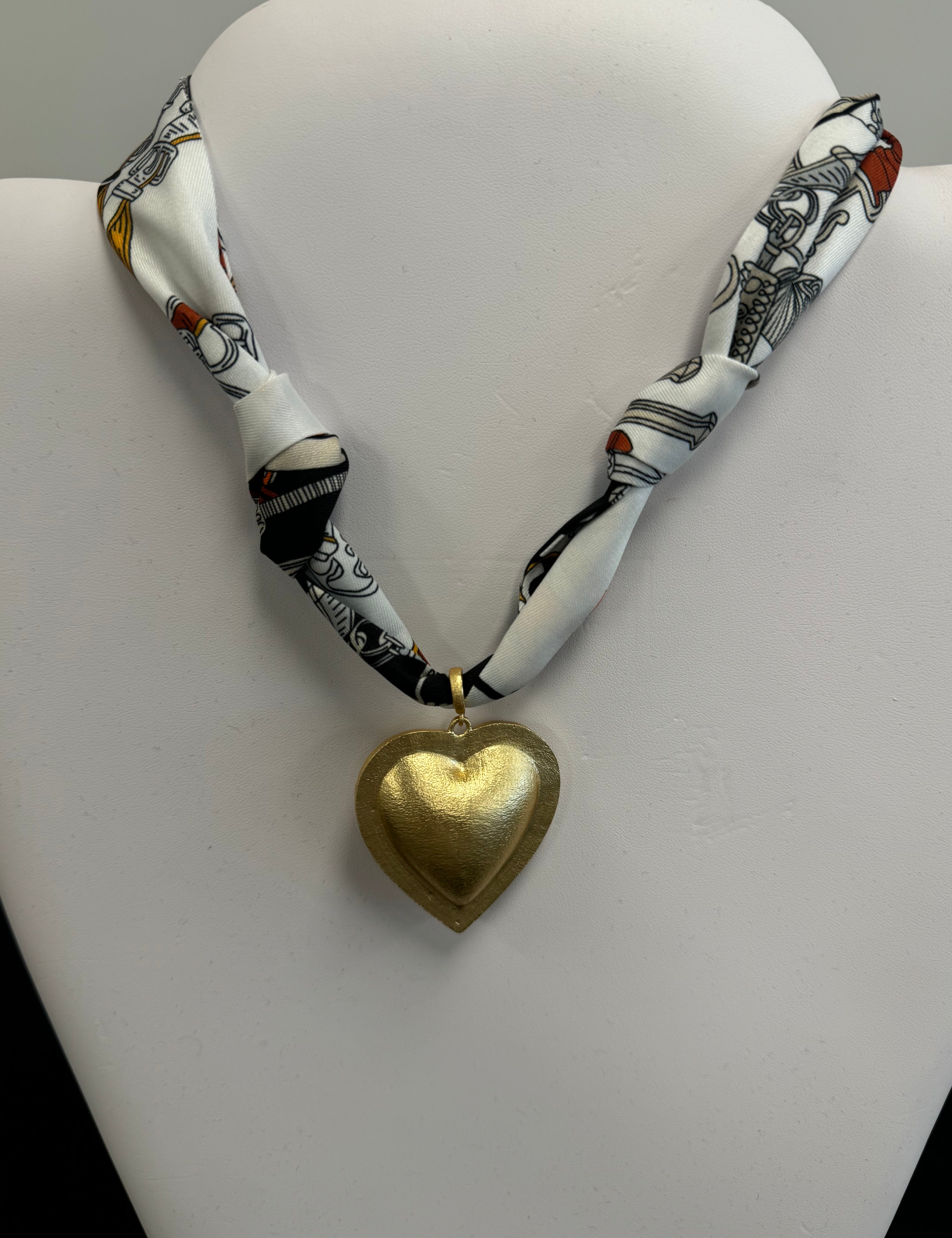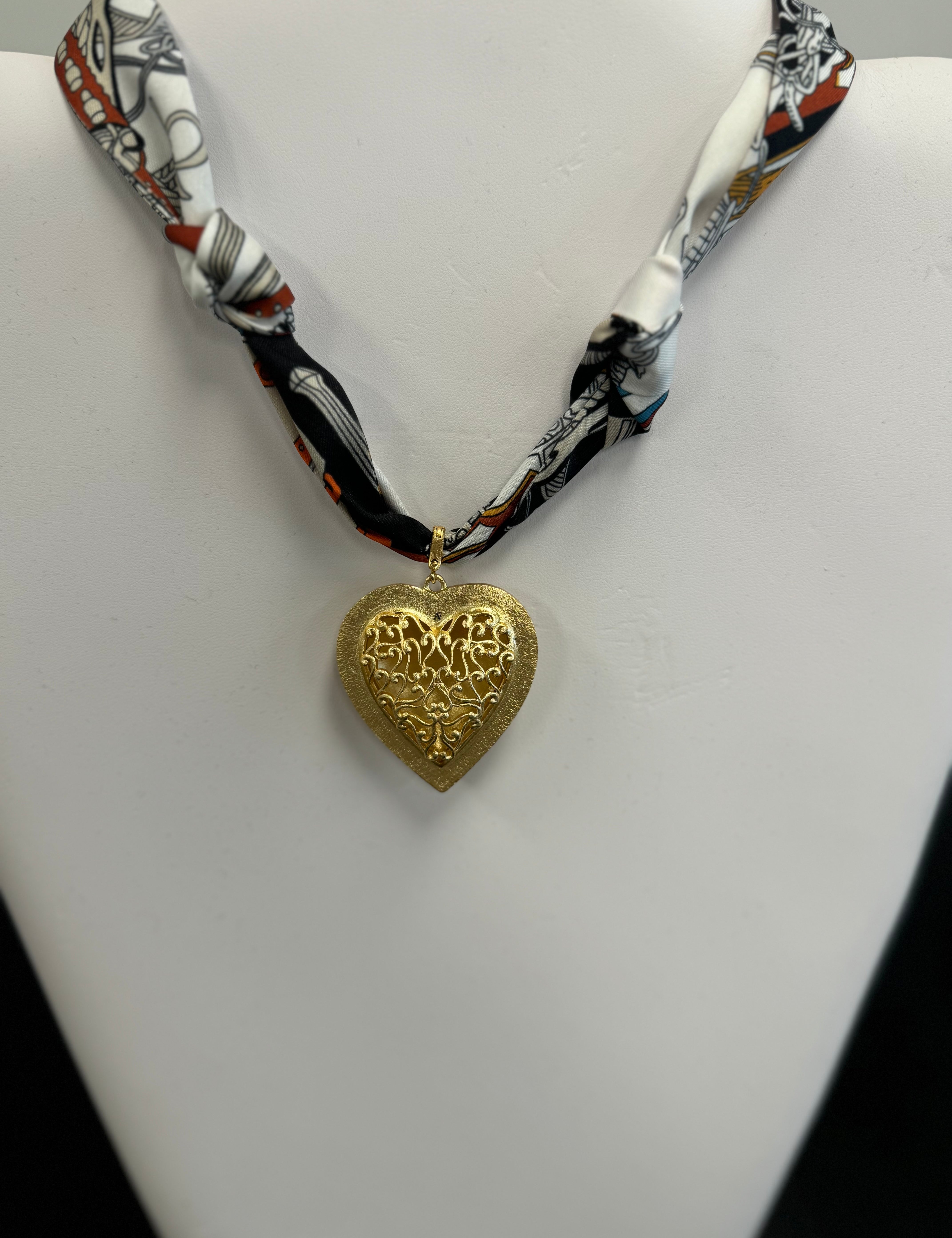 Scarf Necklace with Gold Bubble Heart Charm in Black and White