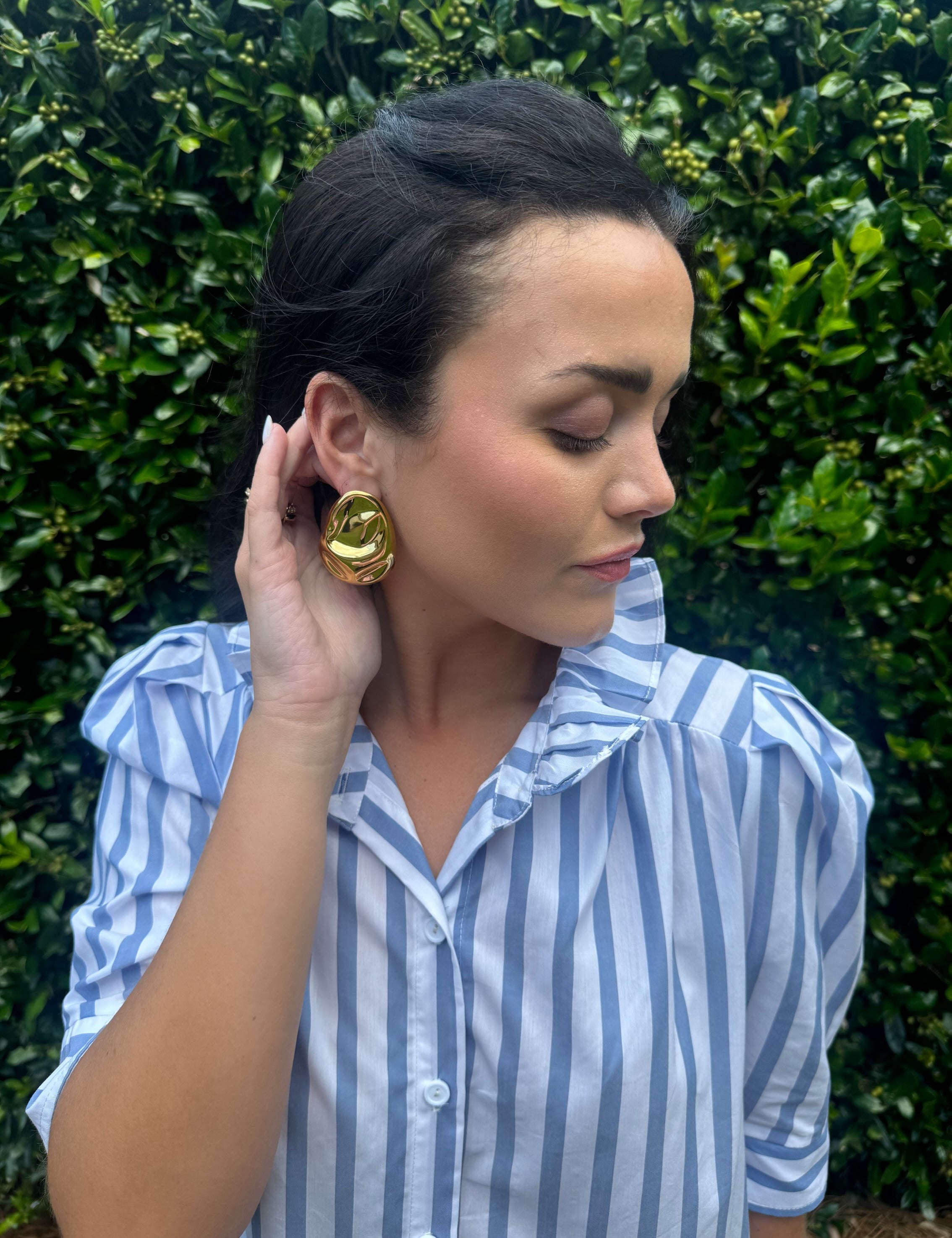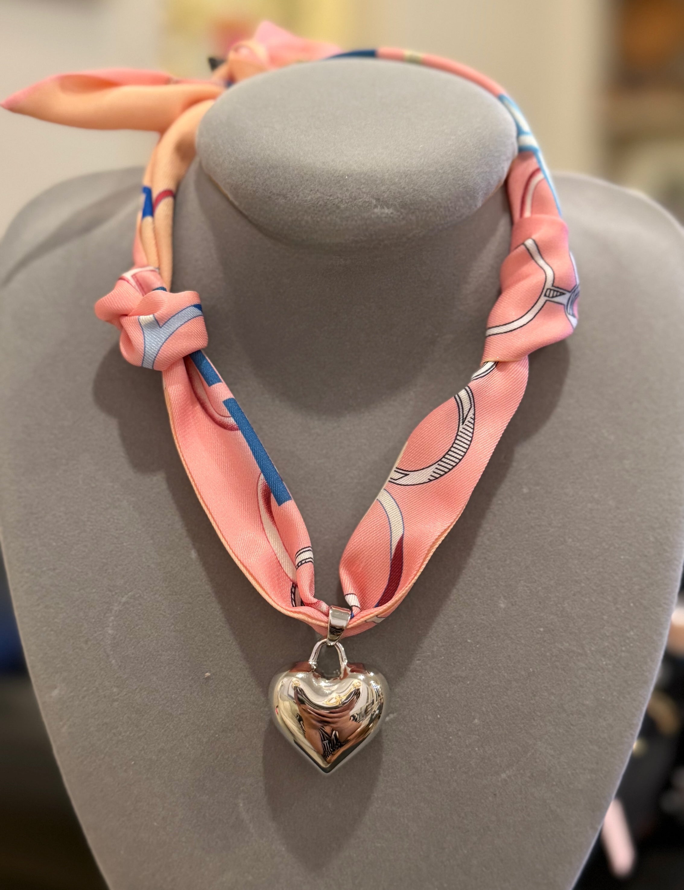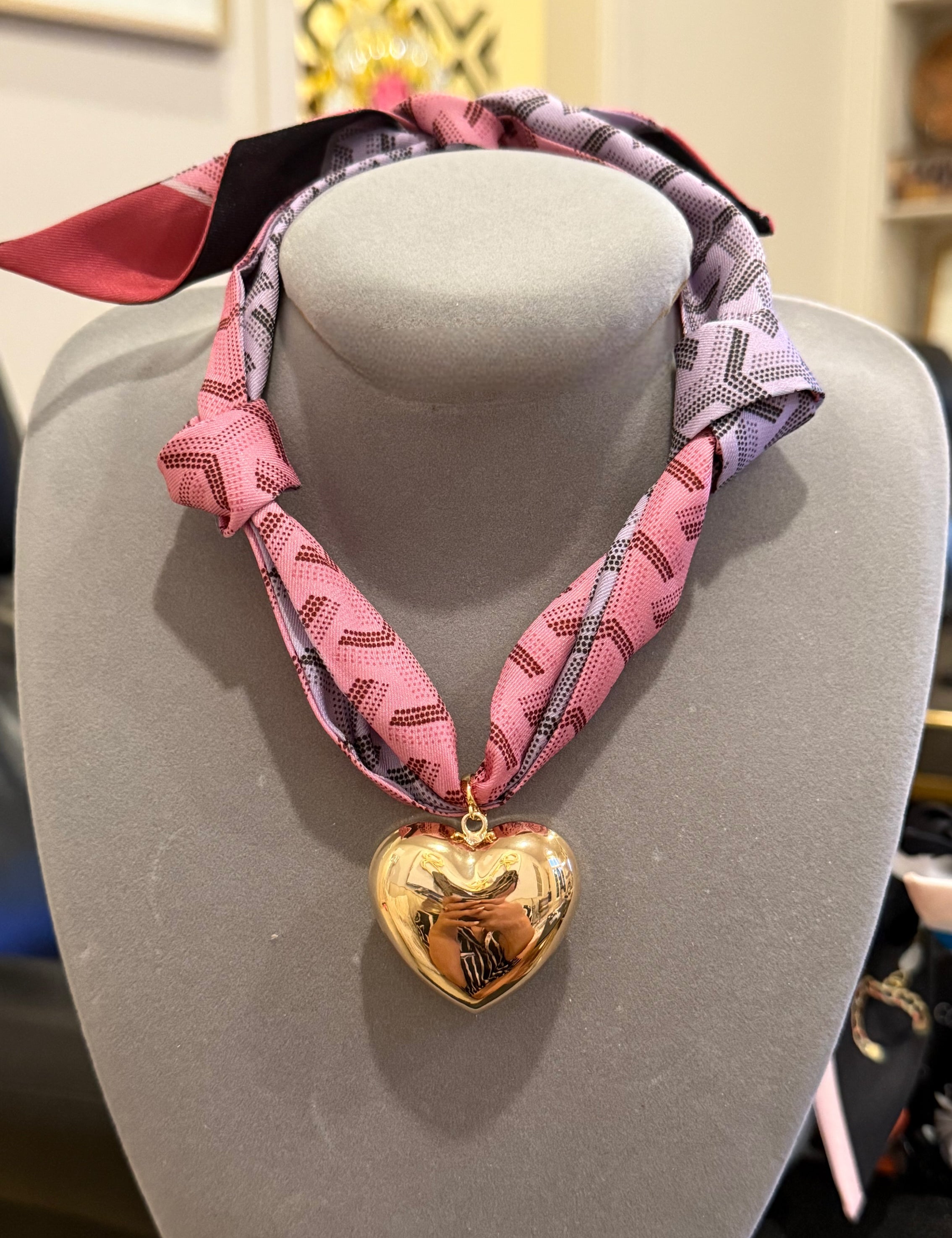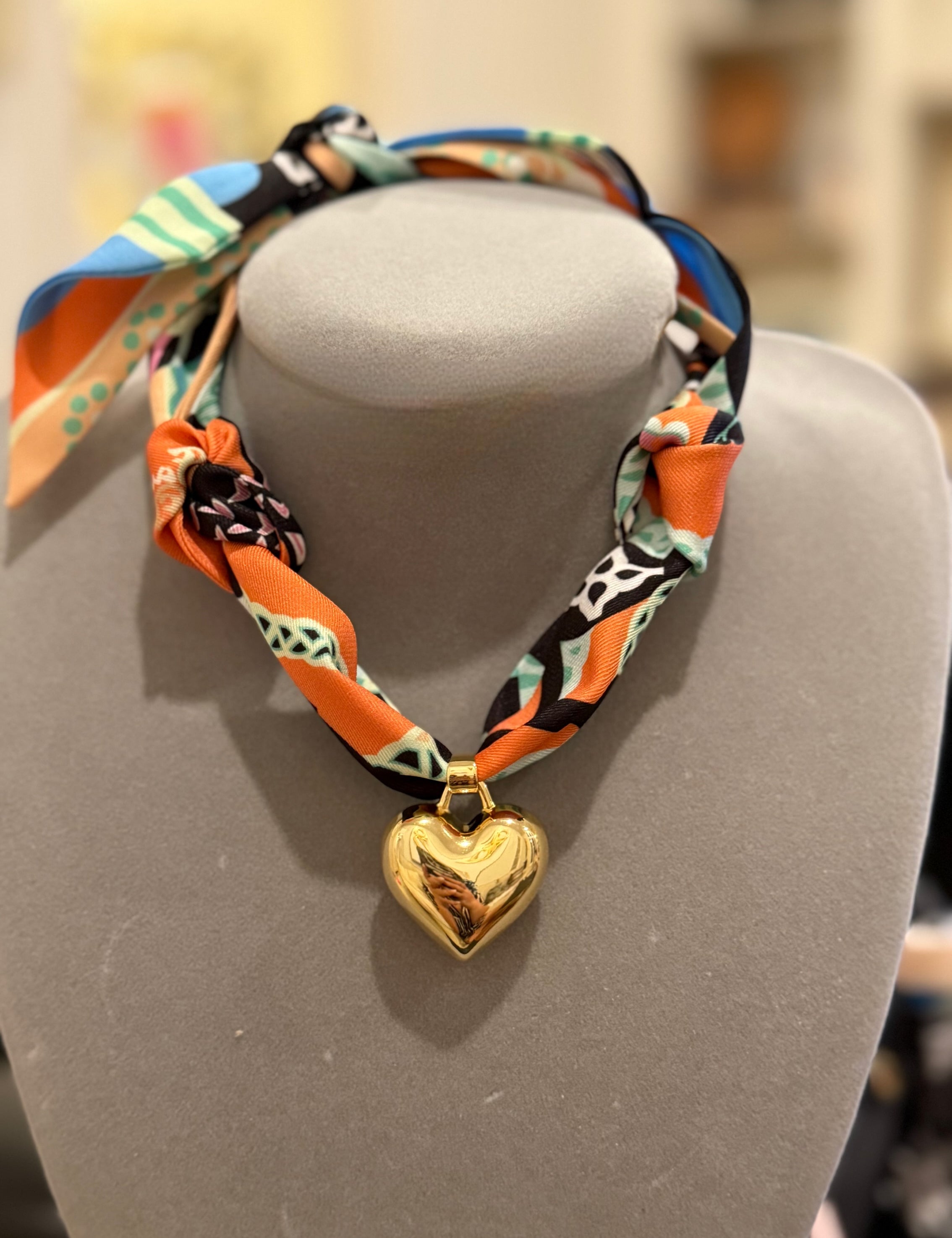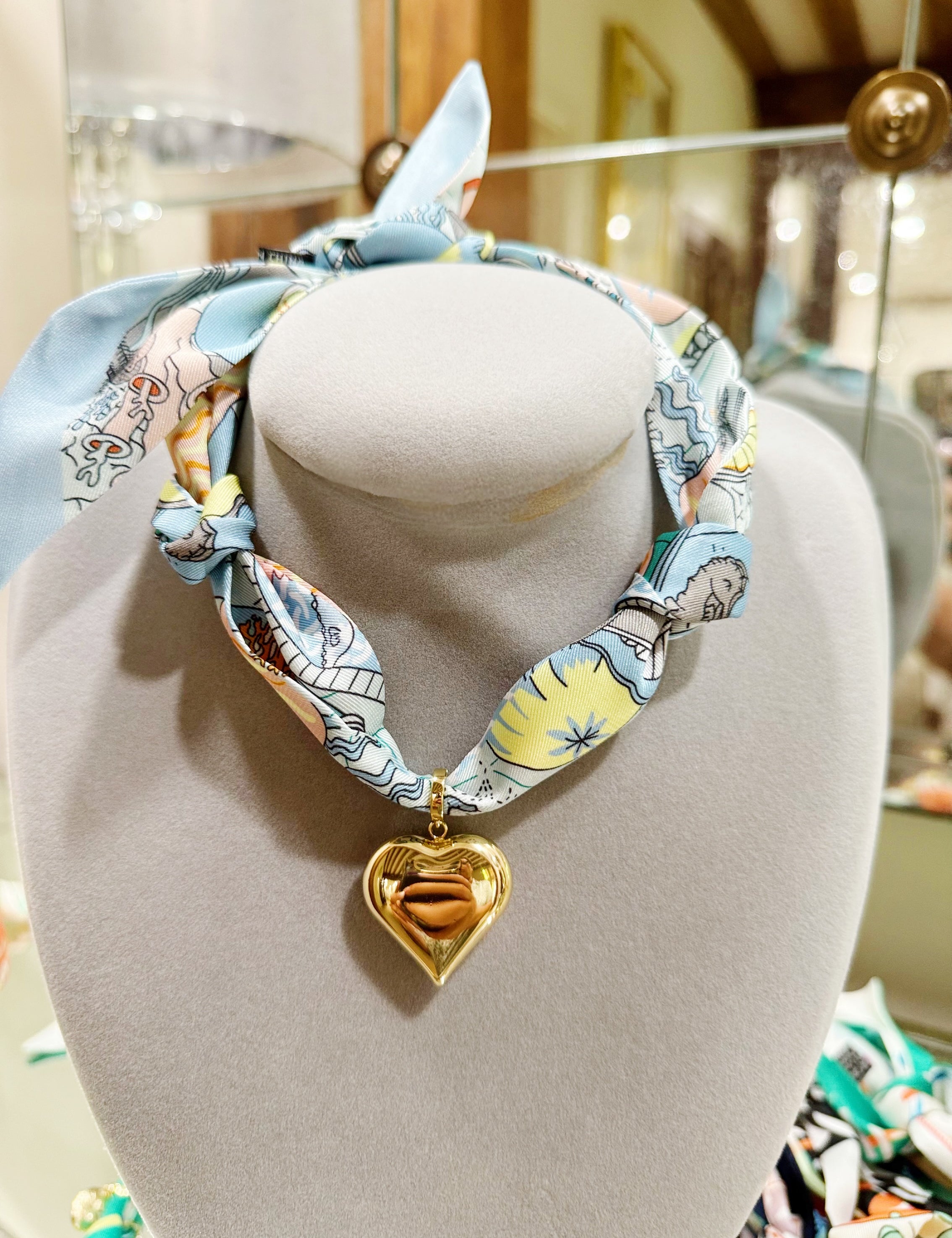 Scarf Necklace with Gold Bubble Heart Charm in Blue