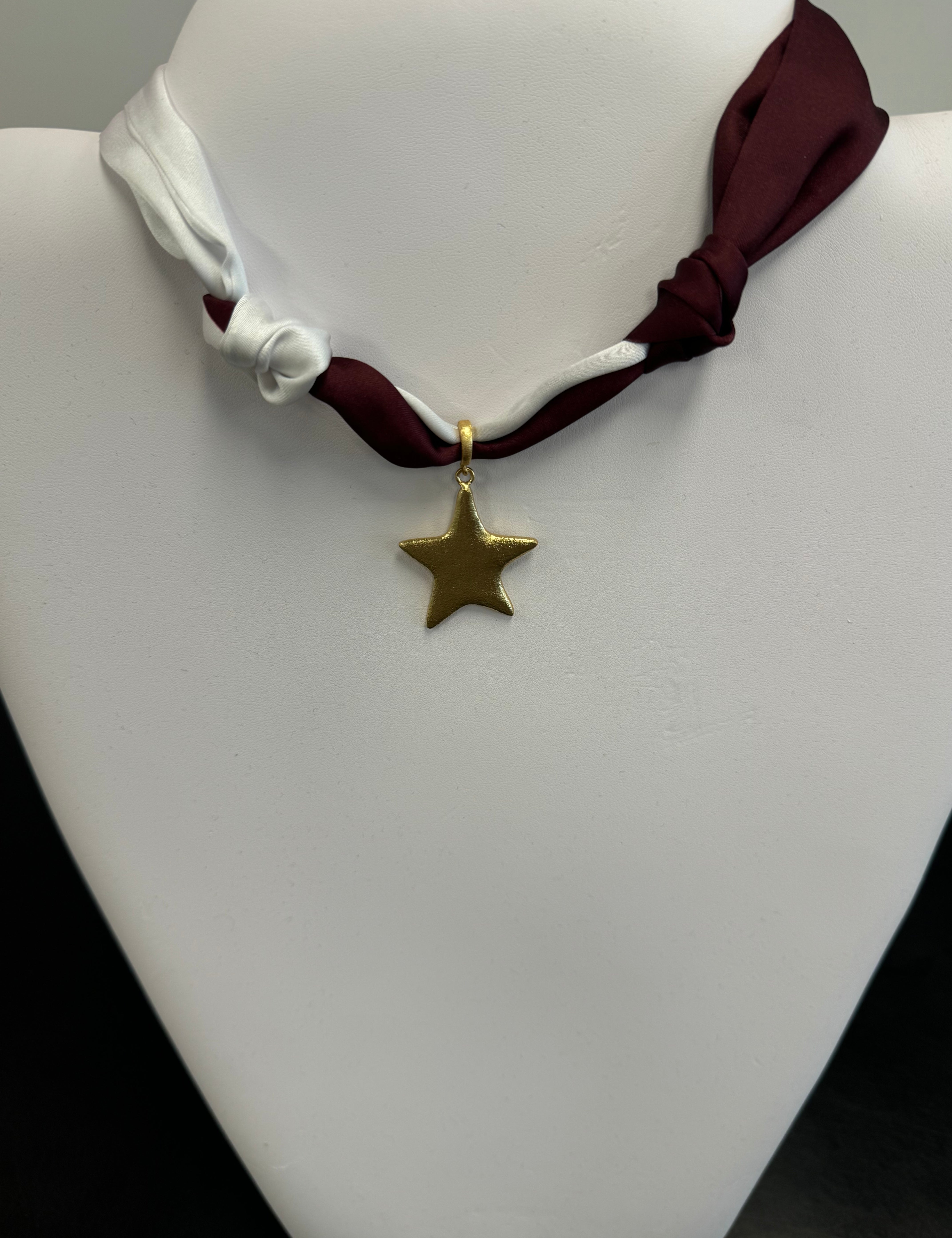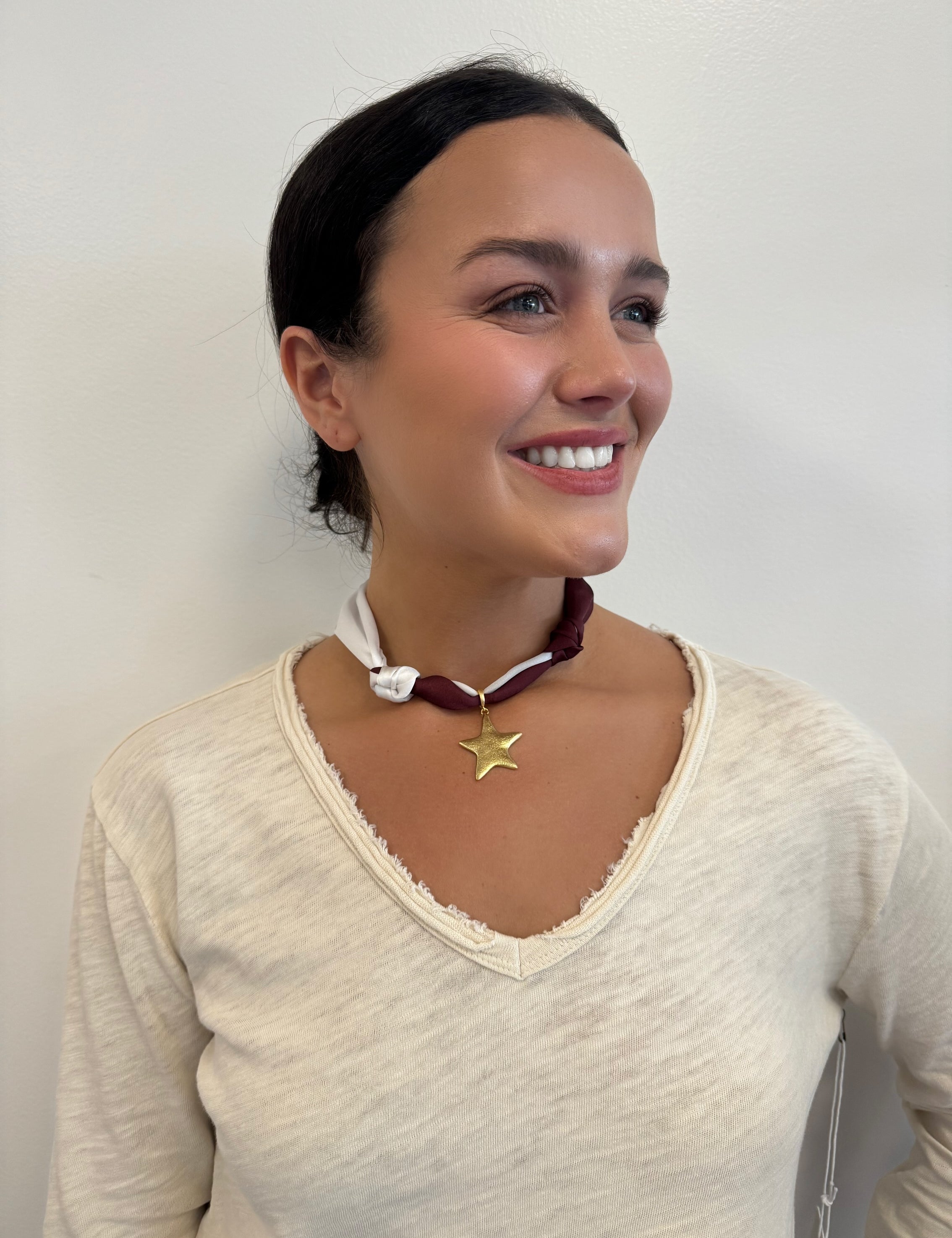 Scarf Necklace Pink Moon, Chunky Heart Pendant & White Star in Grey Blue