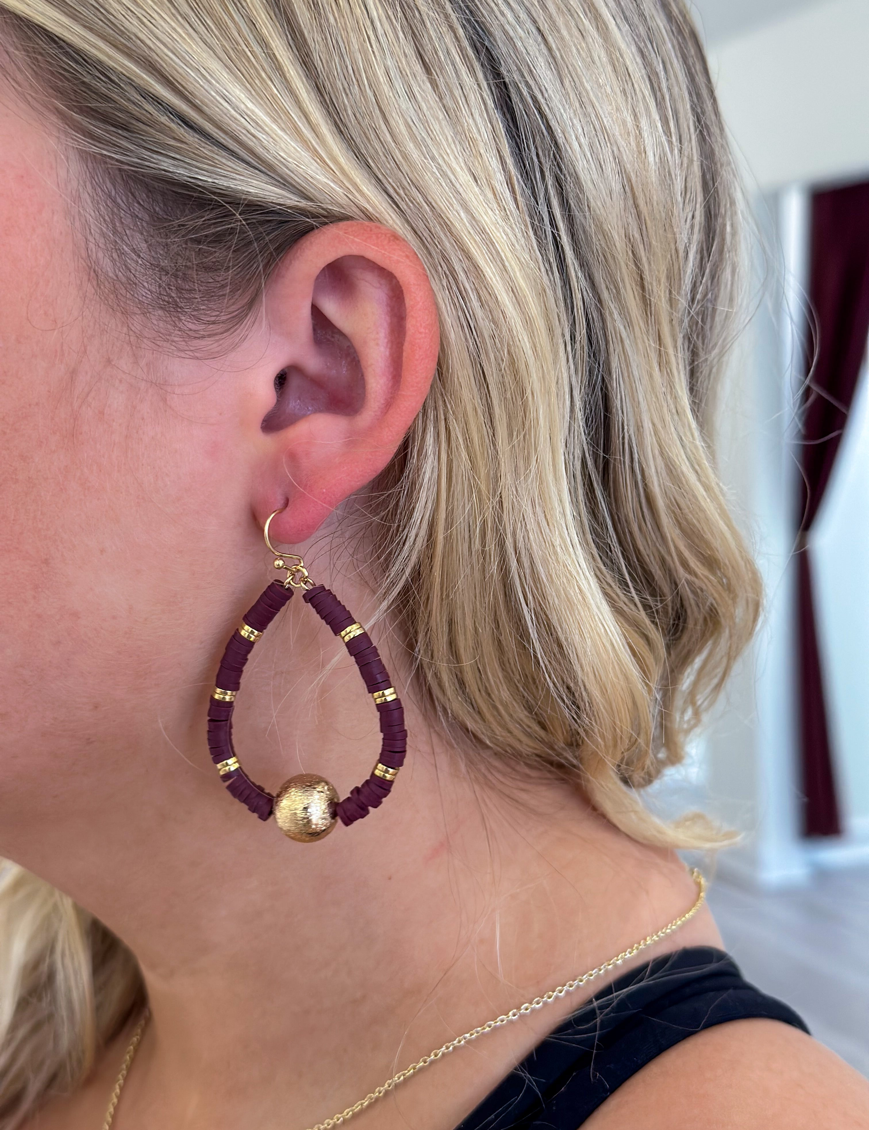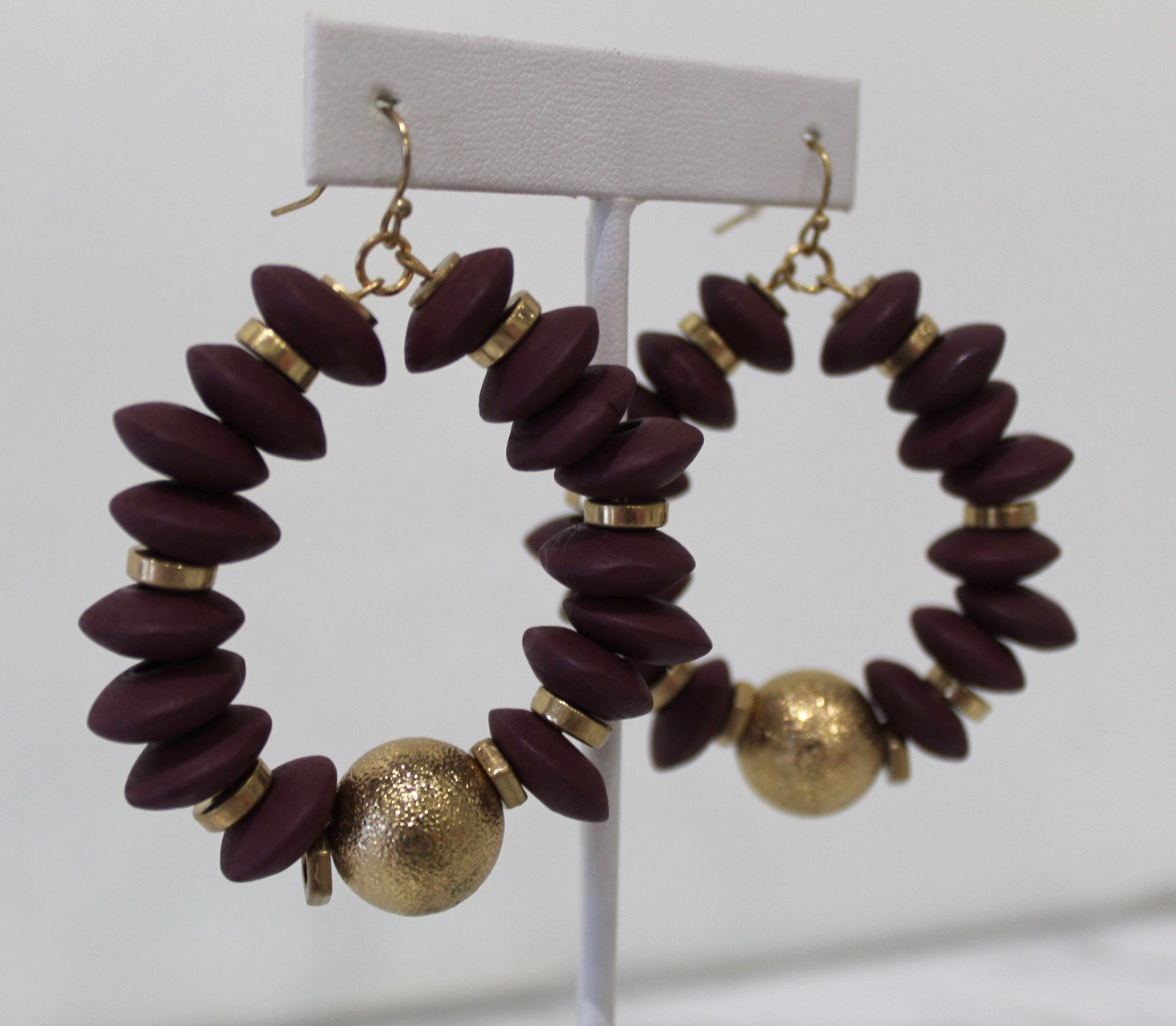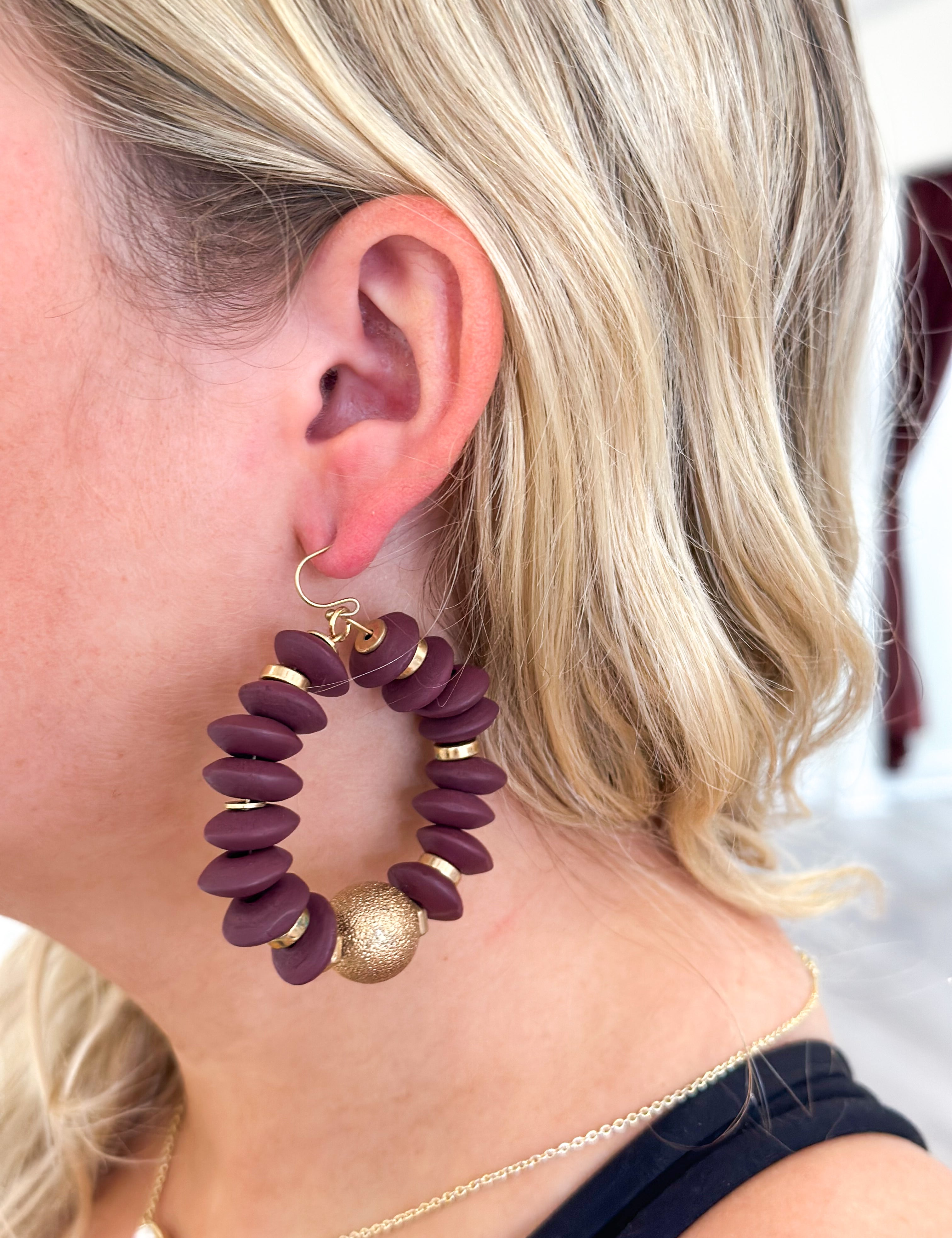 Textured Double Oval Earring in gold and maroon