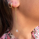 Rhinestone Tear Gem Thread Chain Duster Earrings