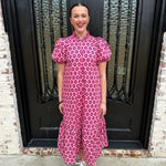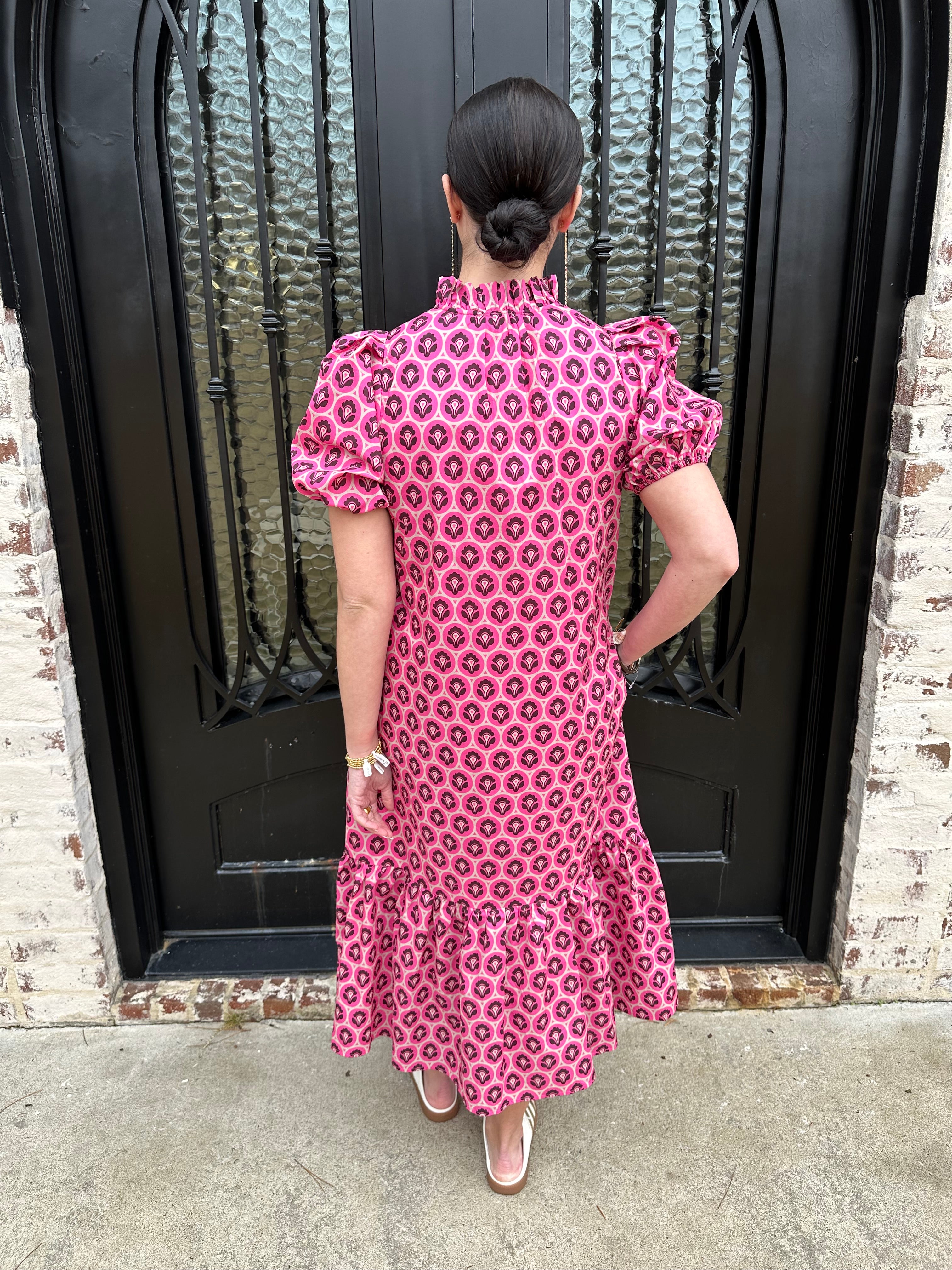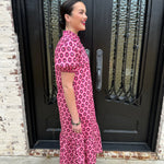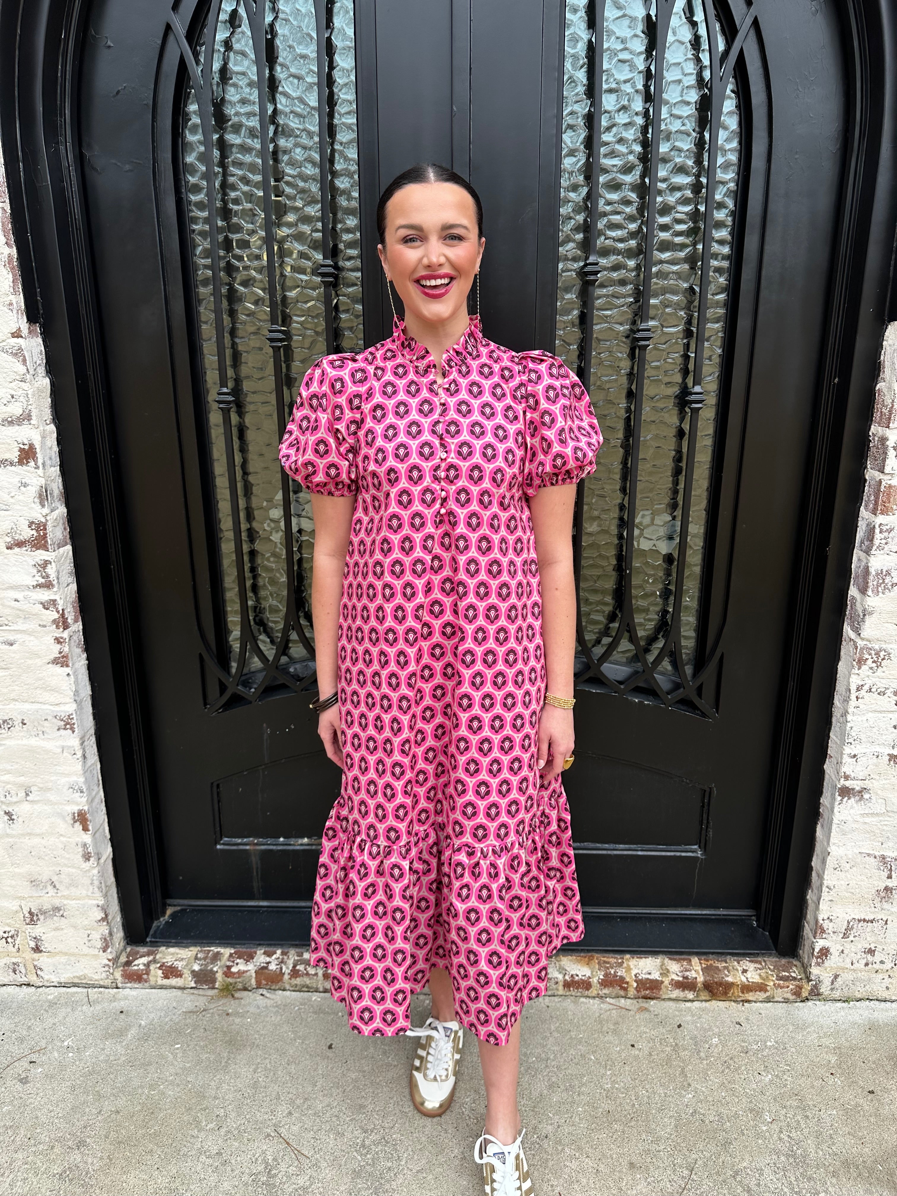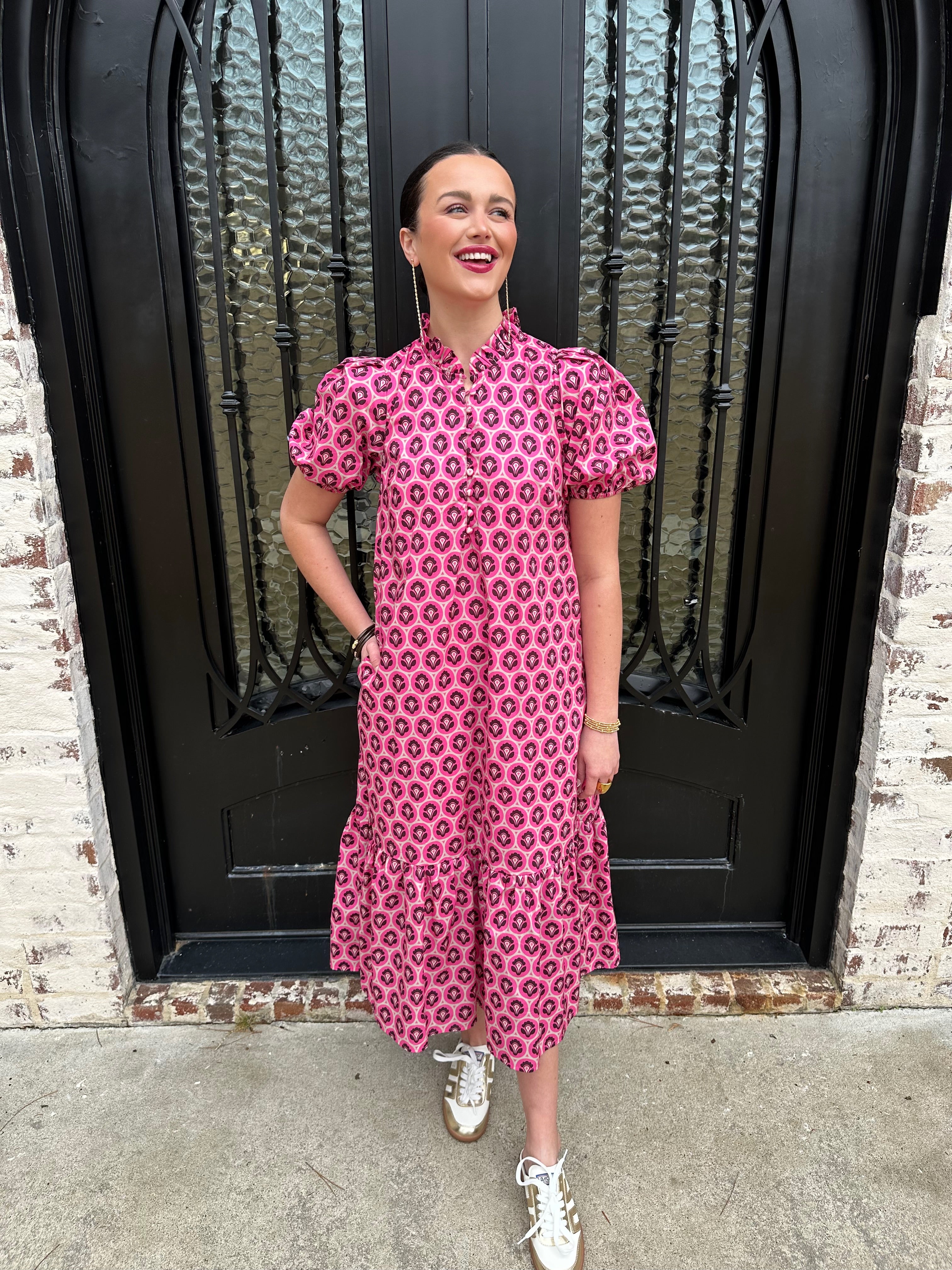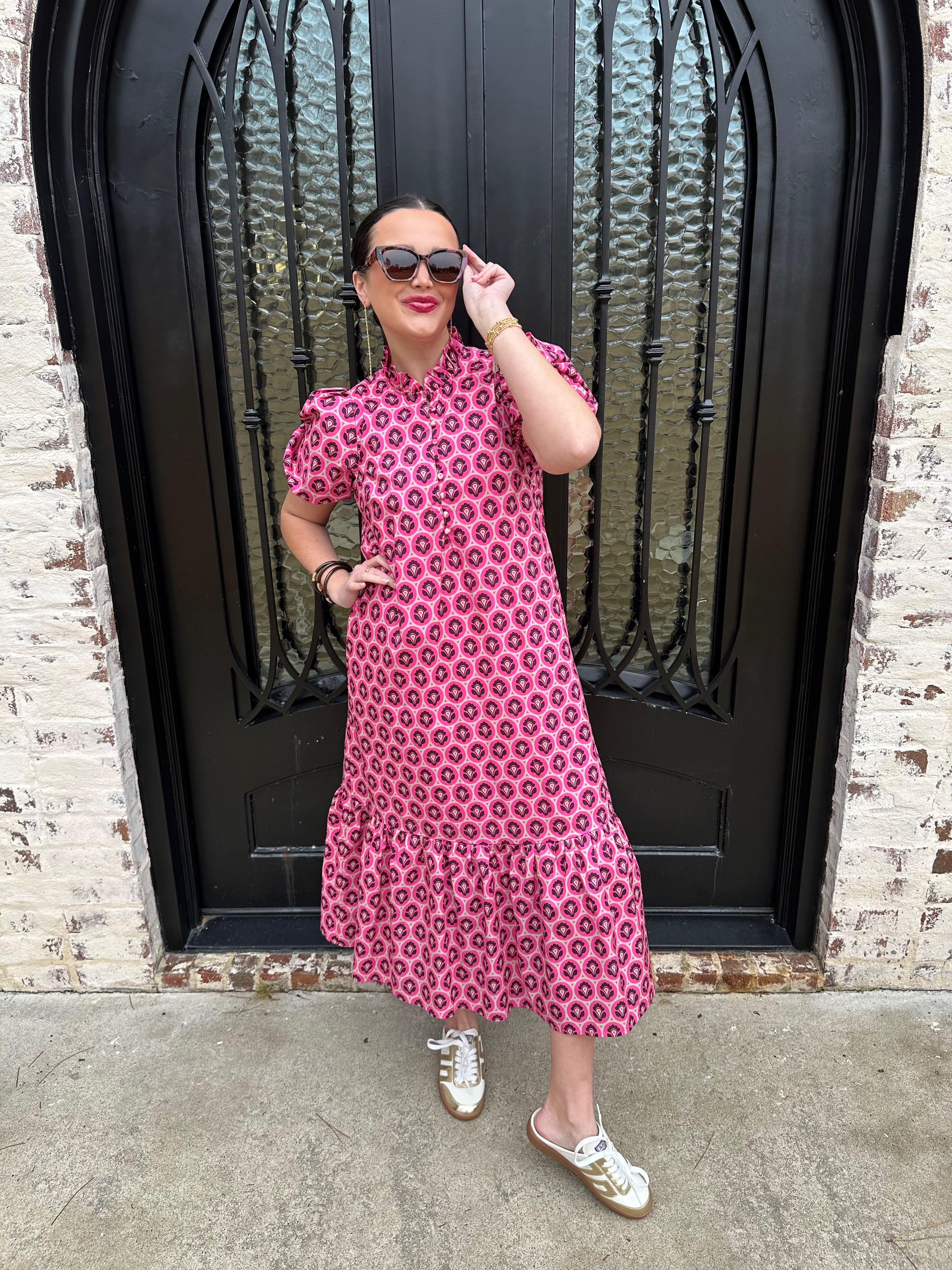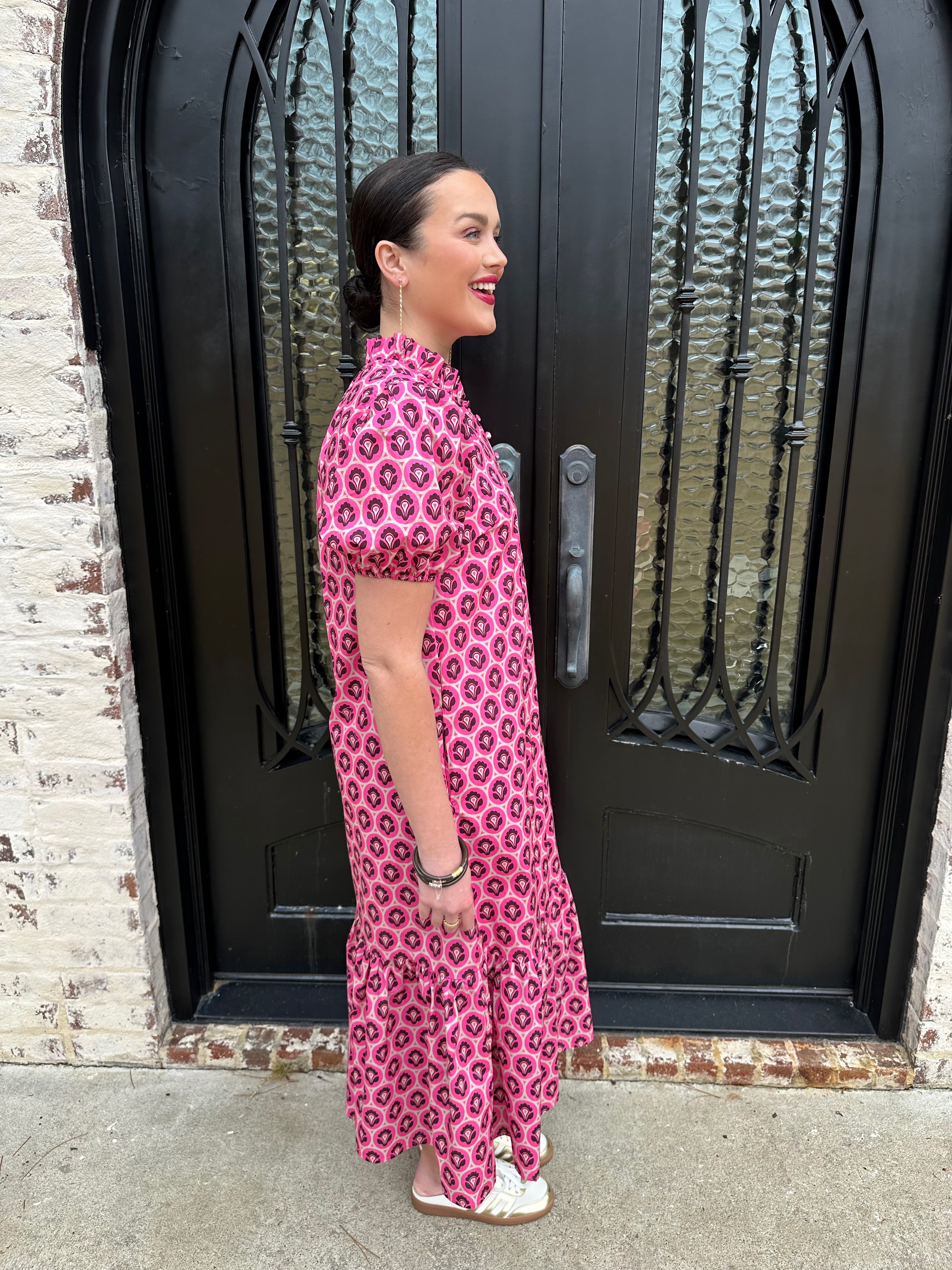 Celebrate vibrant style with the Bea Maxi Dress in Pink—a fun and chic essential for spring and summer adventures. The eye-catching geometric print in pink and chocolate creates a unique and fun aesthetic. This maxi dress transitions seamlessly from casual daytime outings to evening events, proving that playful design and refined elegance can coexist beautifully. Perfect for those who want to express their personality through fashion, this piece delivers comfort and confidence in every wear. Make a statement that's both bold and undeniably wearable.