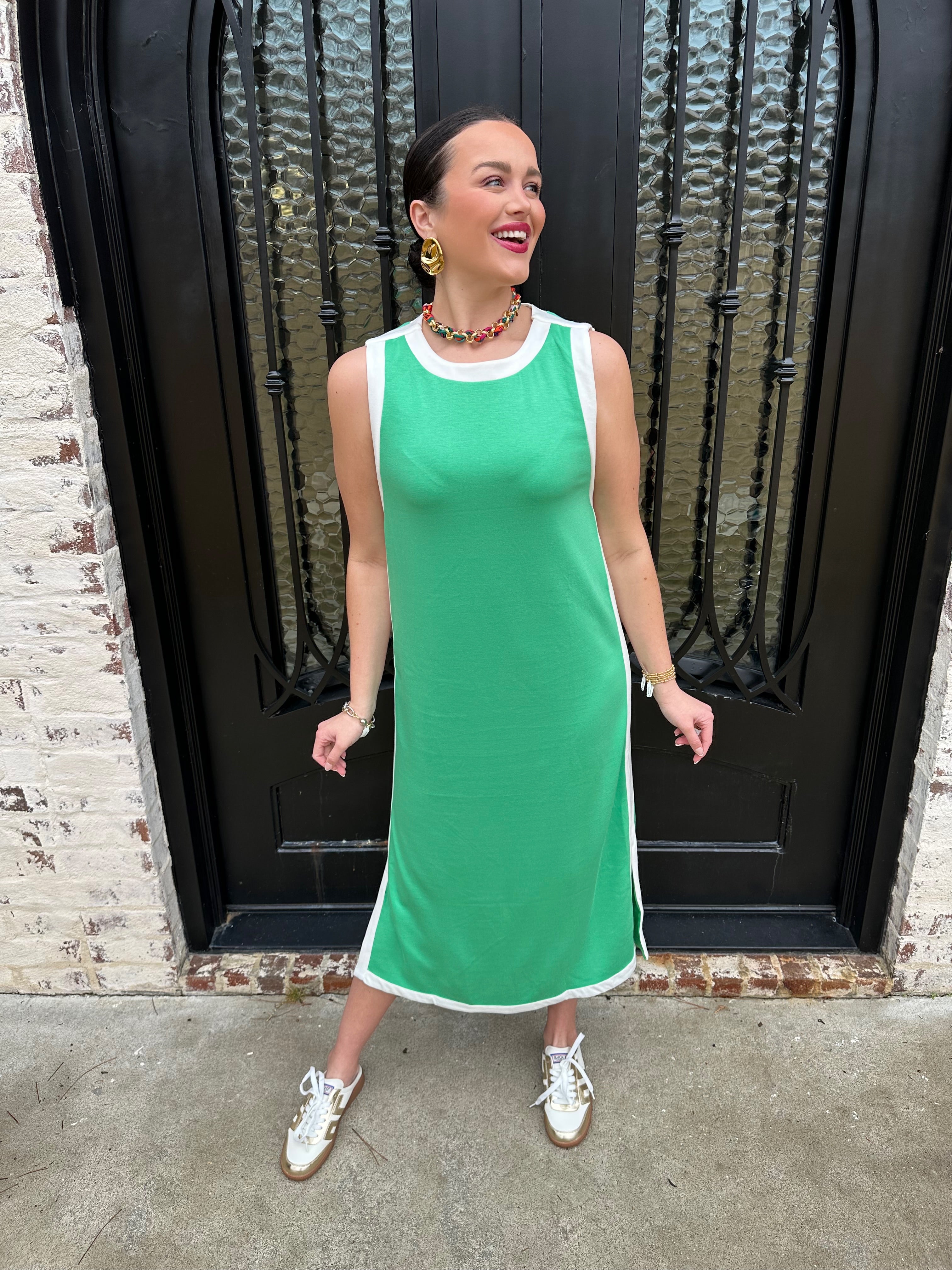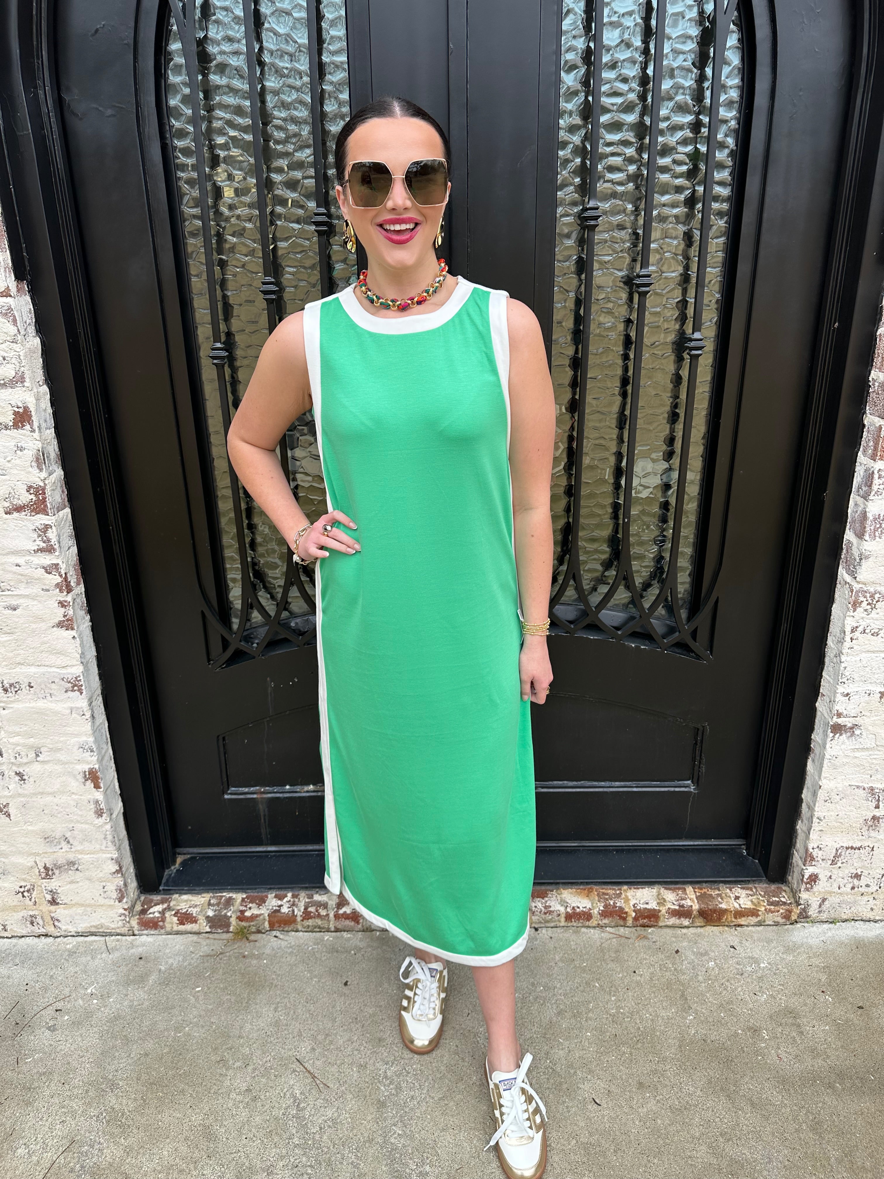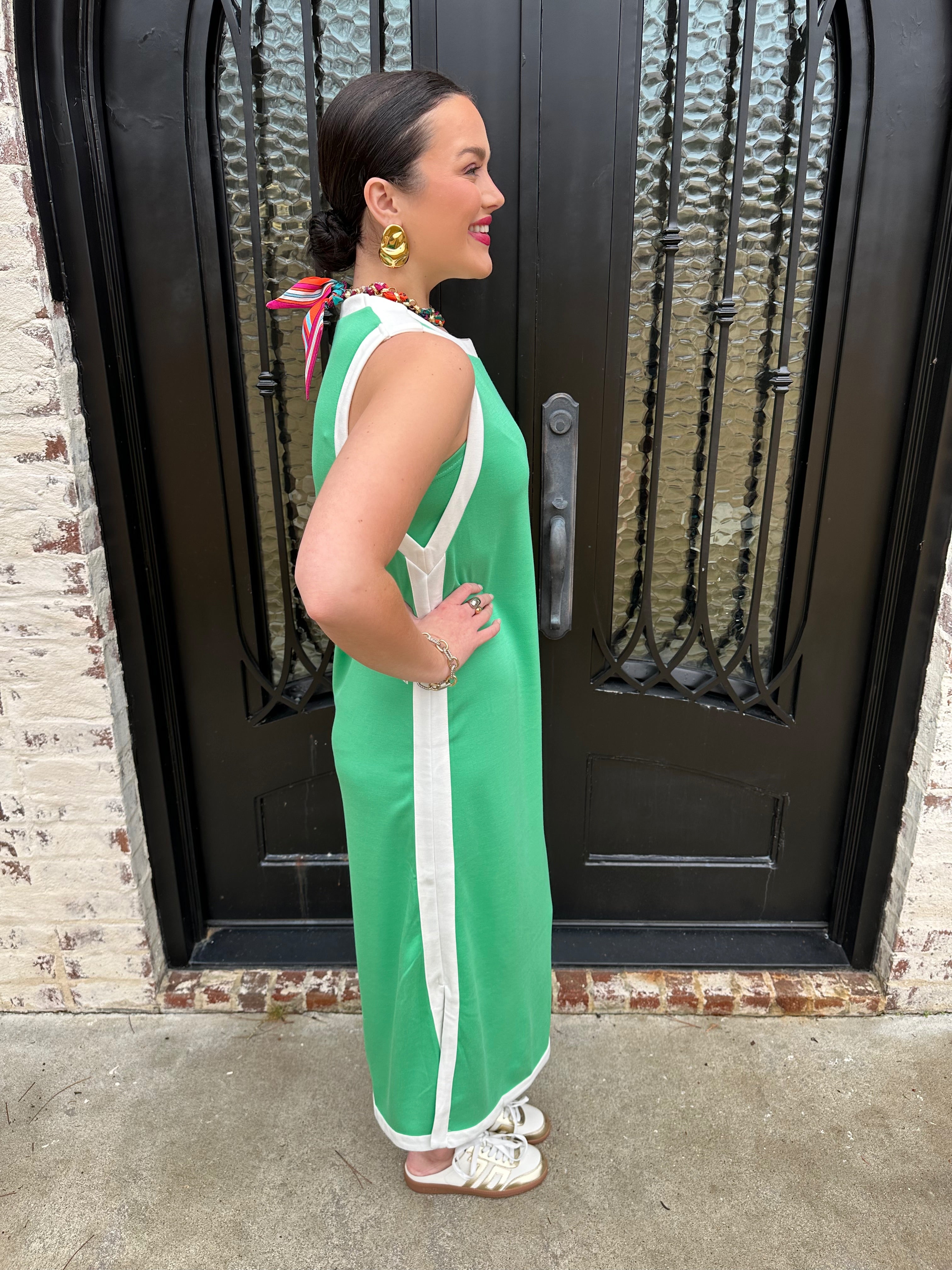 She's Backkkk!! Meet the Two Tone Natalia Maxi Dress in Green—the bestselling piece that does it all. Seamlessly bridges casual comfort and sophisticated elegance, making it your go-to for any occasion. Style it solo on sunny/relaxed days, then elevate with our faux bomber for autumn warmth or a structured long coat as temperatures drop. This versatile maxi works across every season, becoming the foundation of a wardrobe that adapts to your lifestyle. One dress, endless possibilities.