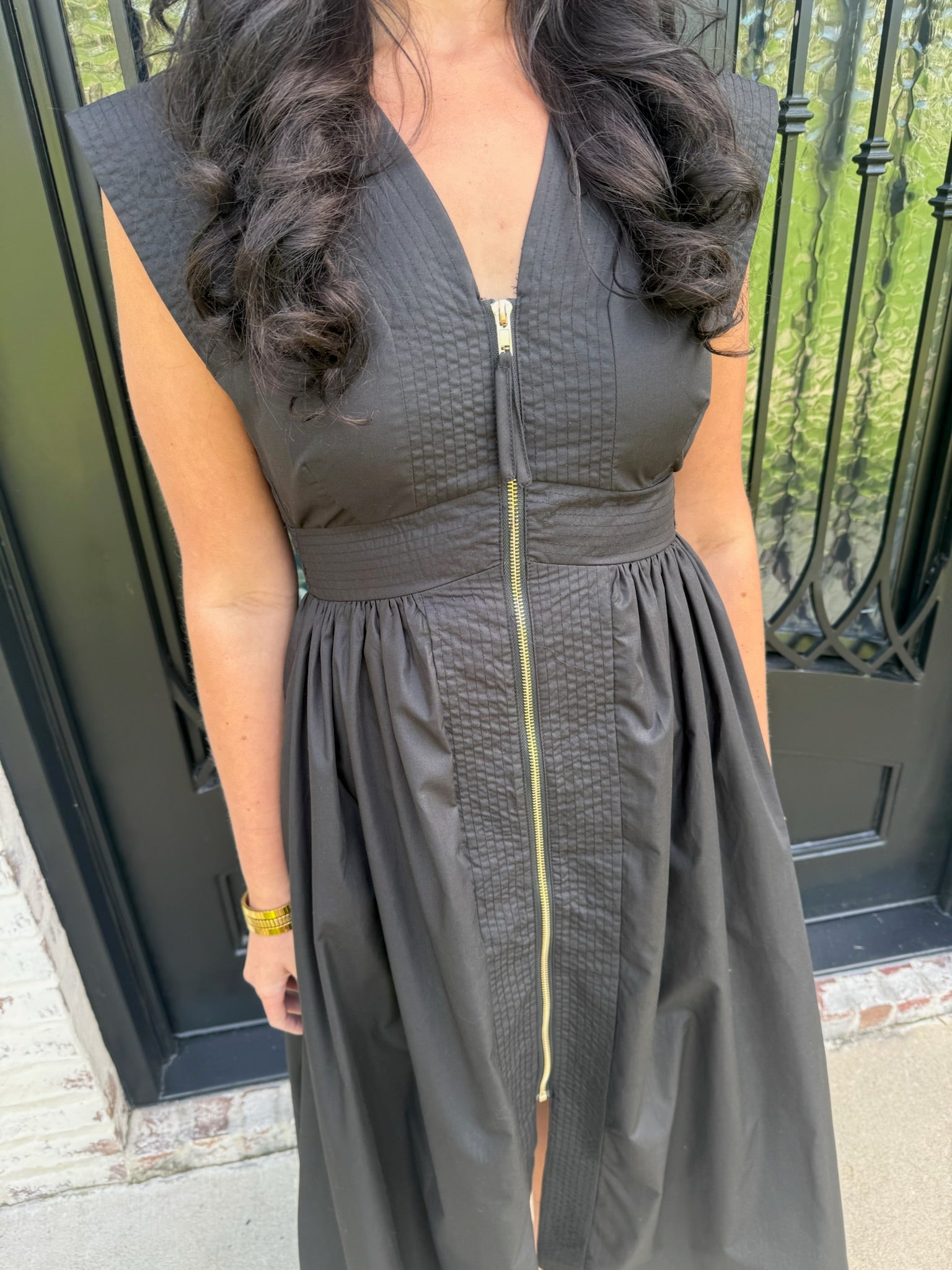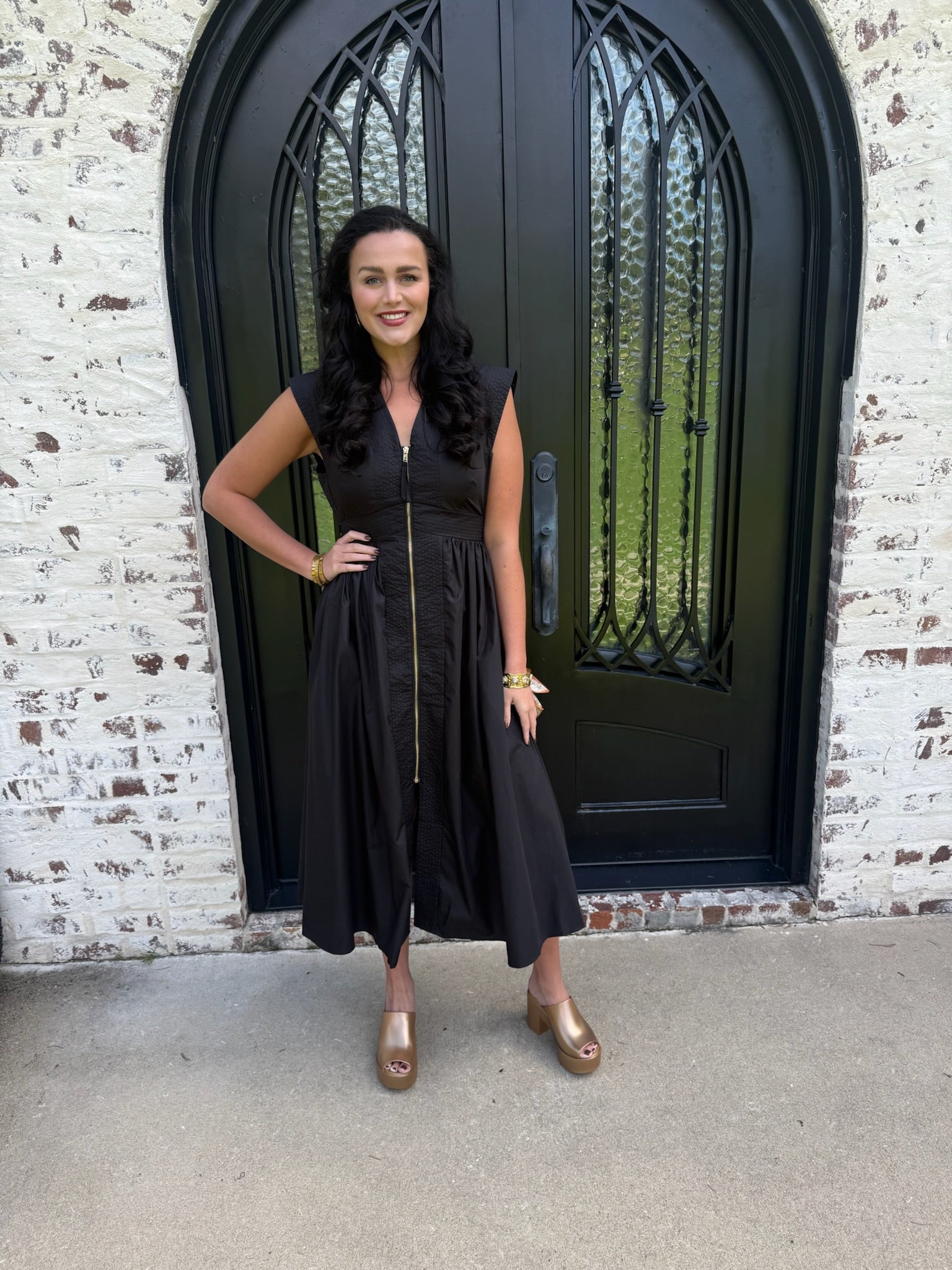 Elevate your wardrobe with the Gynn Zip Up Midi in Black. This sleek and versatile dress features a secure zip-up front for easy wear and a flattering midi length that suits any occasion. Its minimalist design ensures effortless styling, making it an essential piece for both day and night looks. Embrace comfort and confidence in a dress that combines practicality with timeless elegance.