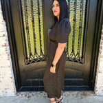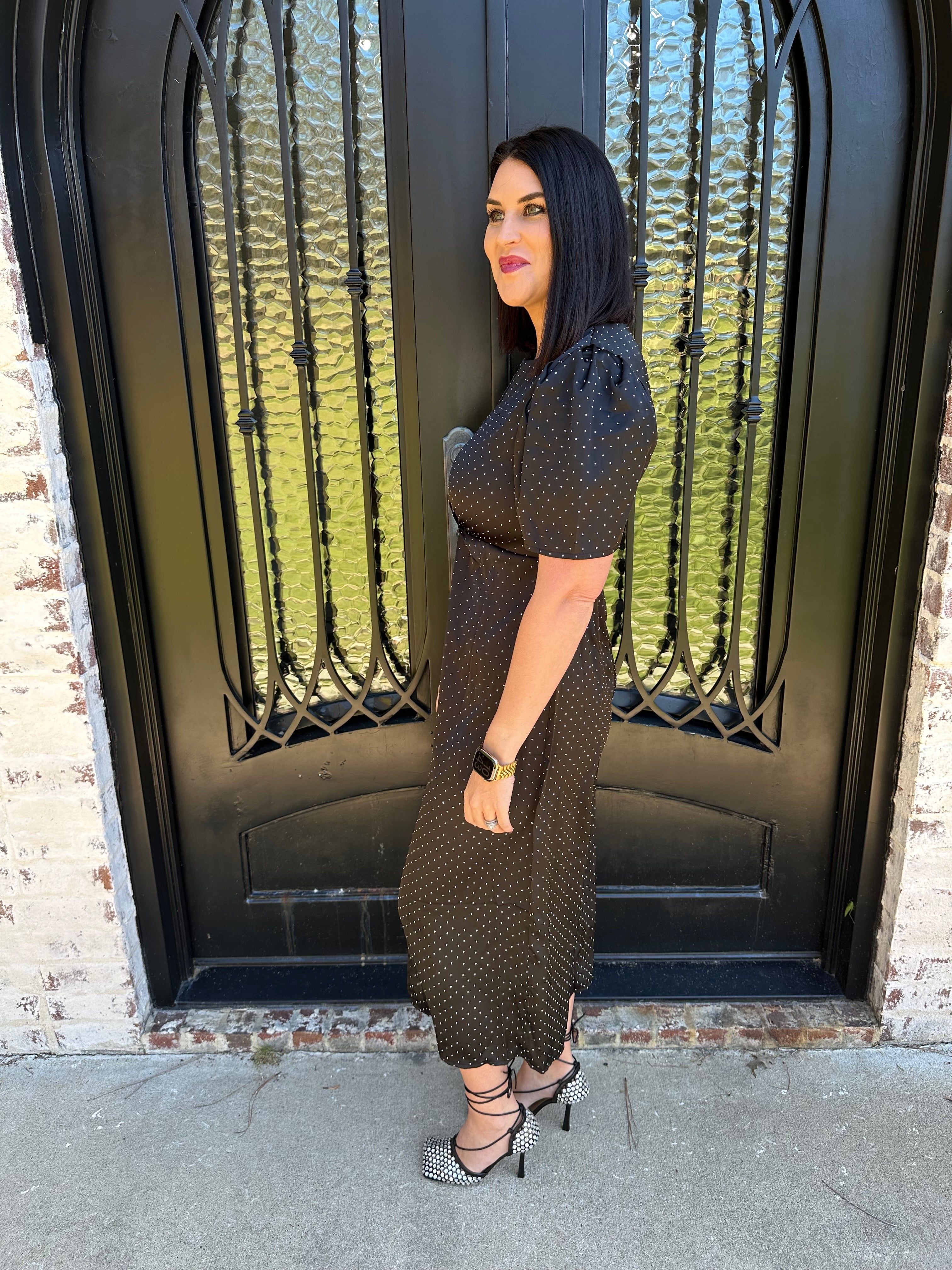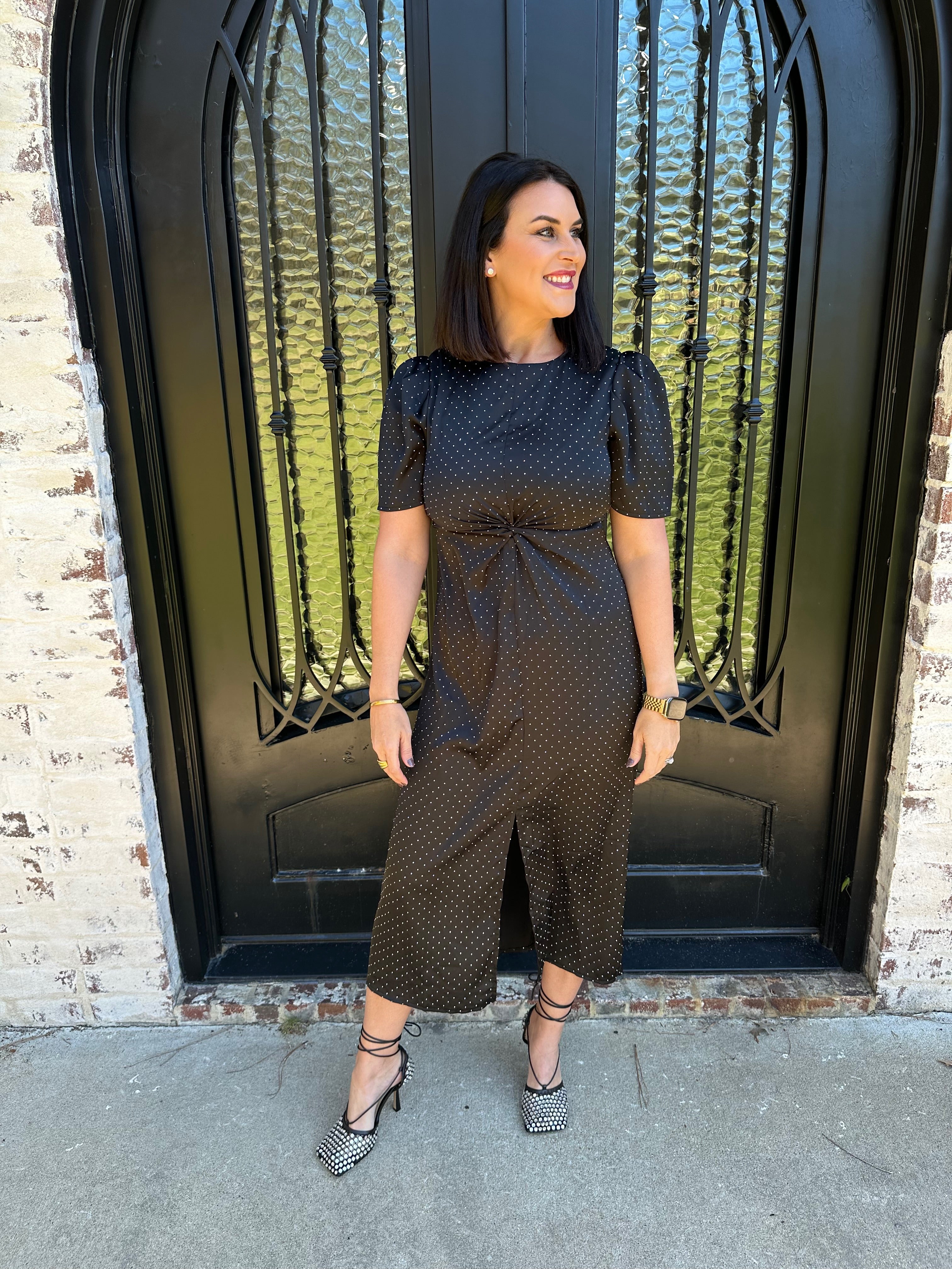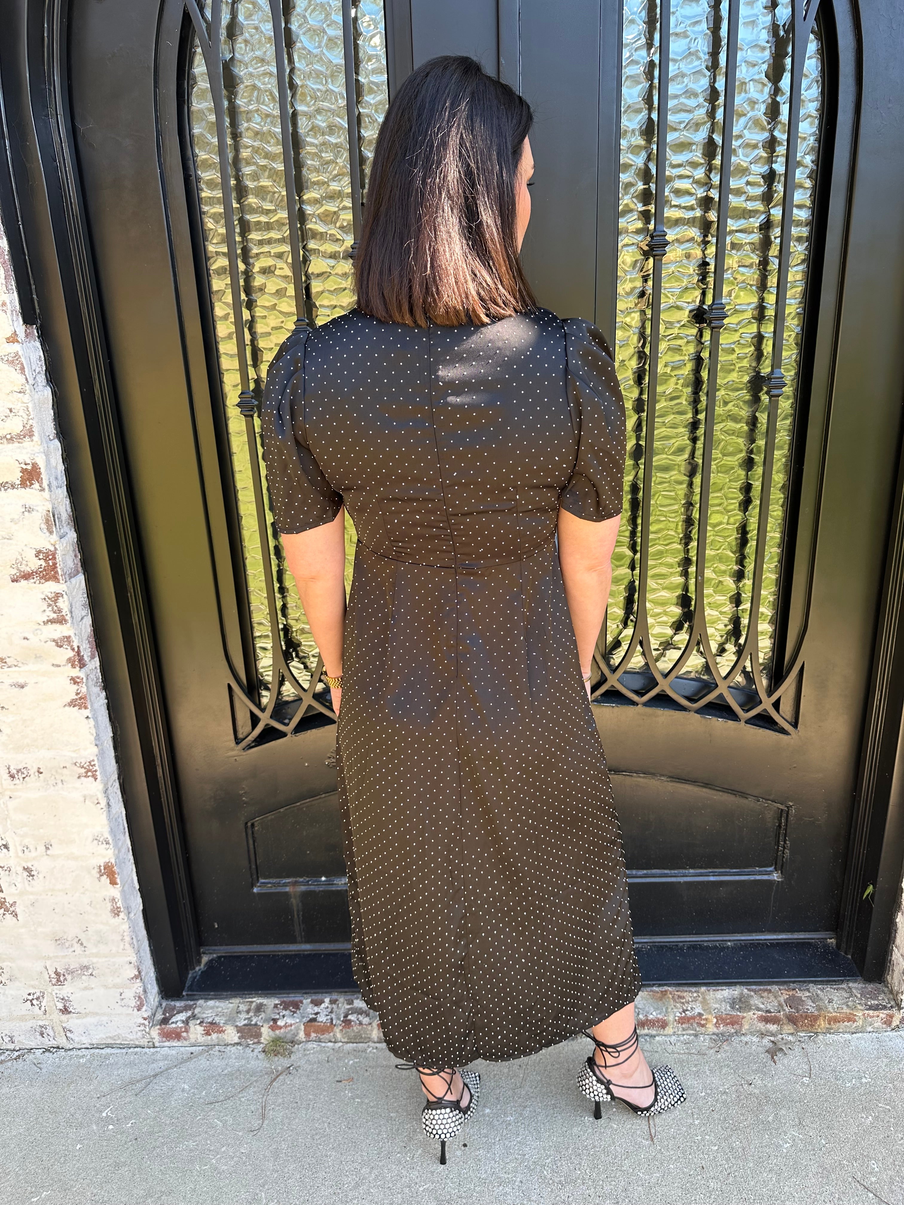 Make a statement in the Tania Rhinestone Stud Midi Dress in Black—a show-stopping choice for your most important moments. The strategically ruched front creates a flattering silhouette while intricate rhinestone studs add luxe sparkle that commands attention. Designed for weddings, formal galas, and romantic evenings out, this midi dress delivers sophisticated elegance with undeniable glamour. The timeless black hue pairs effortlessly with any accessories, while the embellished details ensure you're the most memorable guest in the room.