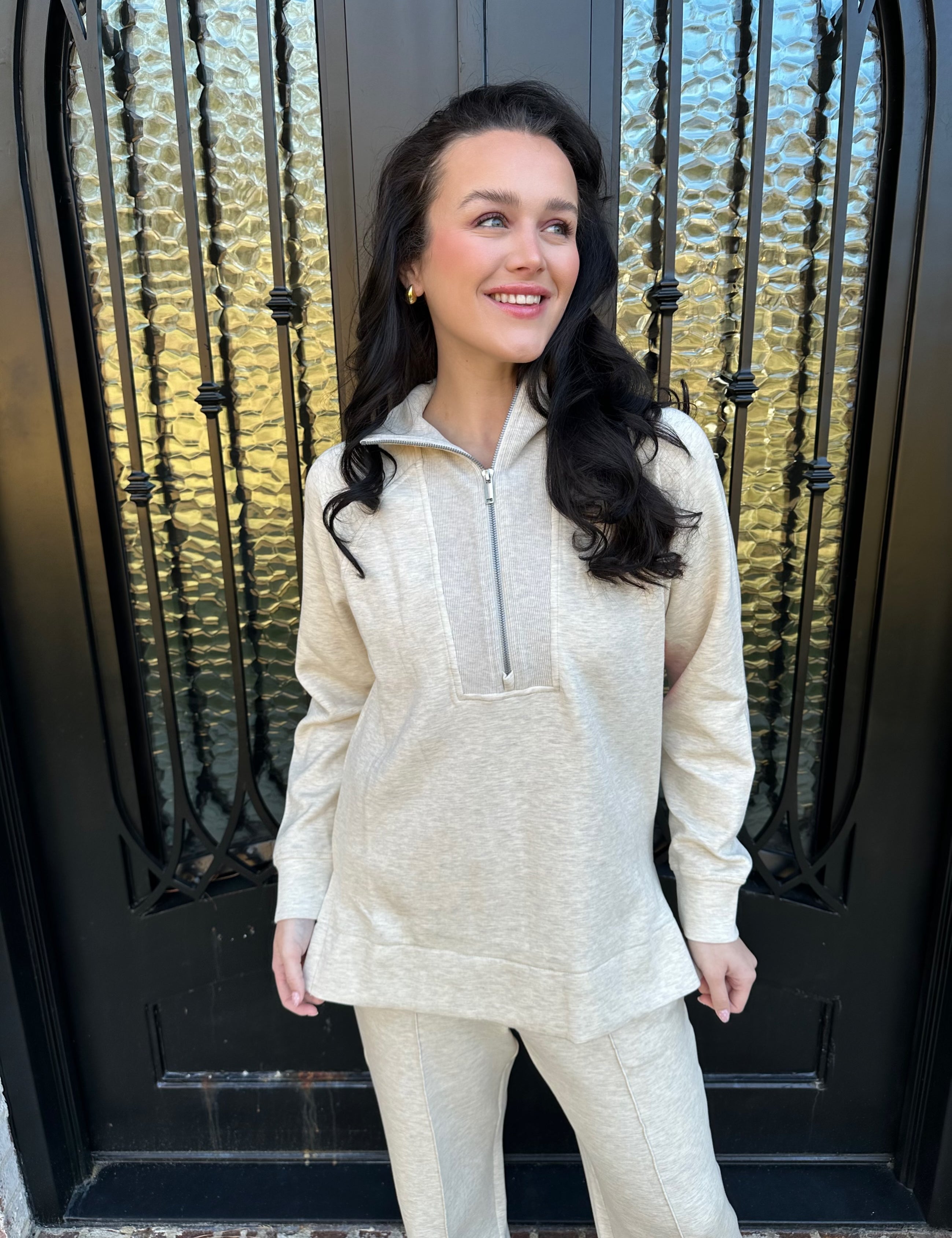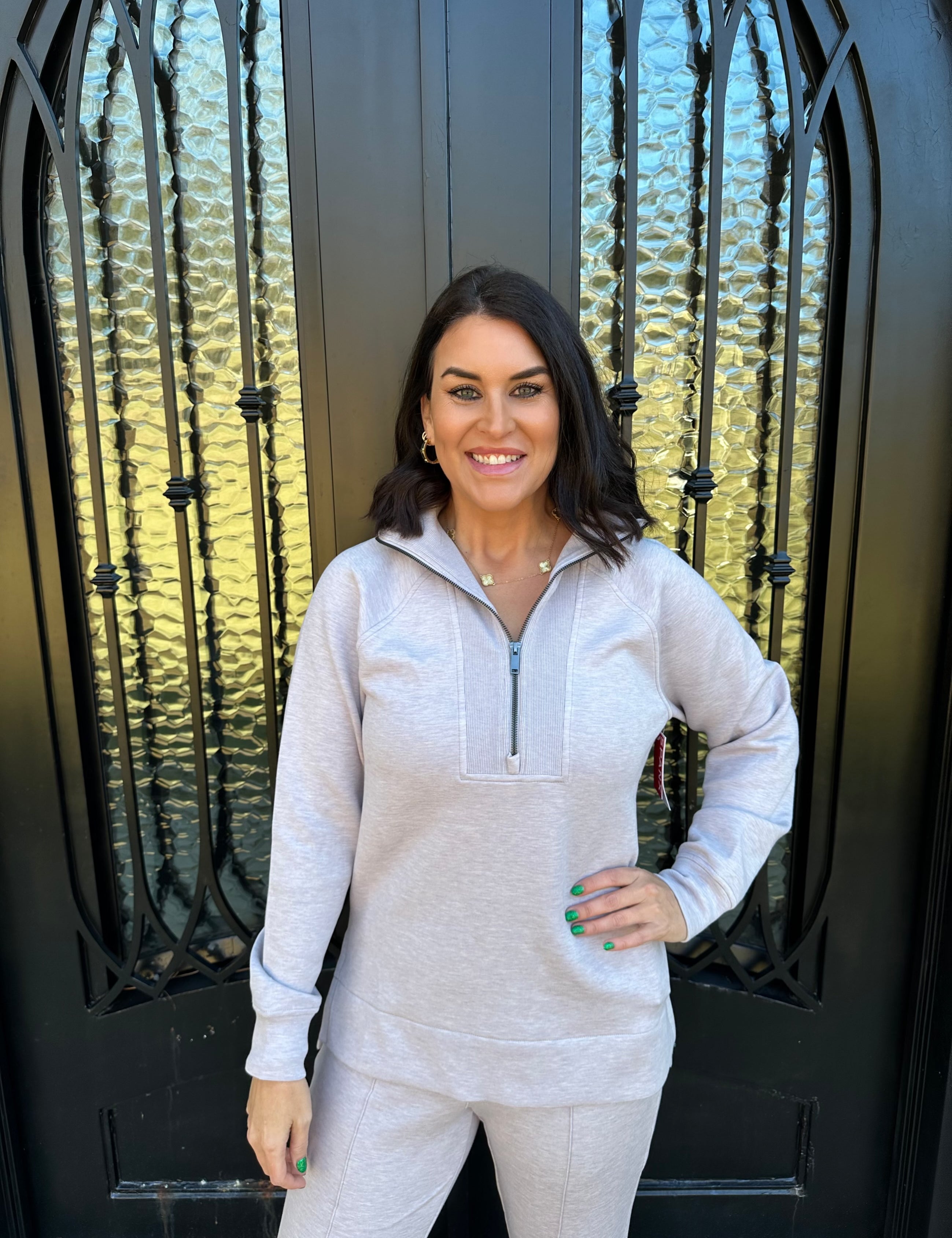 Spanx AirEssentials Brushed Half Zip in Heather Cream