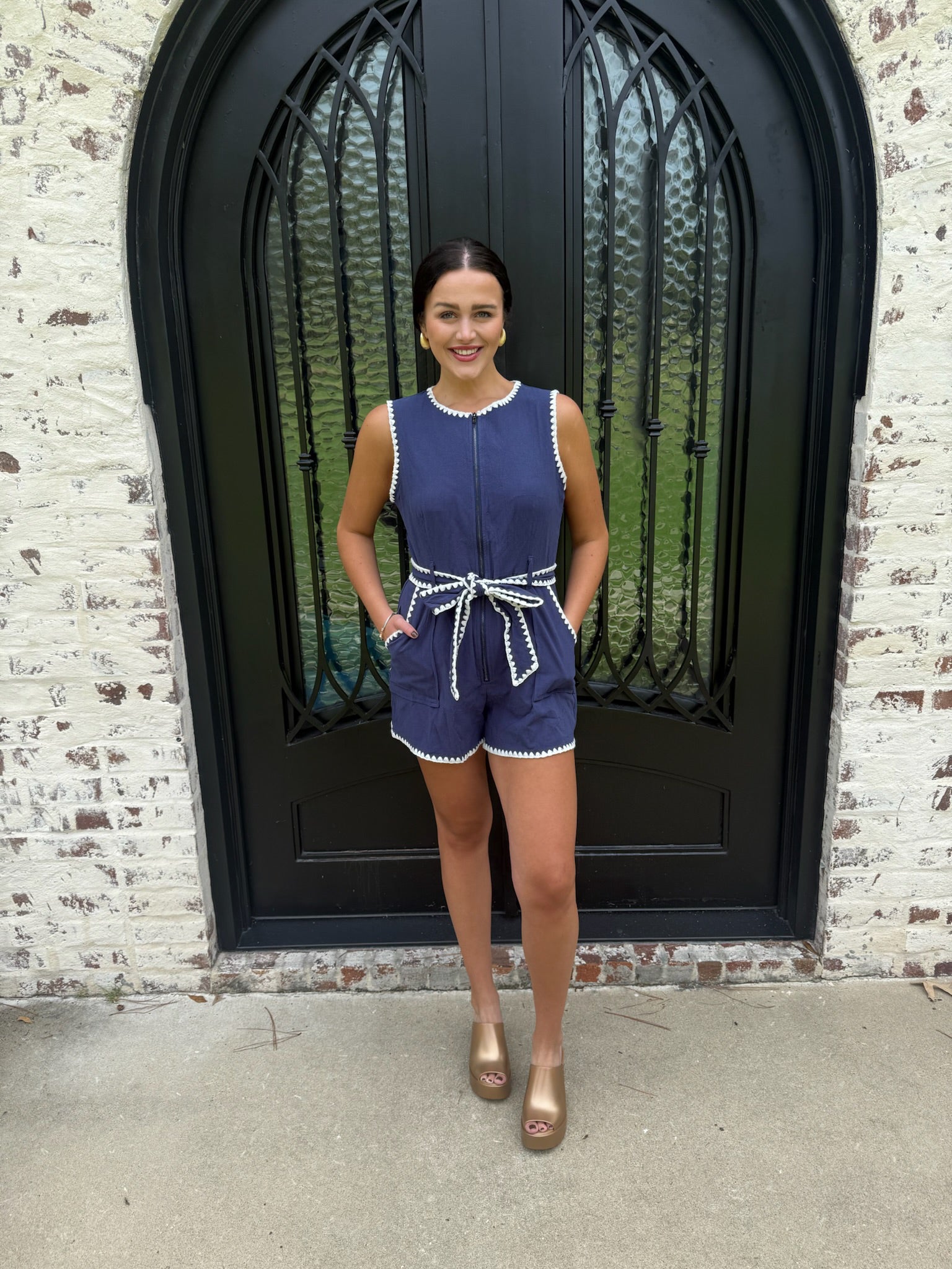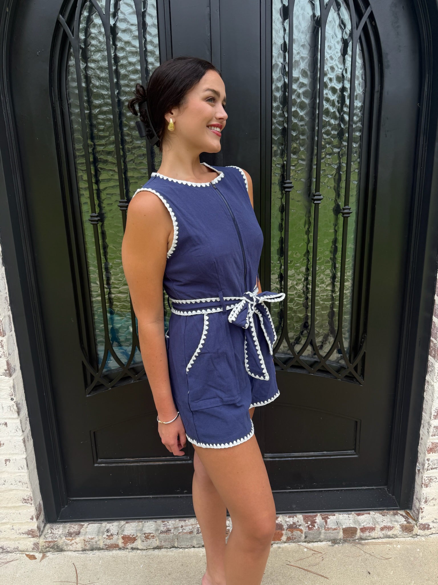 Stand out on game day with the Avalon Romper in Navy. Its rich color captures the excitement of the season, while the comfortable, flattering fit keeps you stylish from kickoff to the final whistle. Perfect for showing your spirit with a chic edge, this romper is your go-to choice for an effortlessly bold and confident look.
