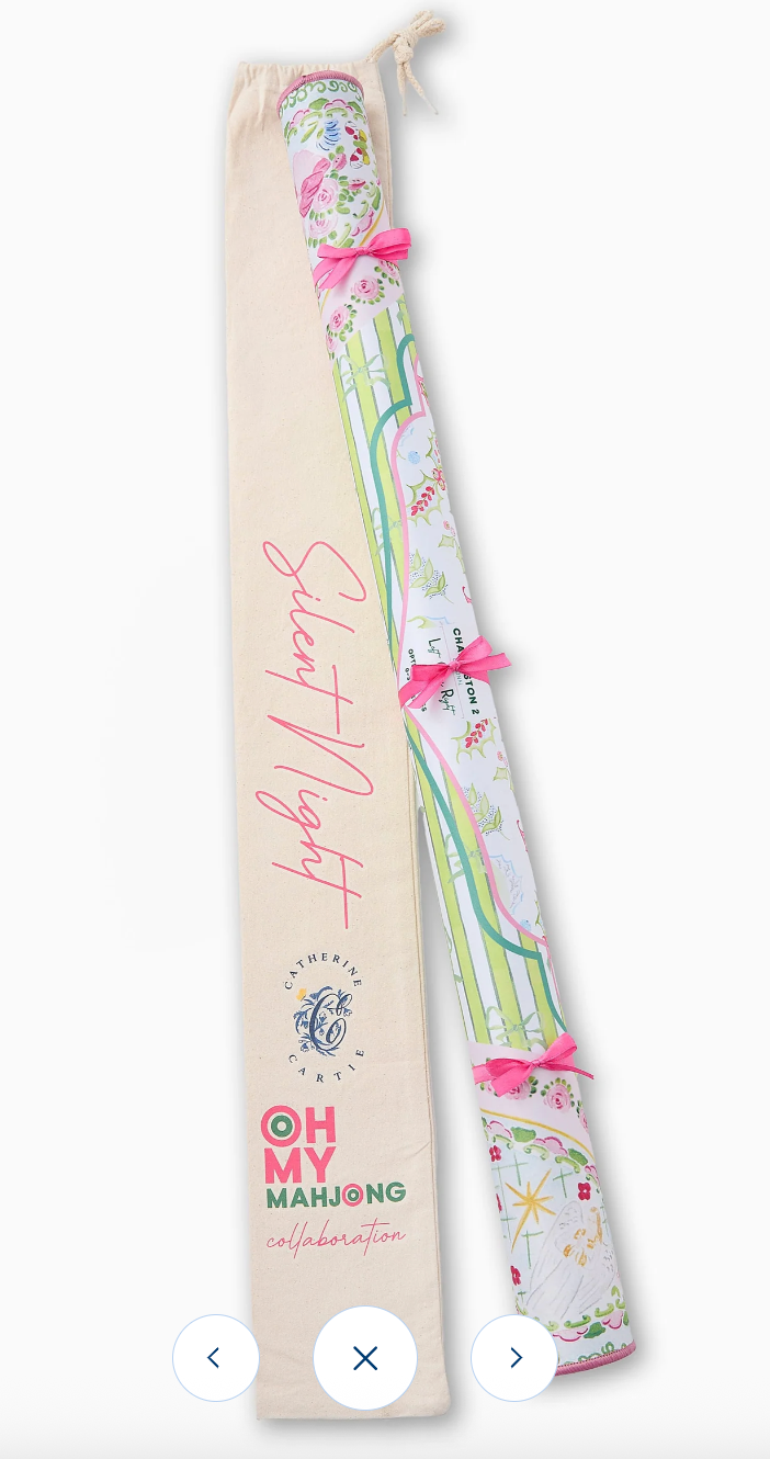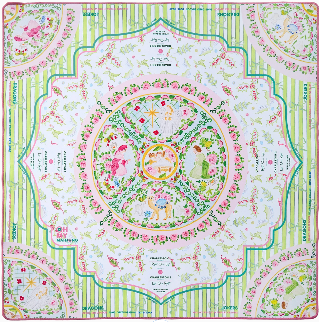 Bring a touch of serenity and sweetness to your holiday season with the Silent Night Mat, a graceful collaboration with Fort Worth-based watercolor artist Catherine Cartie. This mat is a feminine dream, featuring delicate depictions of the Nativity, the guiding North Star, and perfectly placed rosettes that tie the story together. Soft shades of airy pinks and greens create a peaceful, light-filled backdrop, making this mat a timeless piece to add to your tablescape year after year.