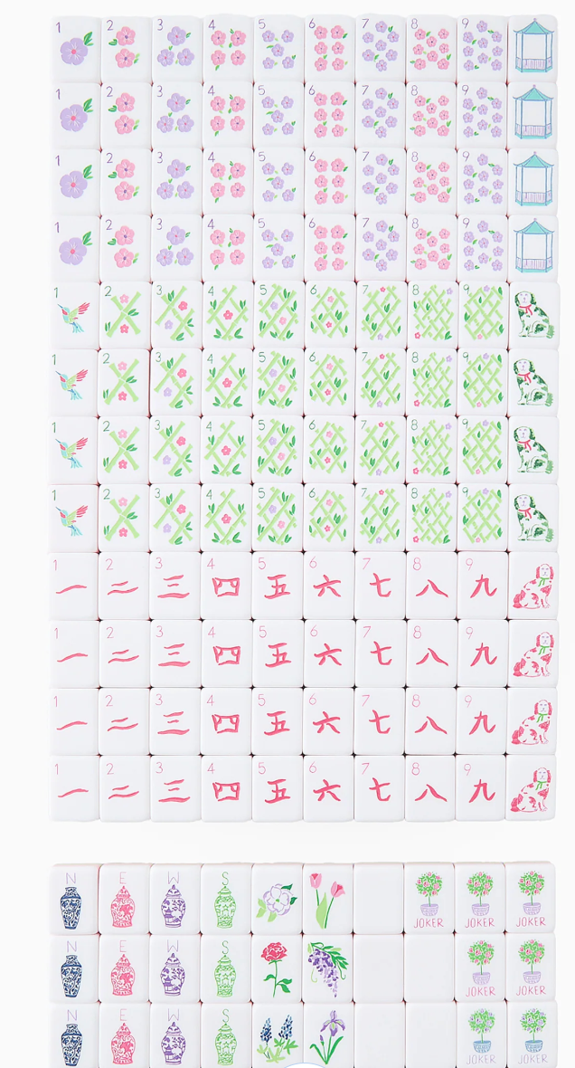 The Taylor Tiles are where punchy pastel hues meet country club sophistication and charm. This captivating collection incorporates a pastel palette appealing to the girly girls and the chic shoppers alike to elevate your Mahjong experience to new heights. Each tile in the Taylor line is meticulously crafted from premium materials, ensuring exceptional quality and countless evenings of elegant and delightful play.