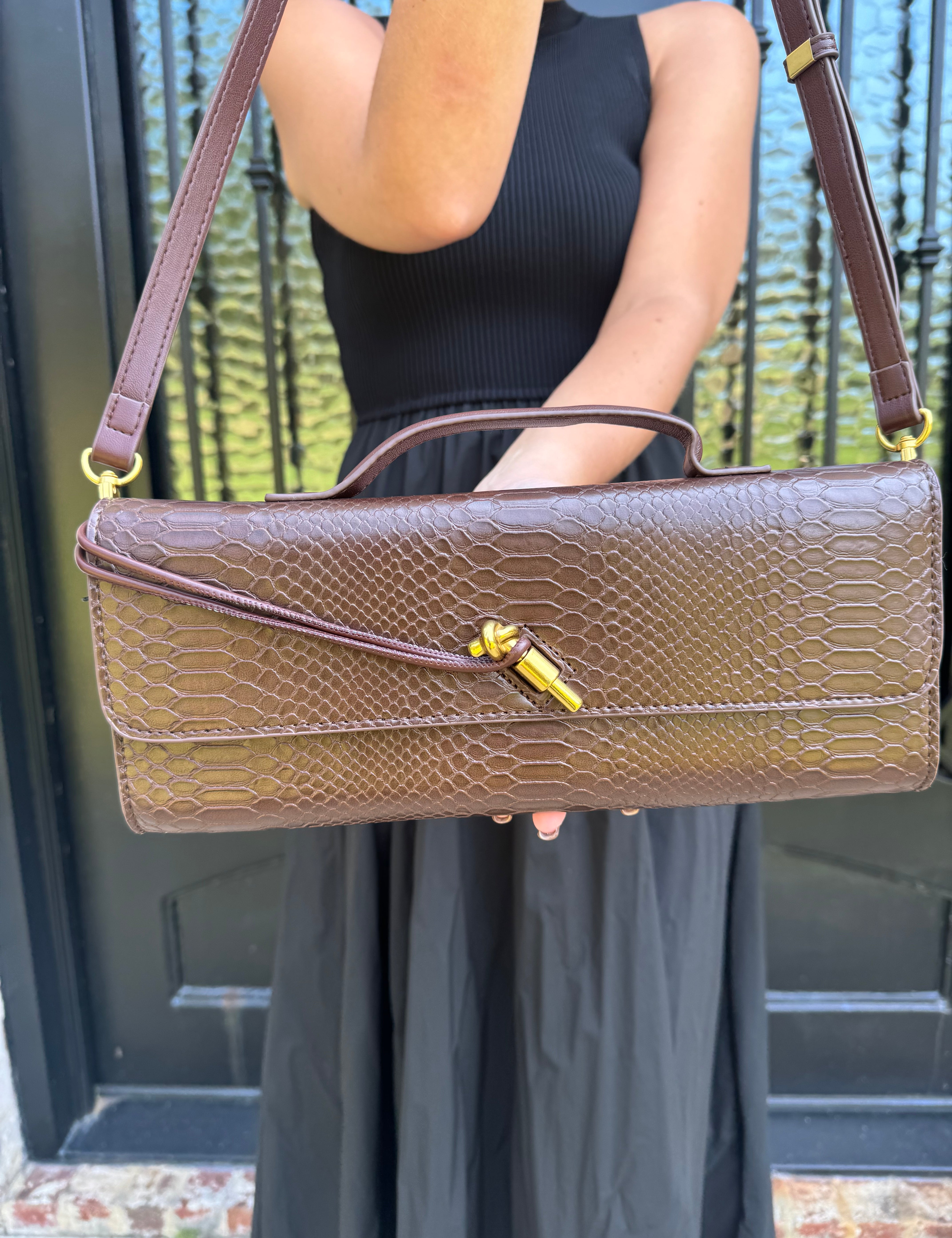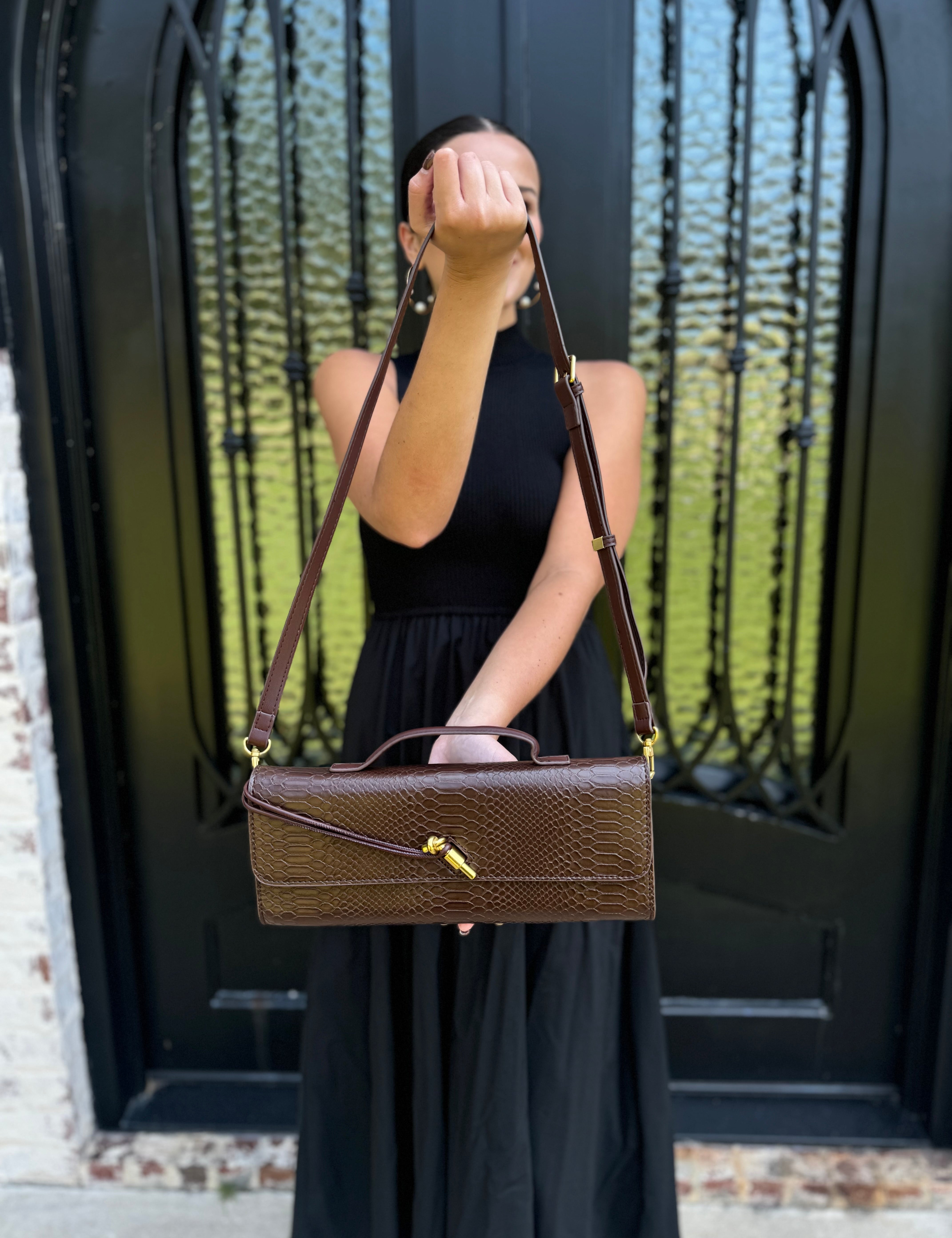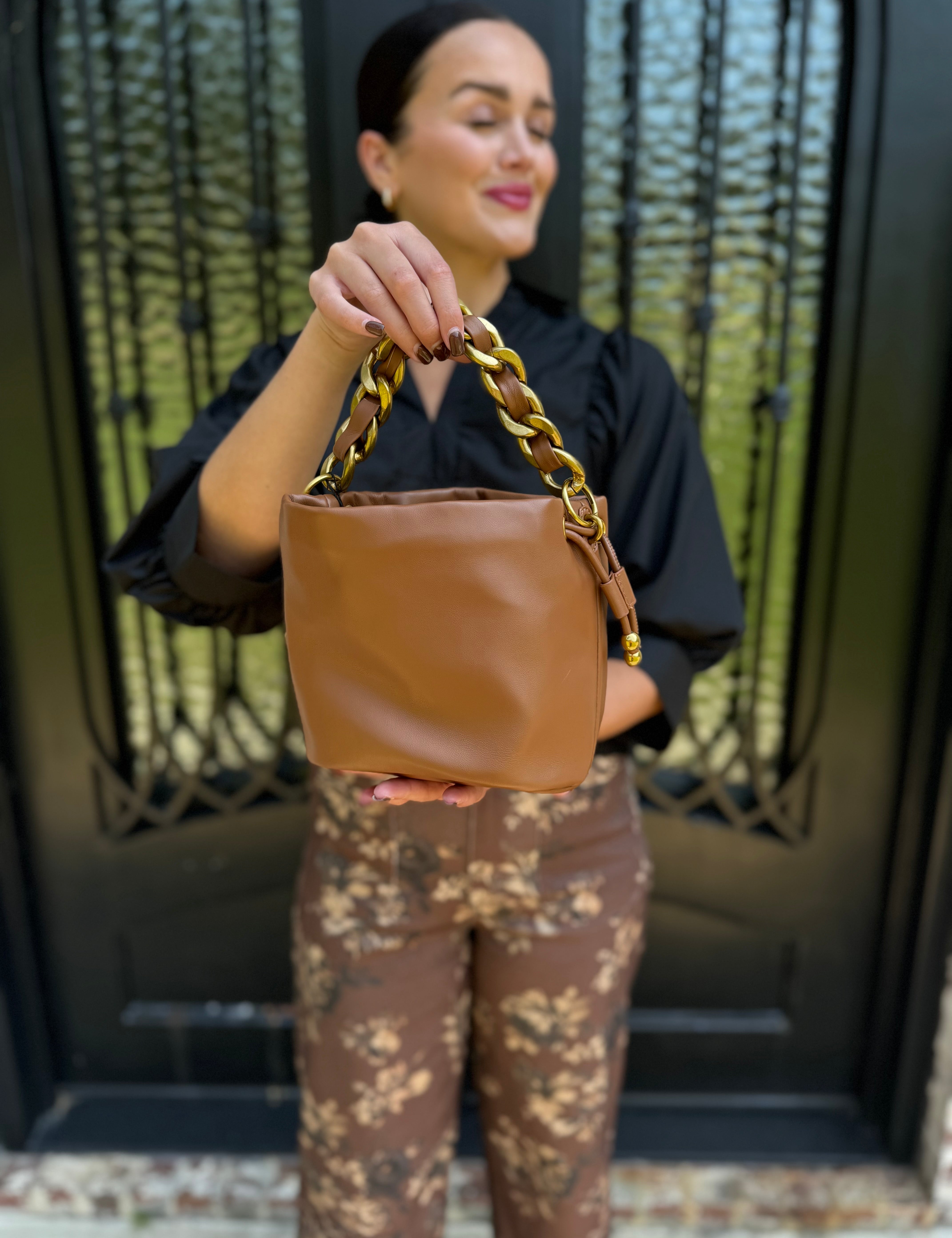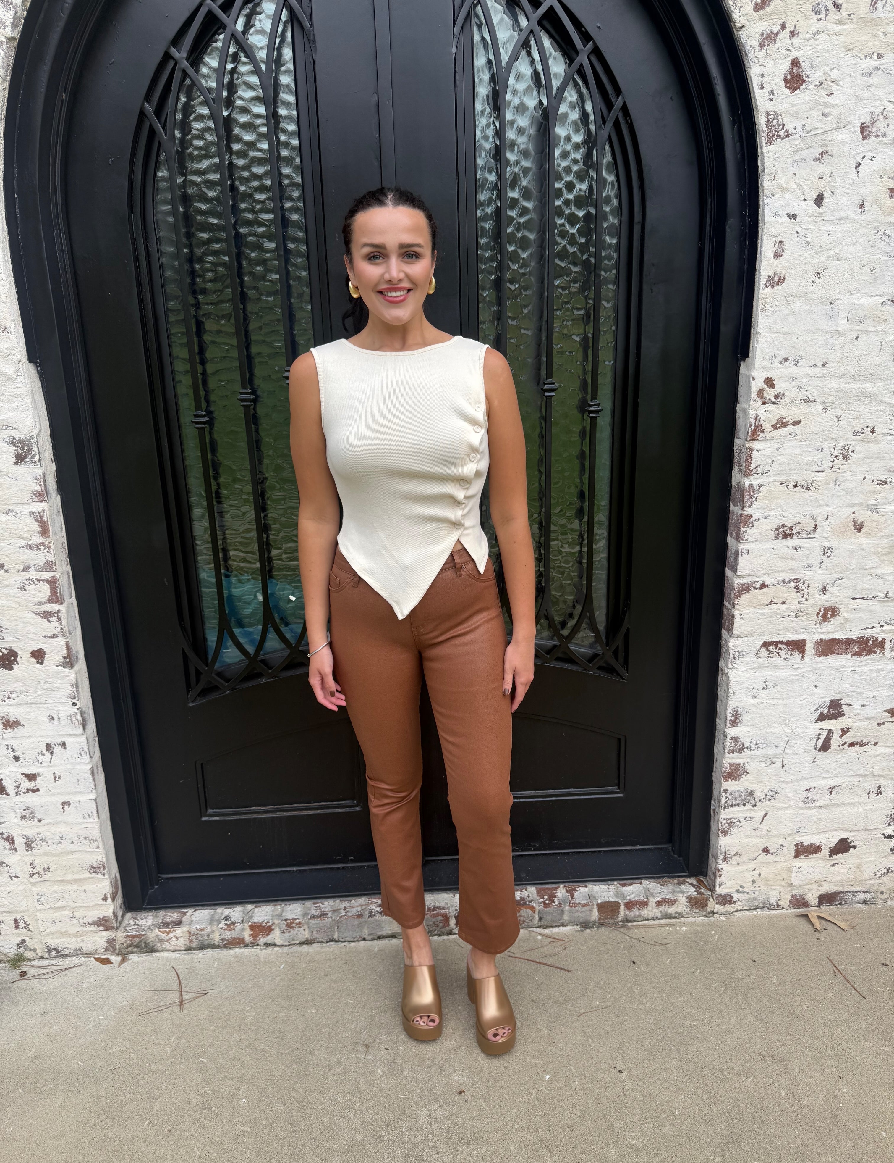 Tractr High Rise Coated Ankle Crop Flare in Cognac