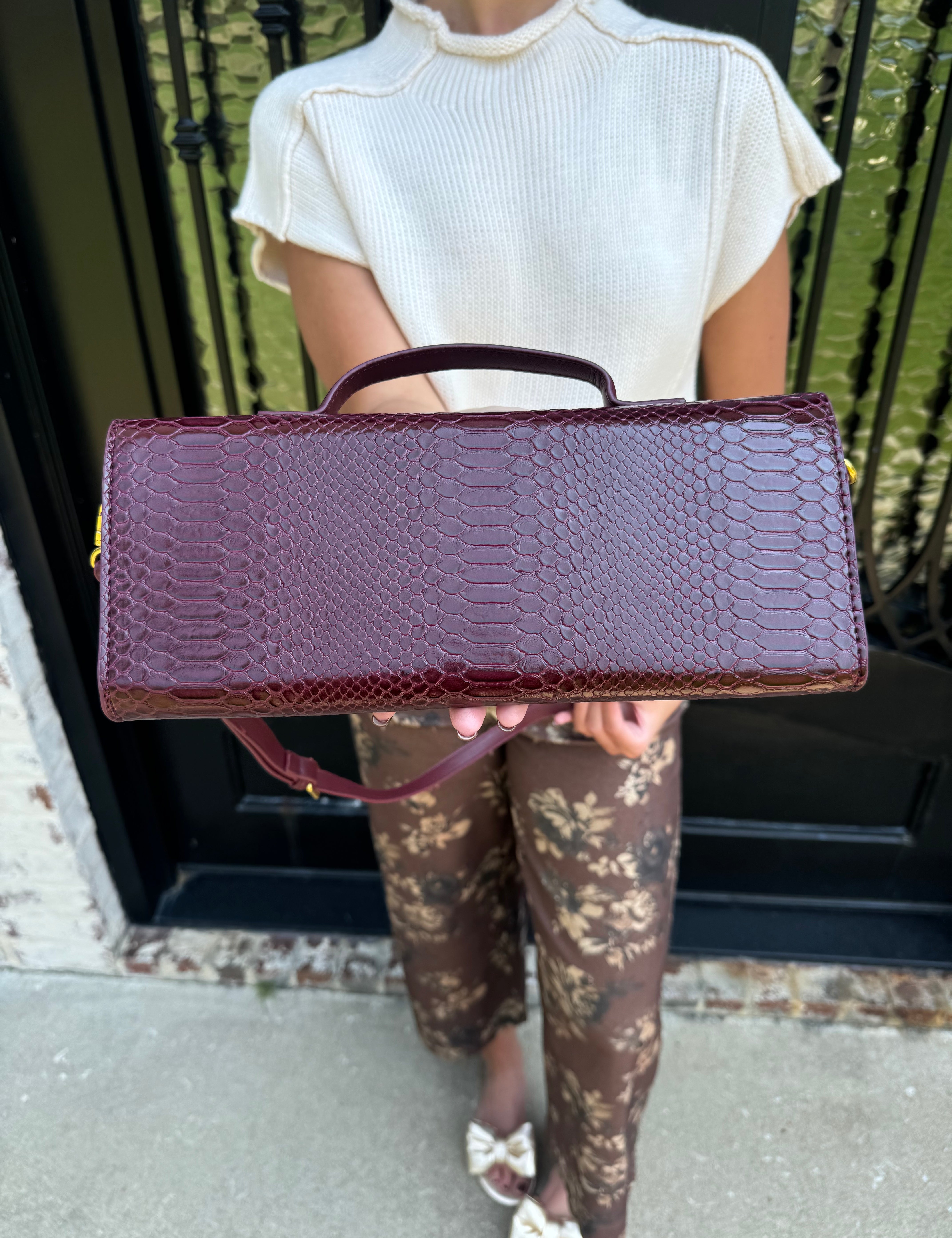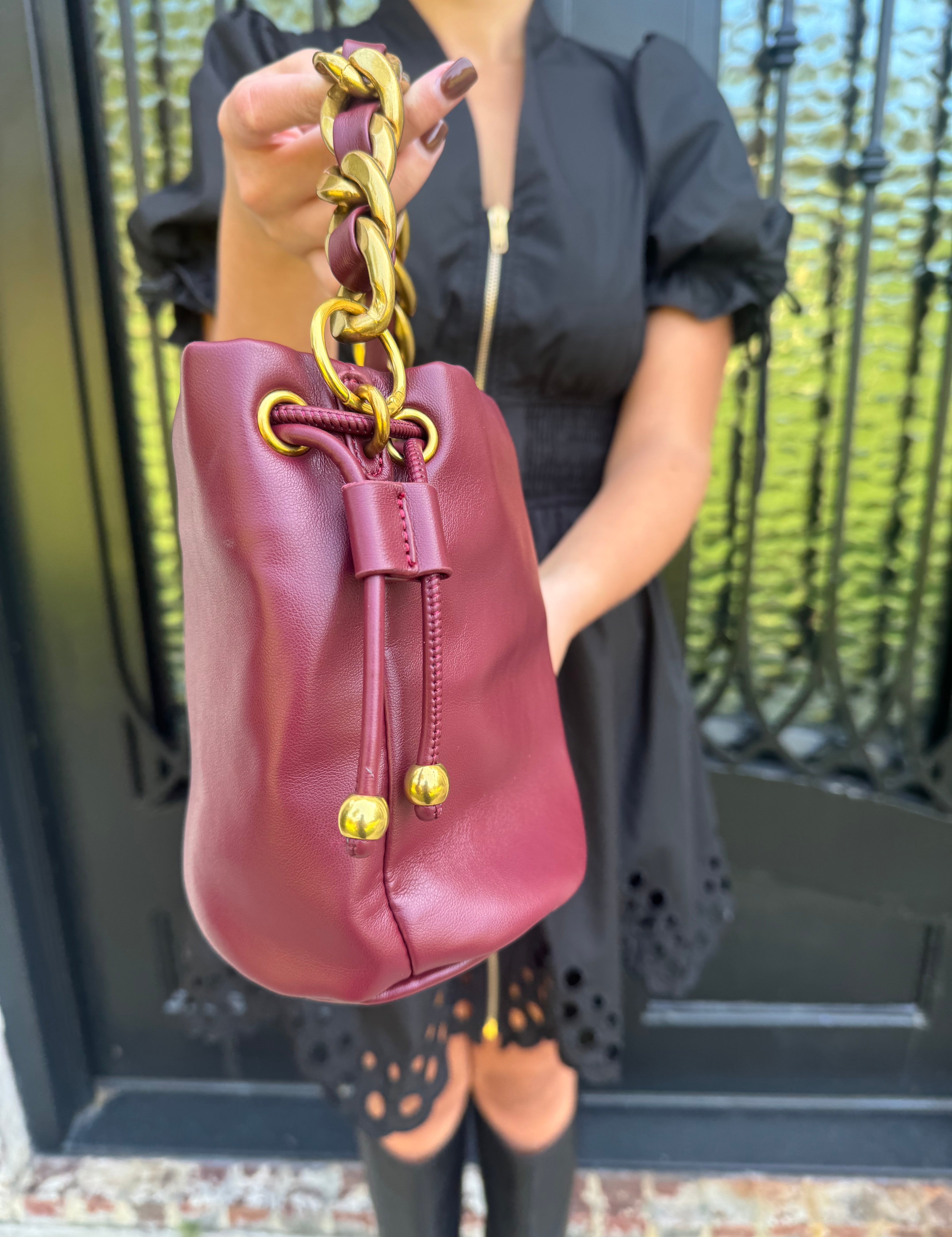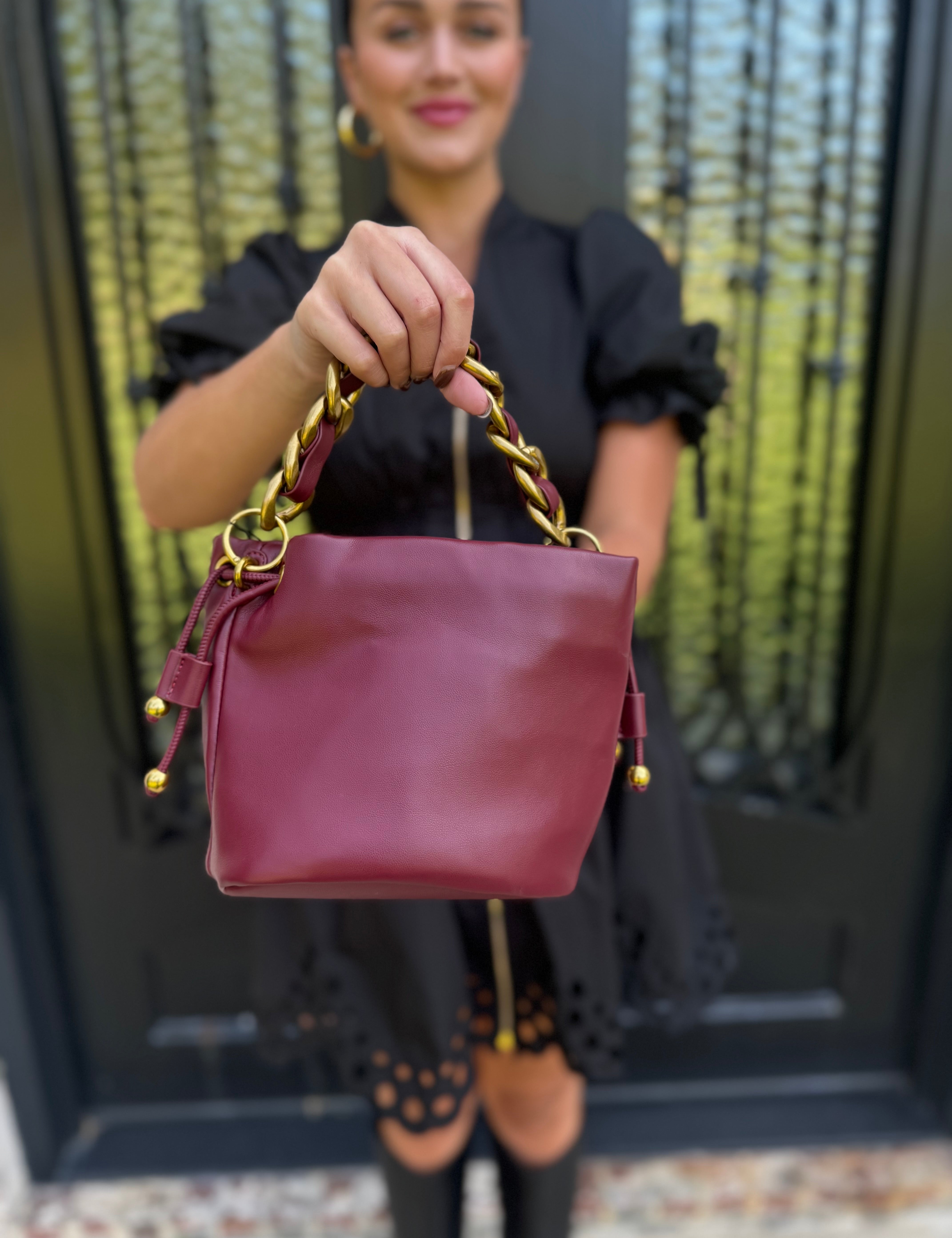 Scarf Necklace with Intertwined Paperclip Chain in Maroon