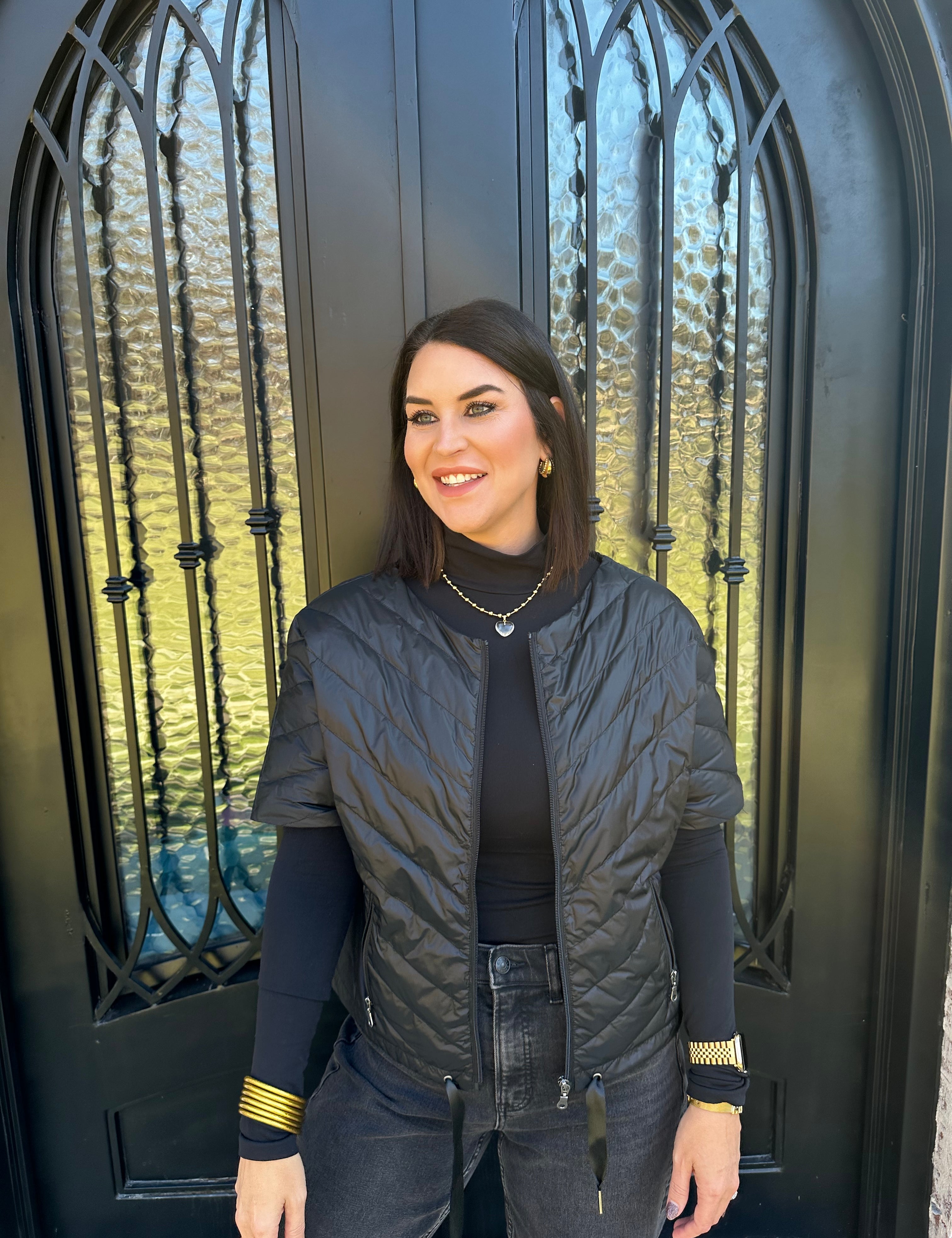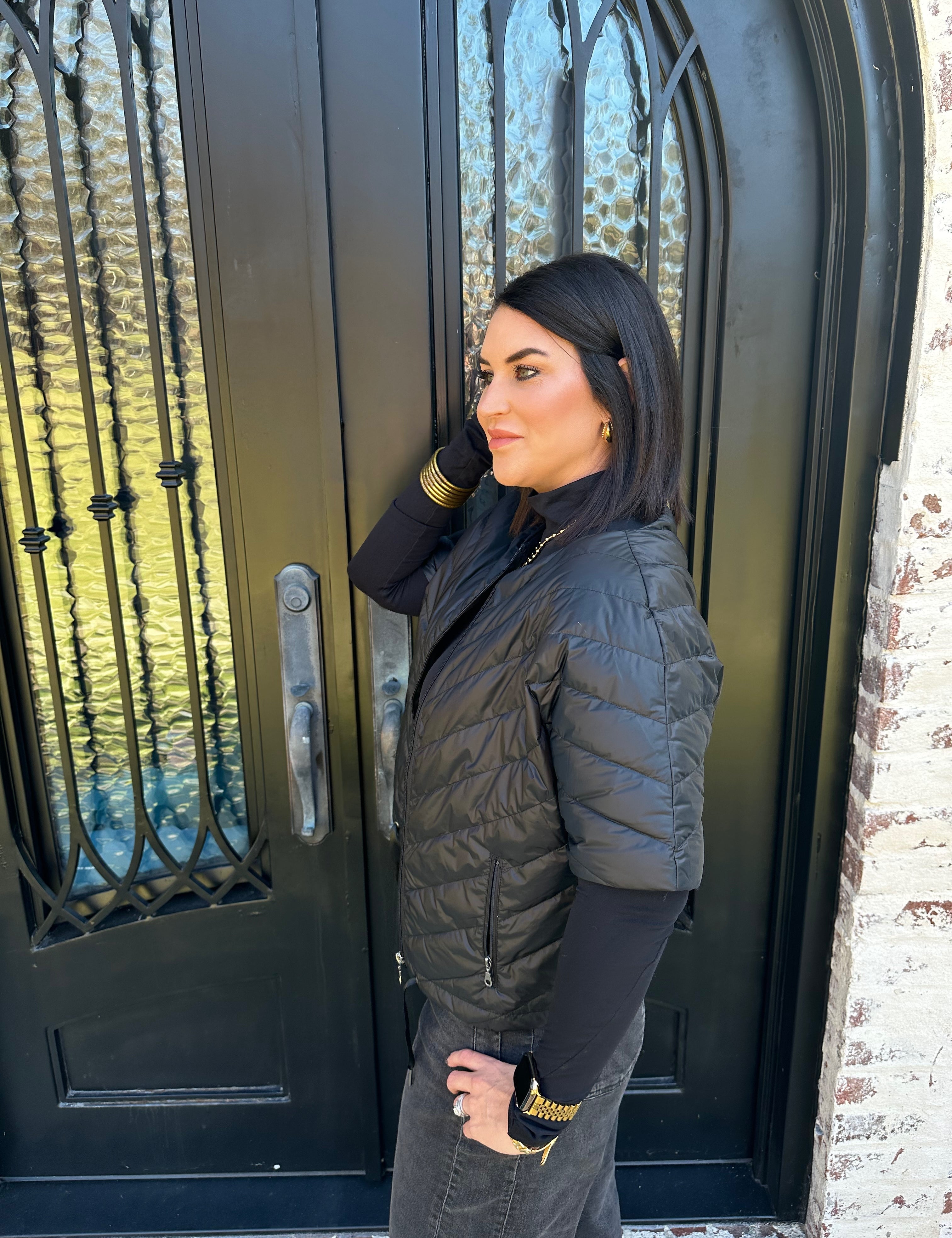 Anorak Quilted Chevron Short Sleeve Jacket in Black