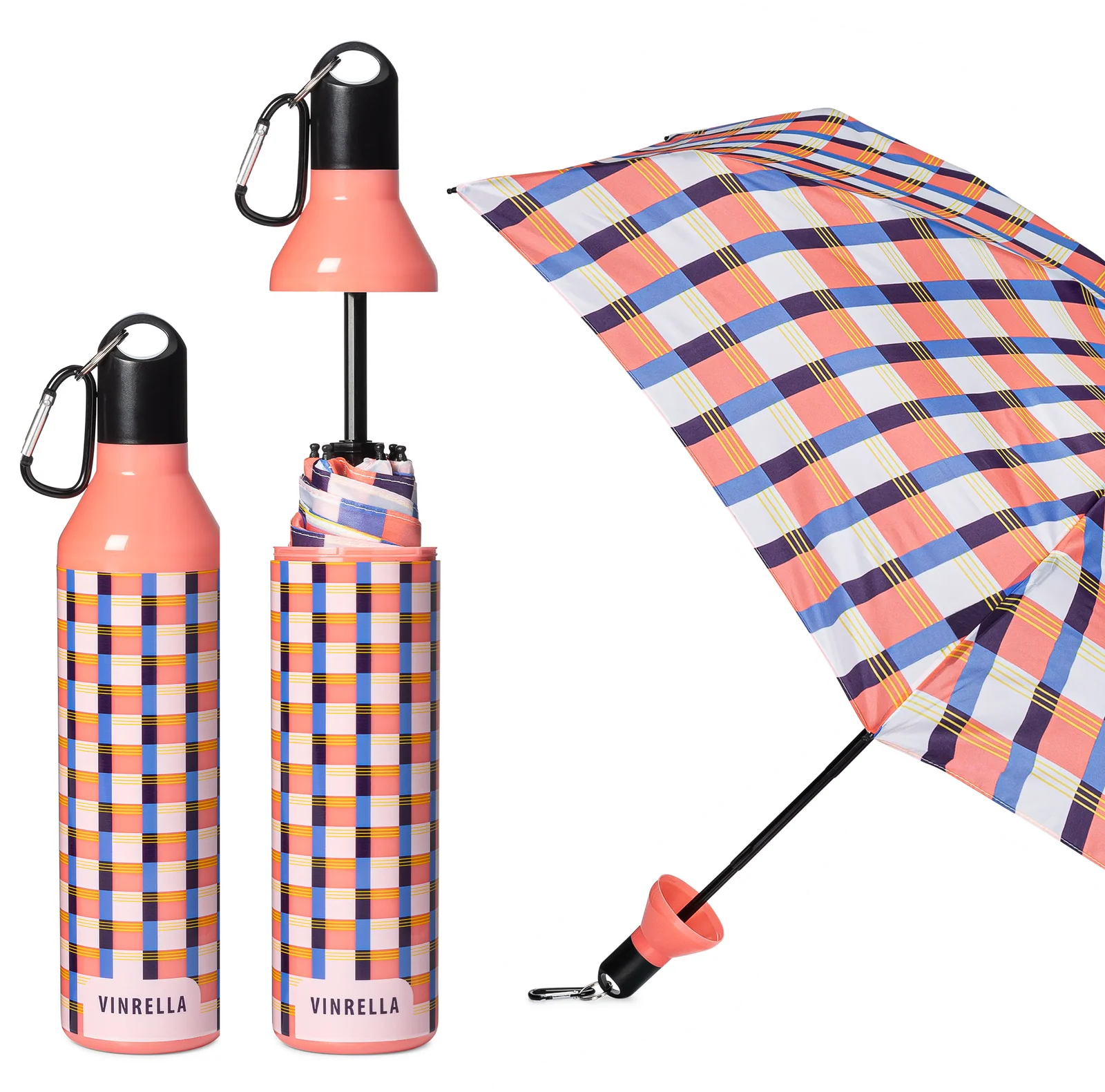 Bottle Umbrella in Gingham Pink