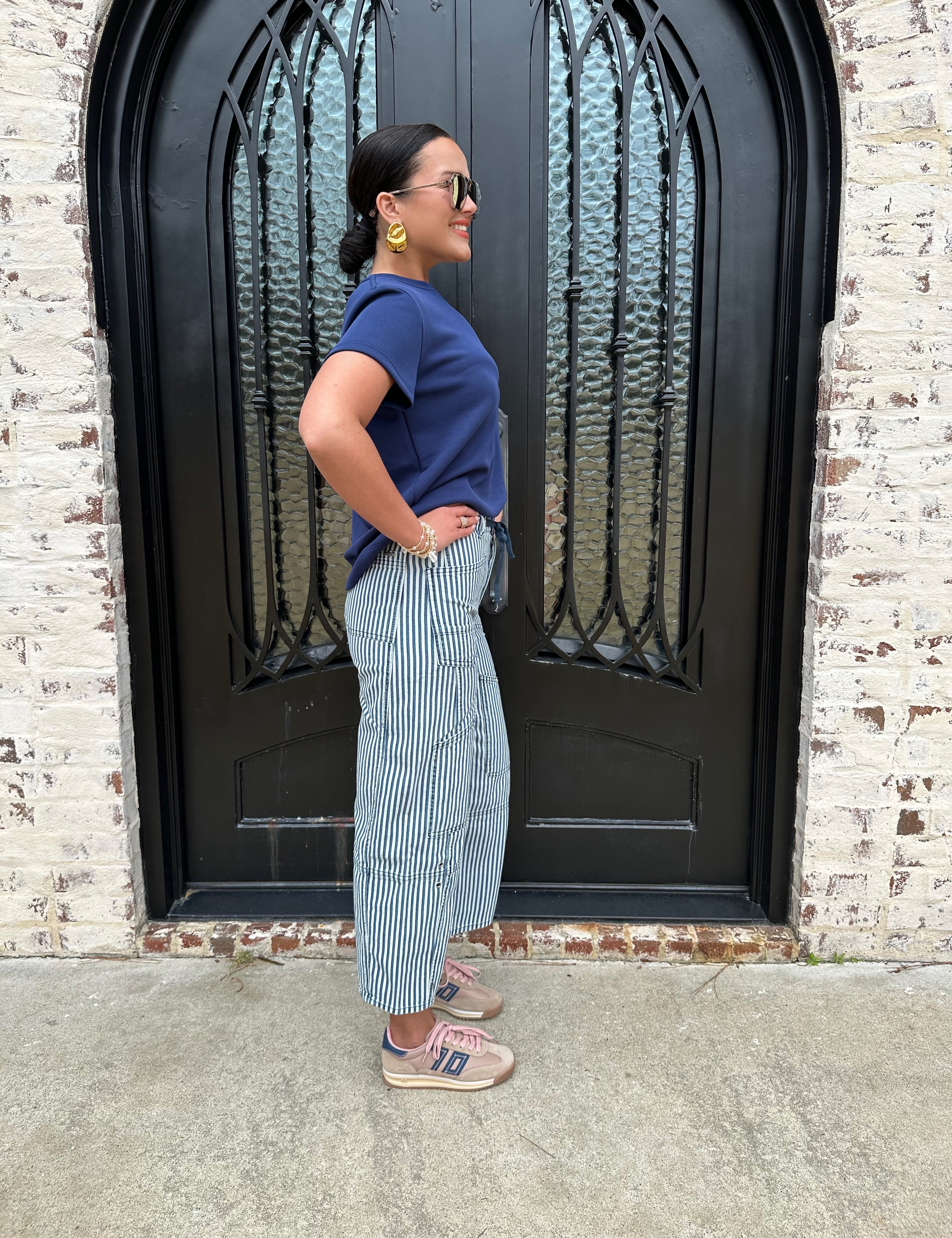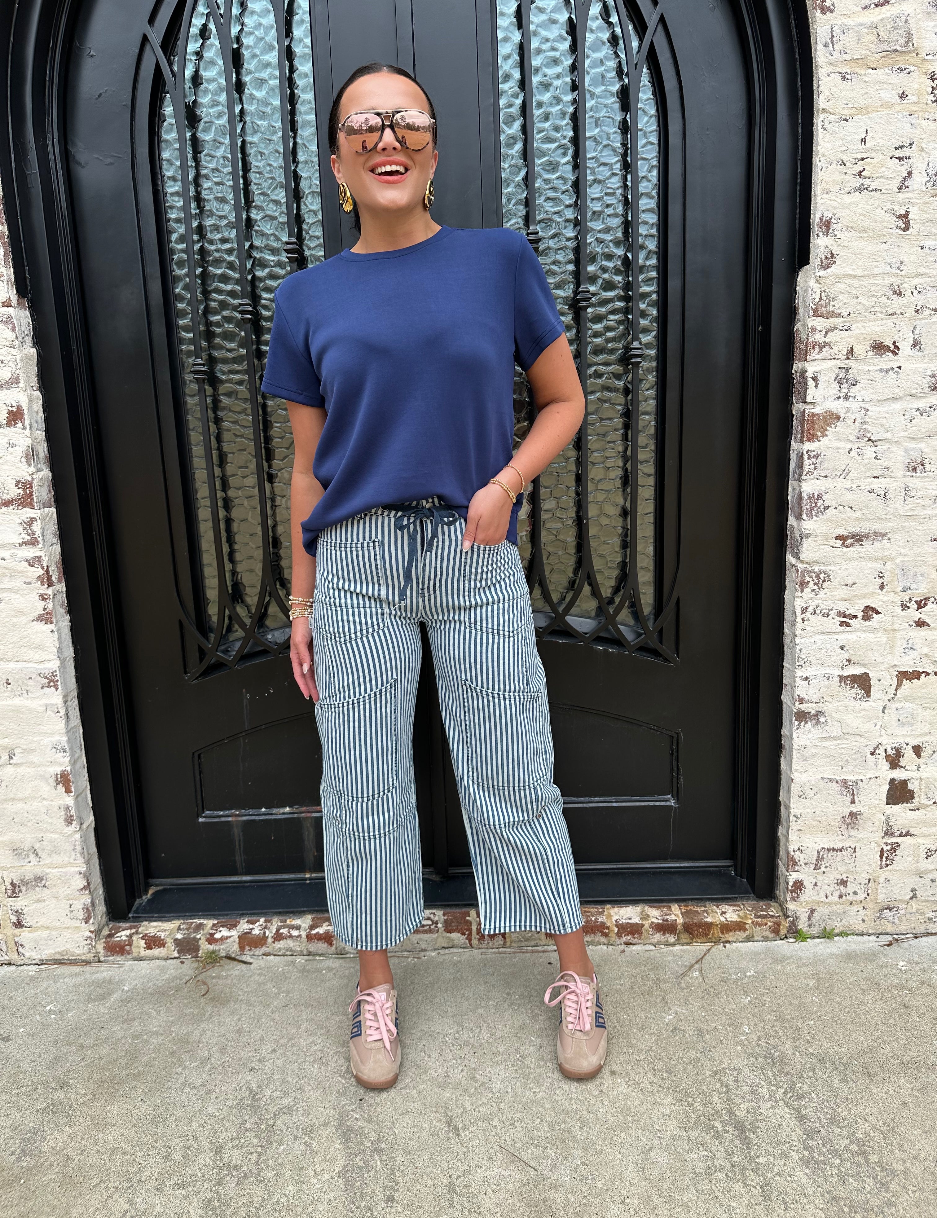 Grommet Waist Striped Wide Leg Jeans