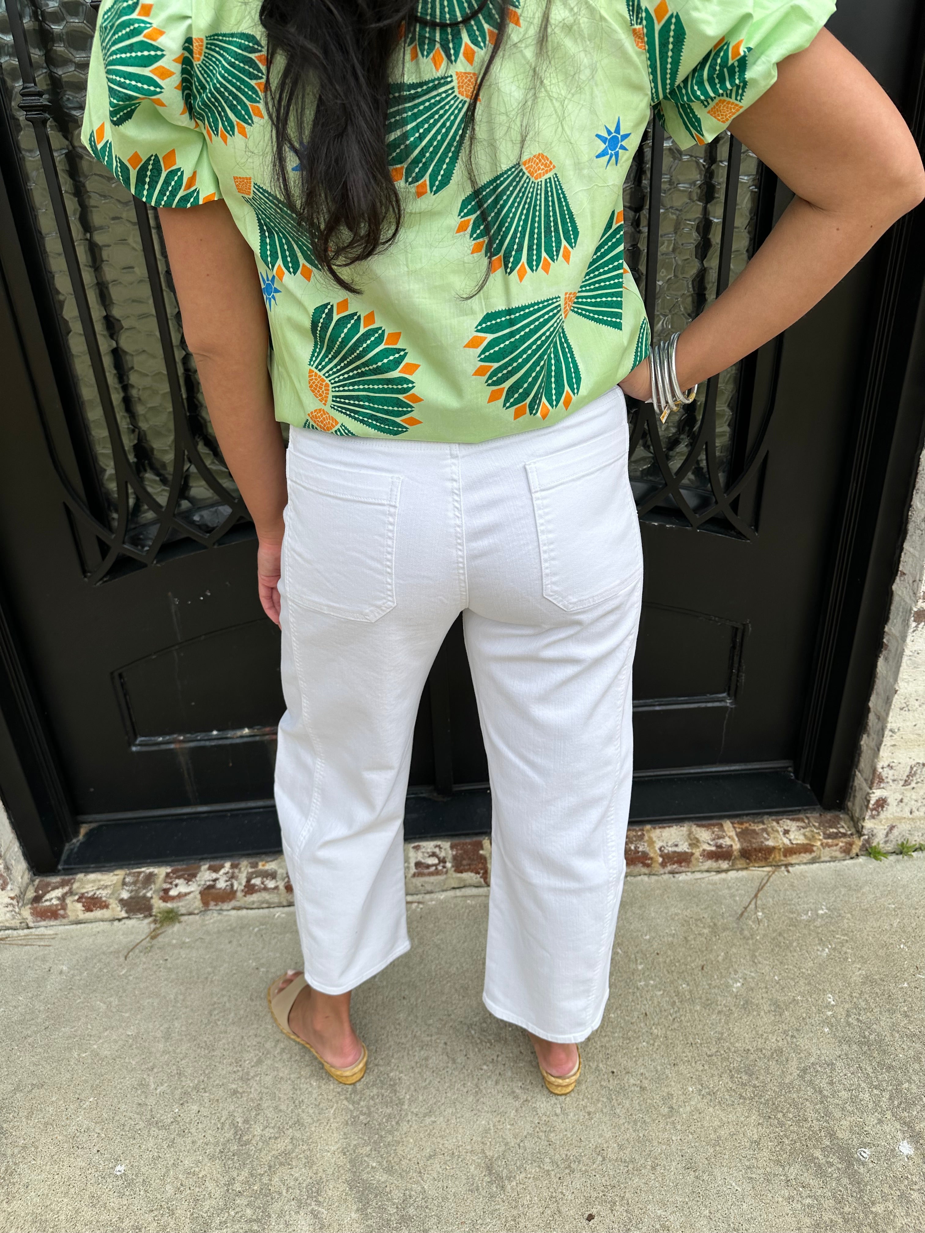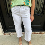 Our best selling barrel jeans are back in white!! Step into effortless style with our High Rise Barrel Crop jeans. Featuring a flattering high-rise fit and a relaxed barrel-leg silhouette, these cropped jeans offer a contemporary, laid-back look perfect for any occasion.