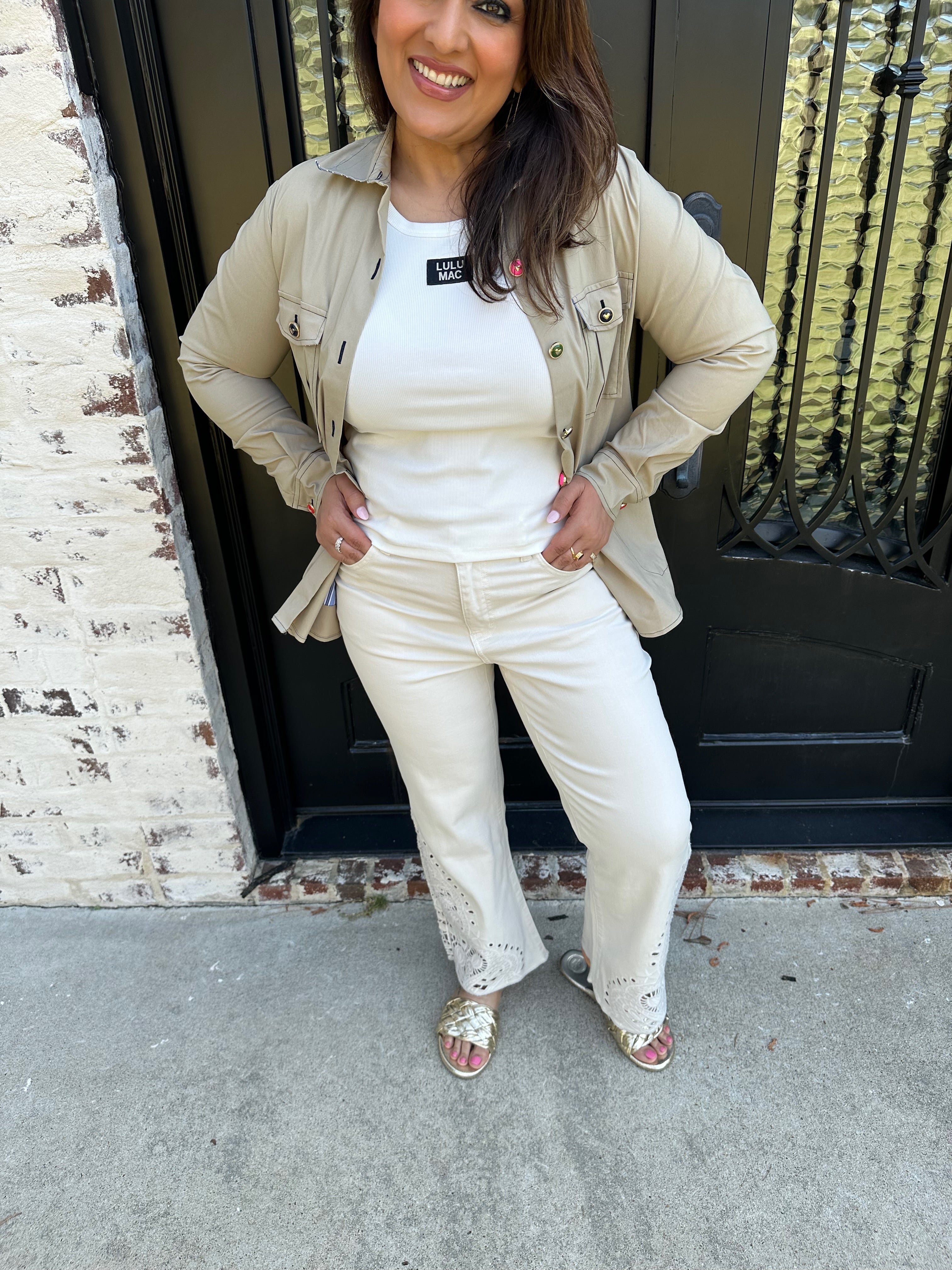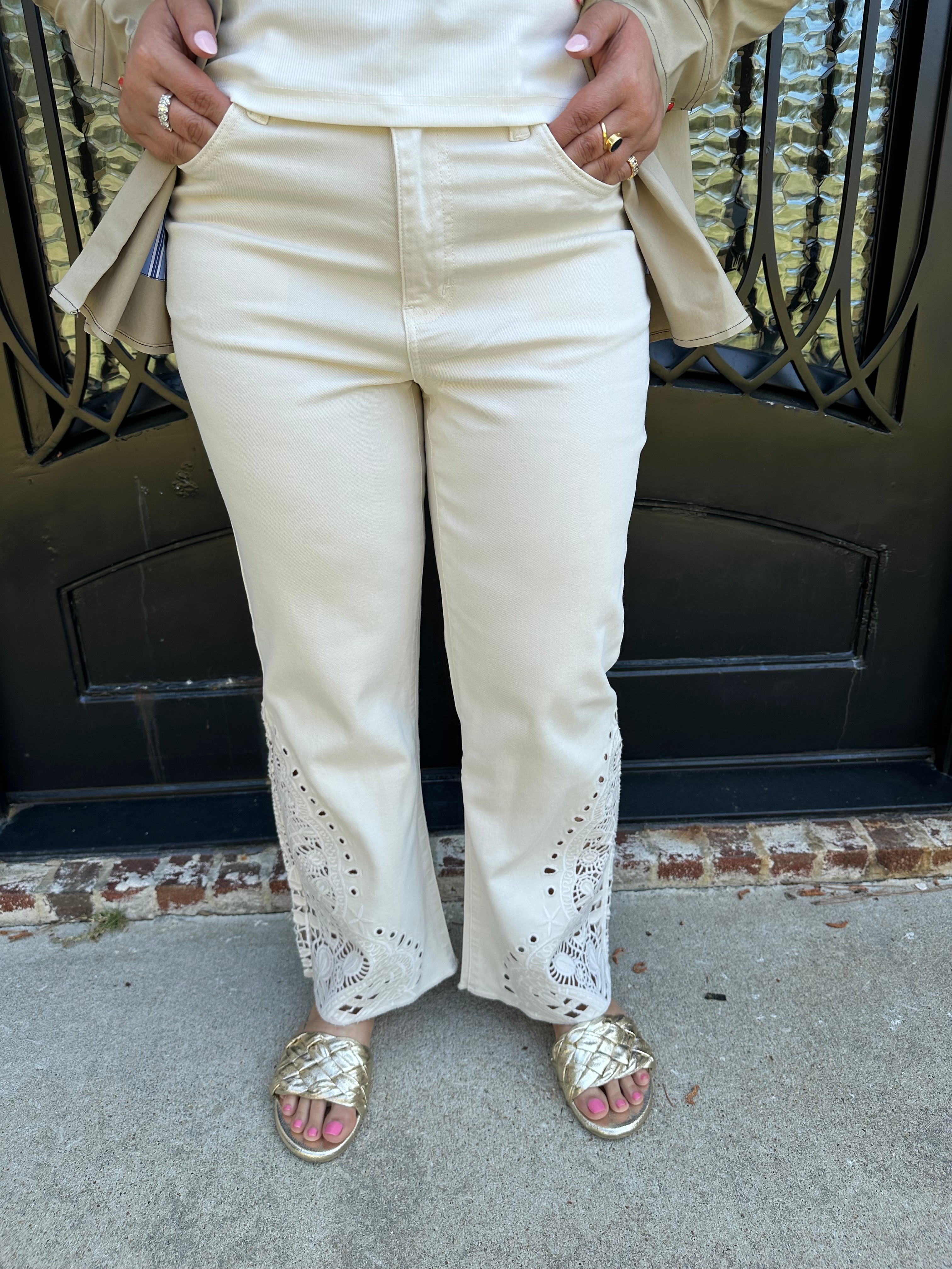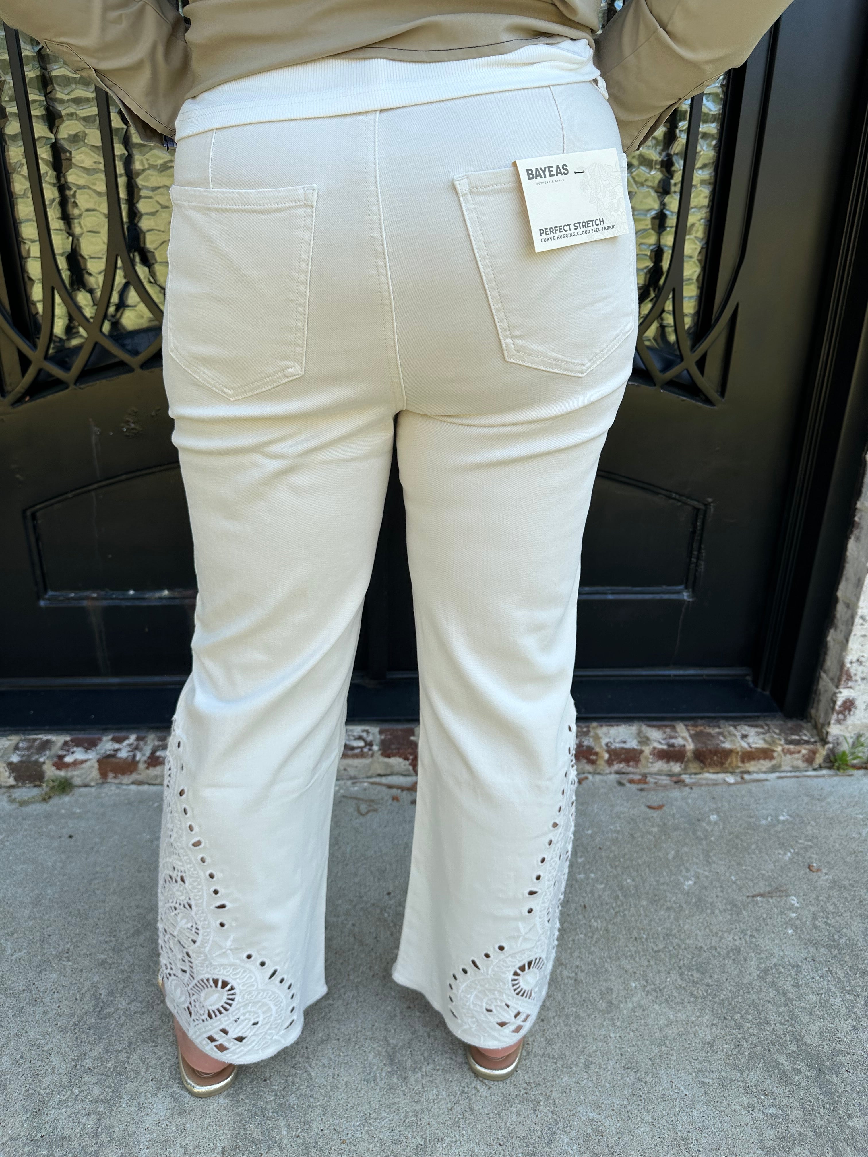 The Bayeas Paris High Rise Stretch Straight Leg Jeans are the kind of piece that instantly elevates everything in your closet. Designed with a flattering high-rise fit and just the right amount of stretch, they hug in all the right places while keeping you comfortable all day long. The standout detail? Delicate white embroidered eyelet at the hem that adds a feminine, fashion-forward twist to a classic straight leg silhouette. Brunch with the girls, weekend shopping trips, beach dinners, casual date nights, or even a dressed-up day at the office. They transition seamlessly from day to night—just swap your shoes and accessories.