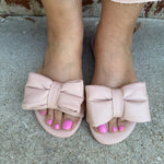 Playful but casual and comfortable, our Rafie sandal sports an oversized bow adorned on our covetable leisure-loving sole.The cushioned footbed, padded arch support, non-slip rubber bottoms (complete with our signature Soléi embossed waves) and water-resistant vegan leather pack these sandals with the versatility to seamlessly wear to the beach, brunch or anywhere in between.