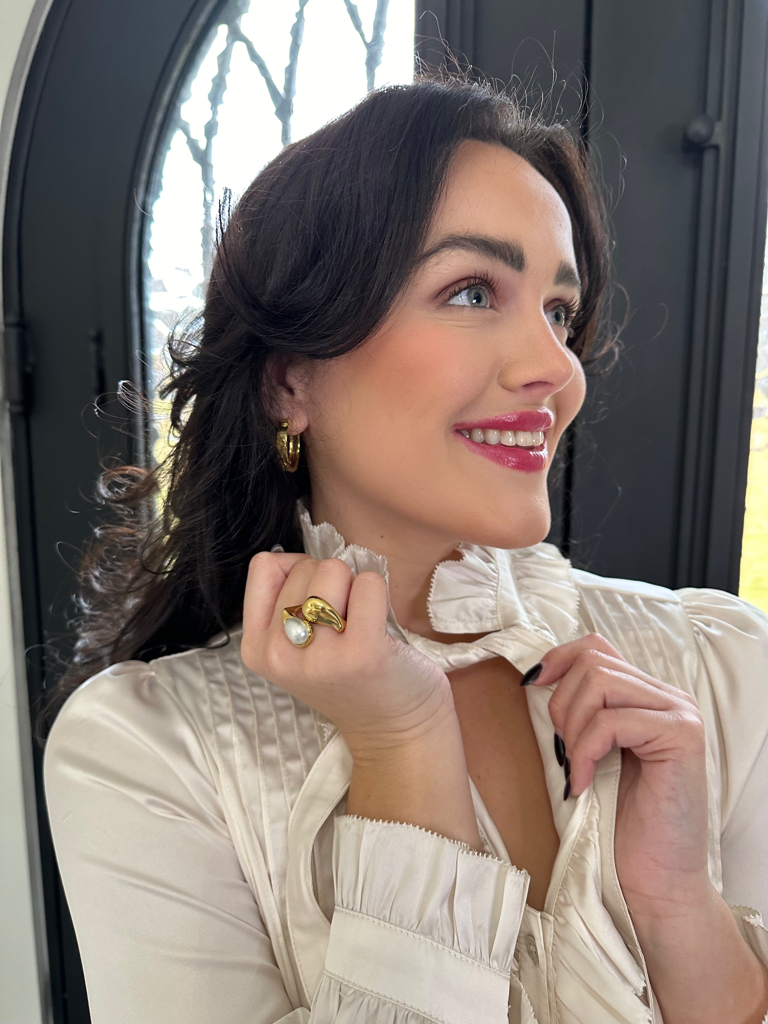 Introduce timeless sophistication to your collection with the Chansutt Ava Ring. This exquisite gold ring showcases a striking oversized pearl that radiates natural beauty and grace. The adjustable band adapts to your finger for ultimate comfort, while water-resistant technology safeguards against daily moisture and wear. With our comprehensive lifetime warranty, you're investing in a piece designed to transcend trends and last generations. Make a statement that endures.